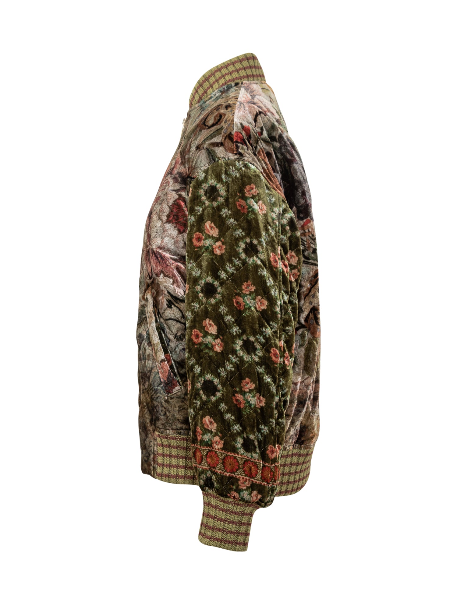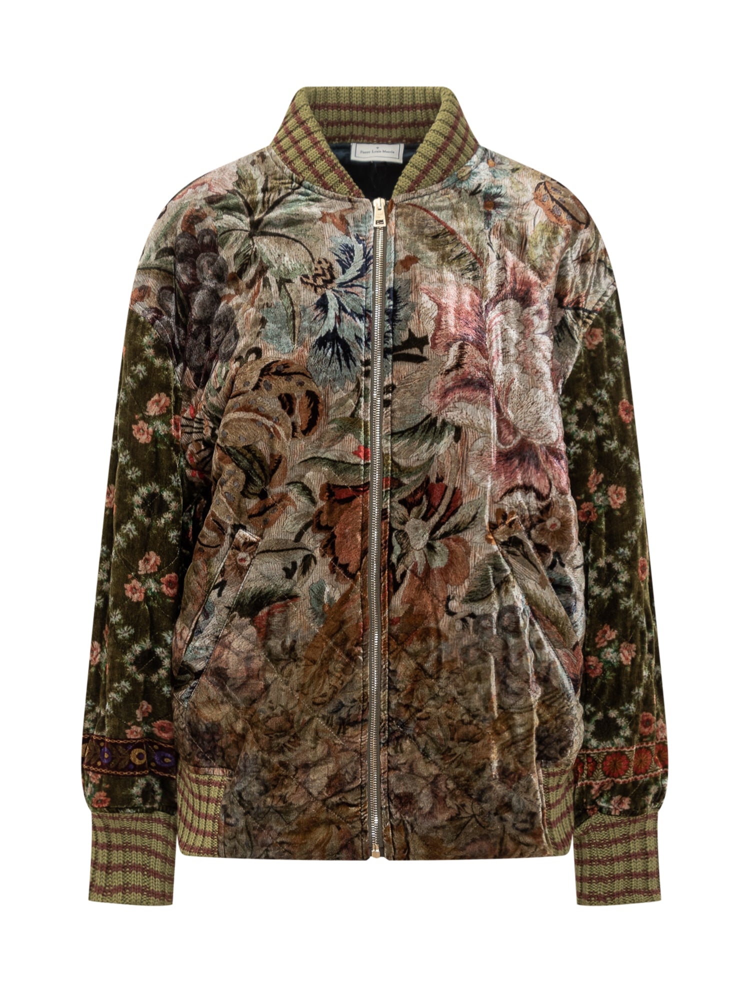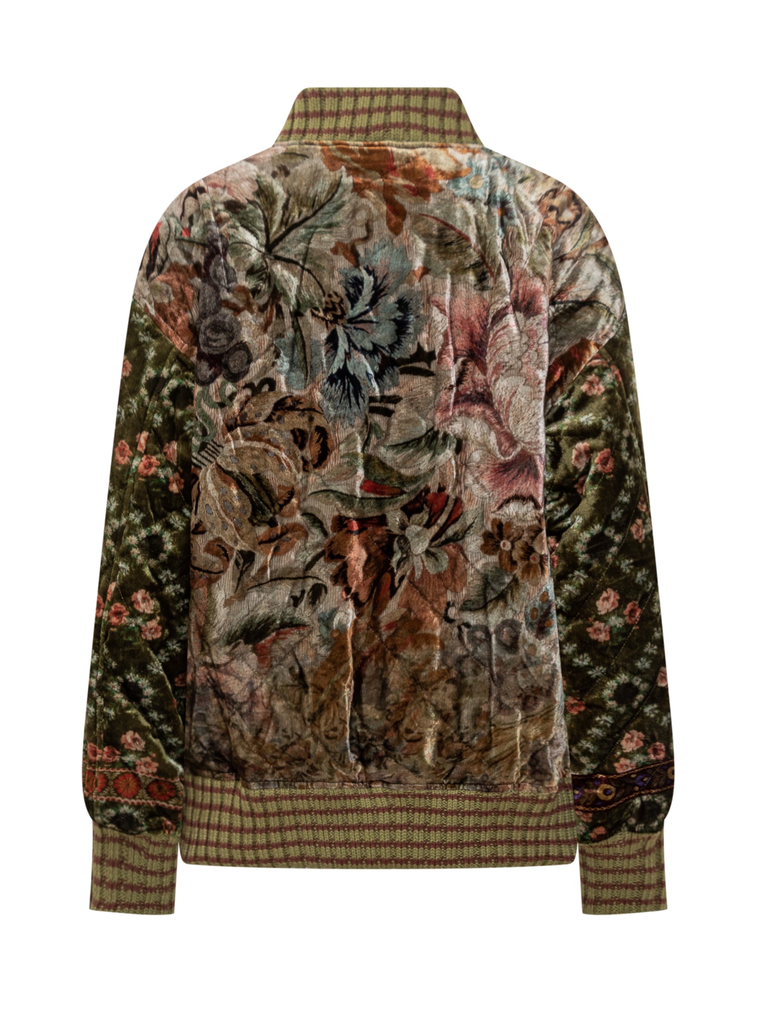 Velvet jacket with floral pattern and crafted details. The bomber cut and contrasting trims create a refined style.