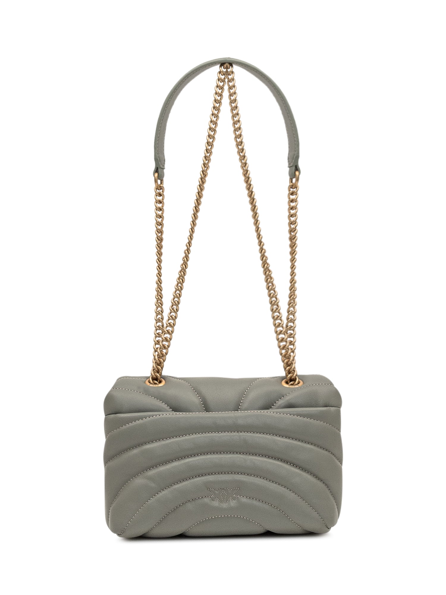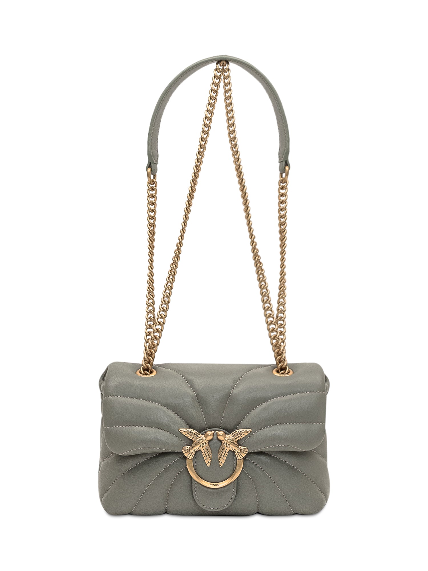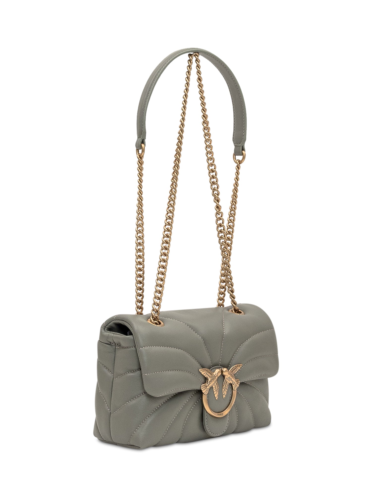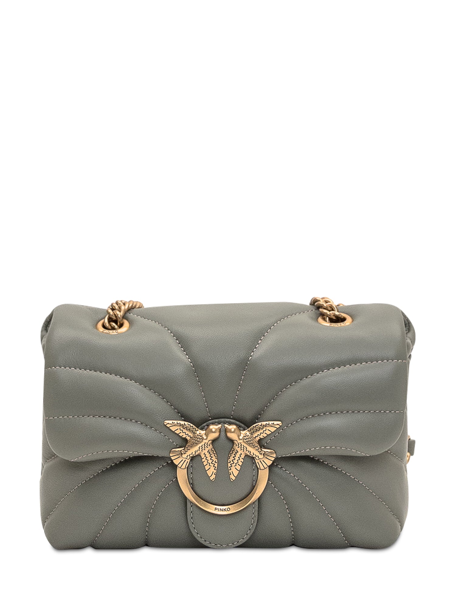 Green leather bag. Metal buckle closure Love Birds Diamond Cut. Partition closed with zip and wall pocket. Shoulder strap with classic metal chain and nappa shoulder strap. Back pocket.