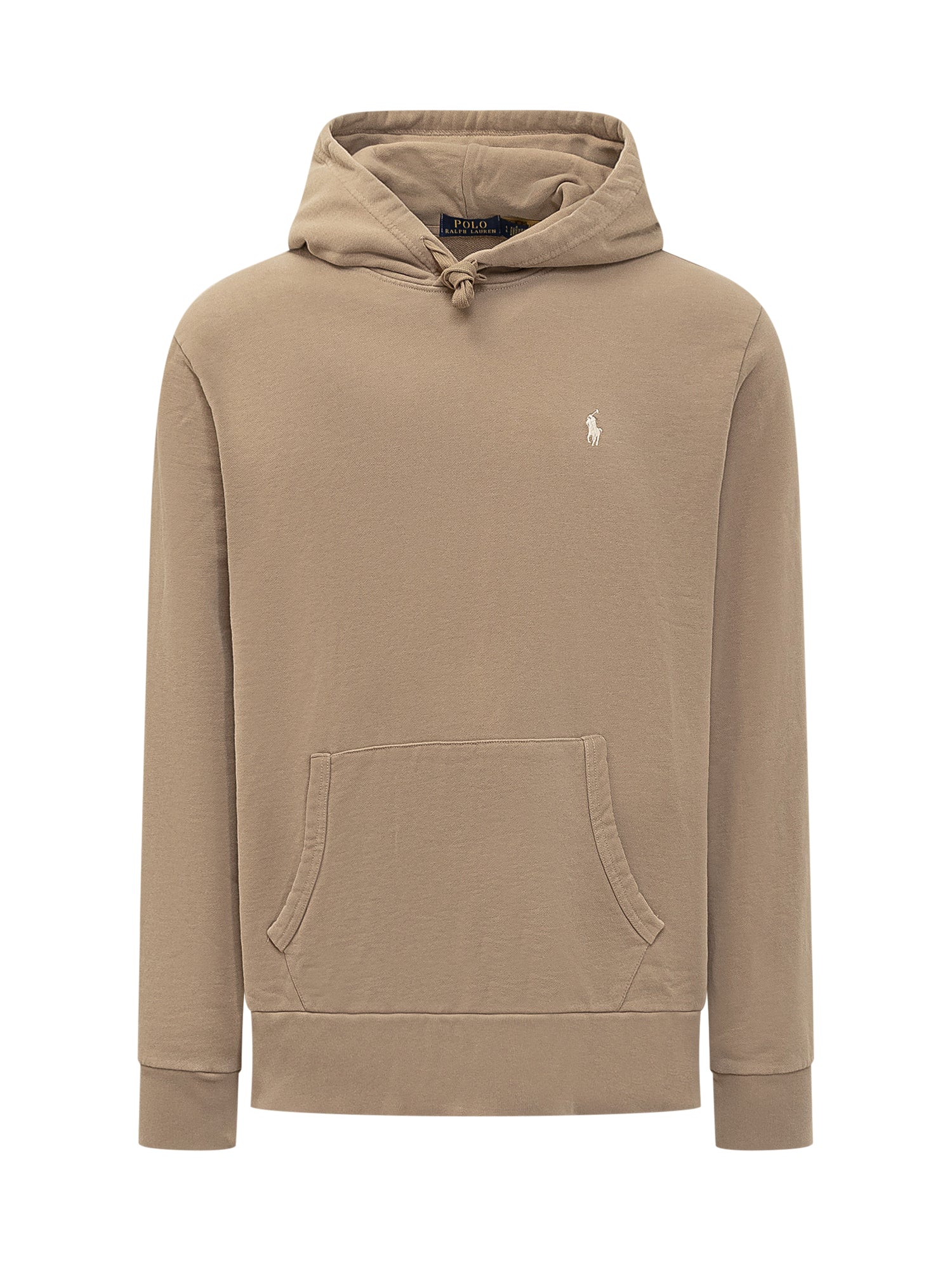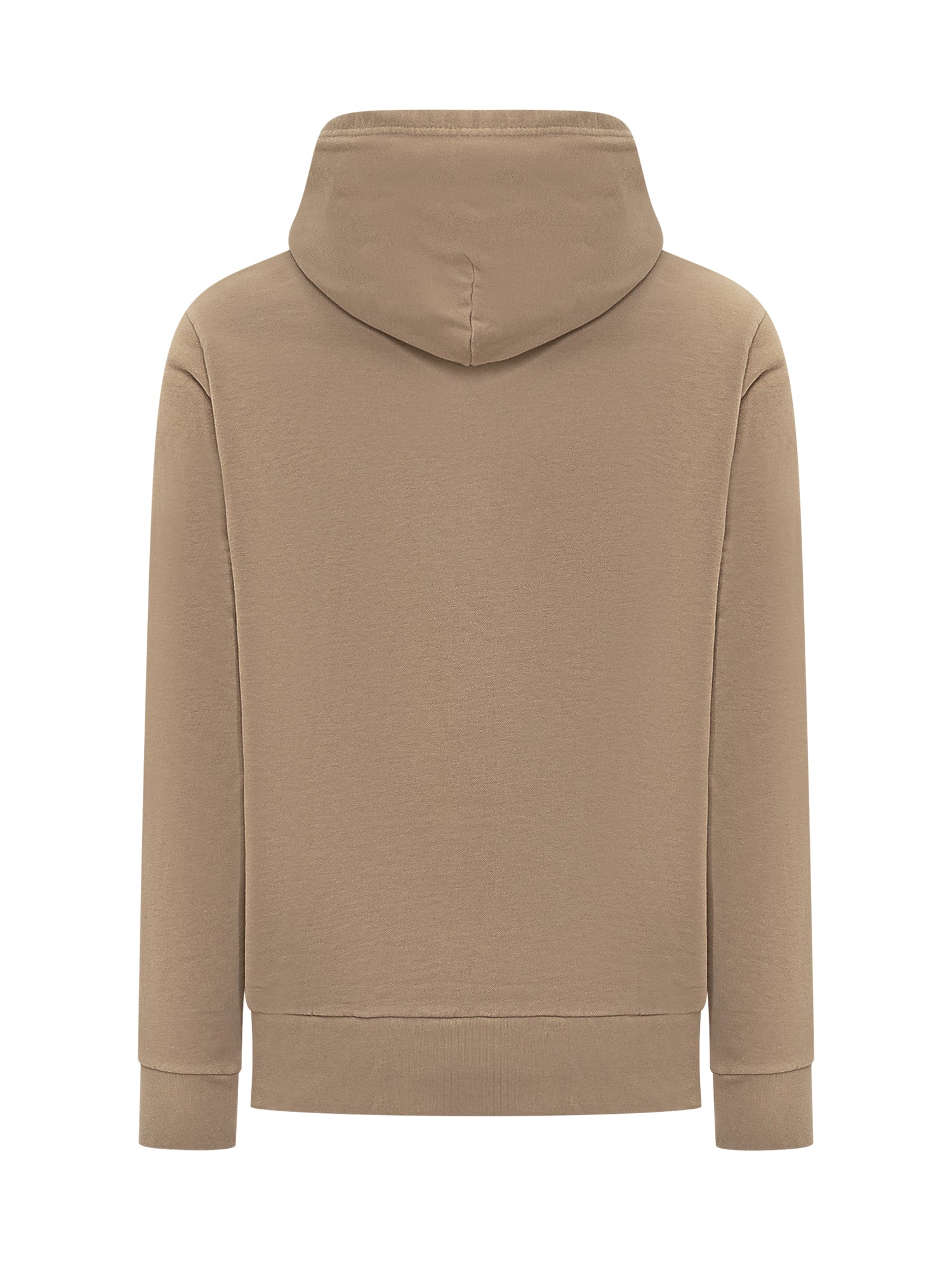Brown cotton sweatshirt. Drawstring hood. Maxi front pocket. Embroidered logo.