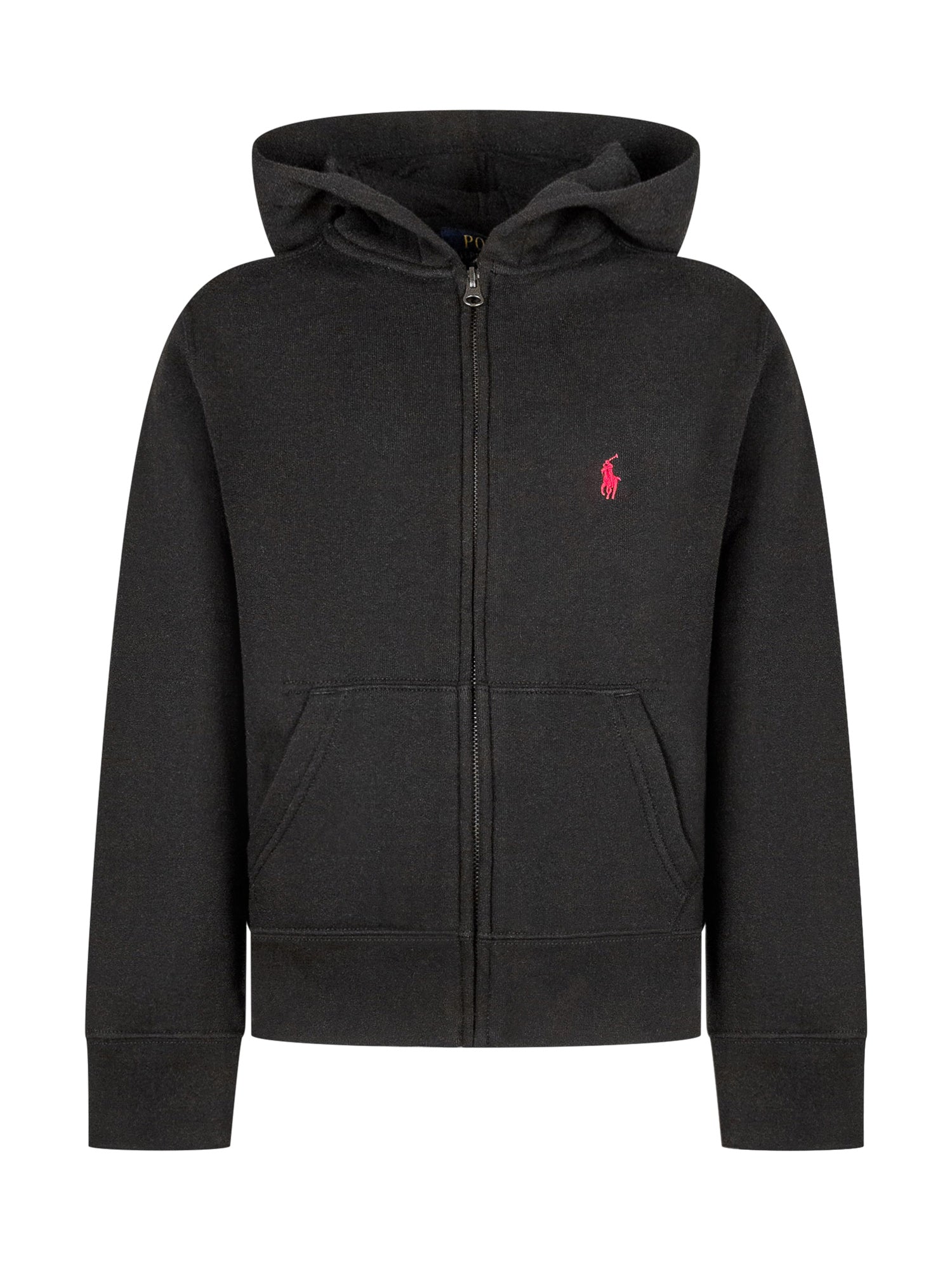 Black cotton hoodie with full zip, hood, and kangaroo pockets. Features the iconic pink Pony logo embroidered.