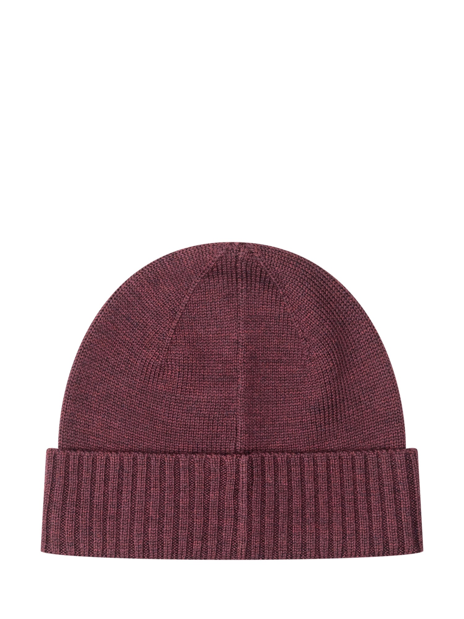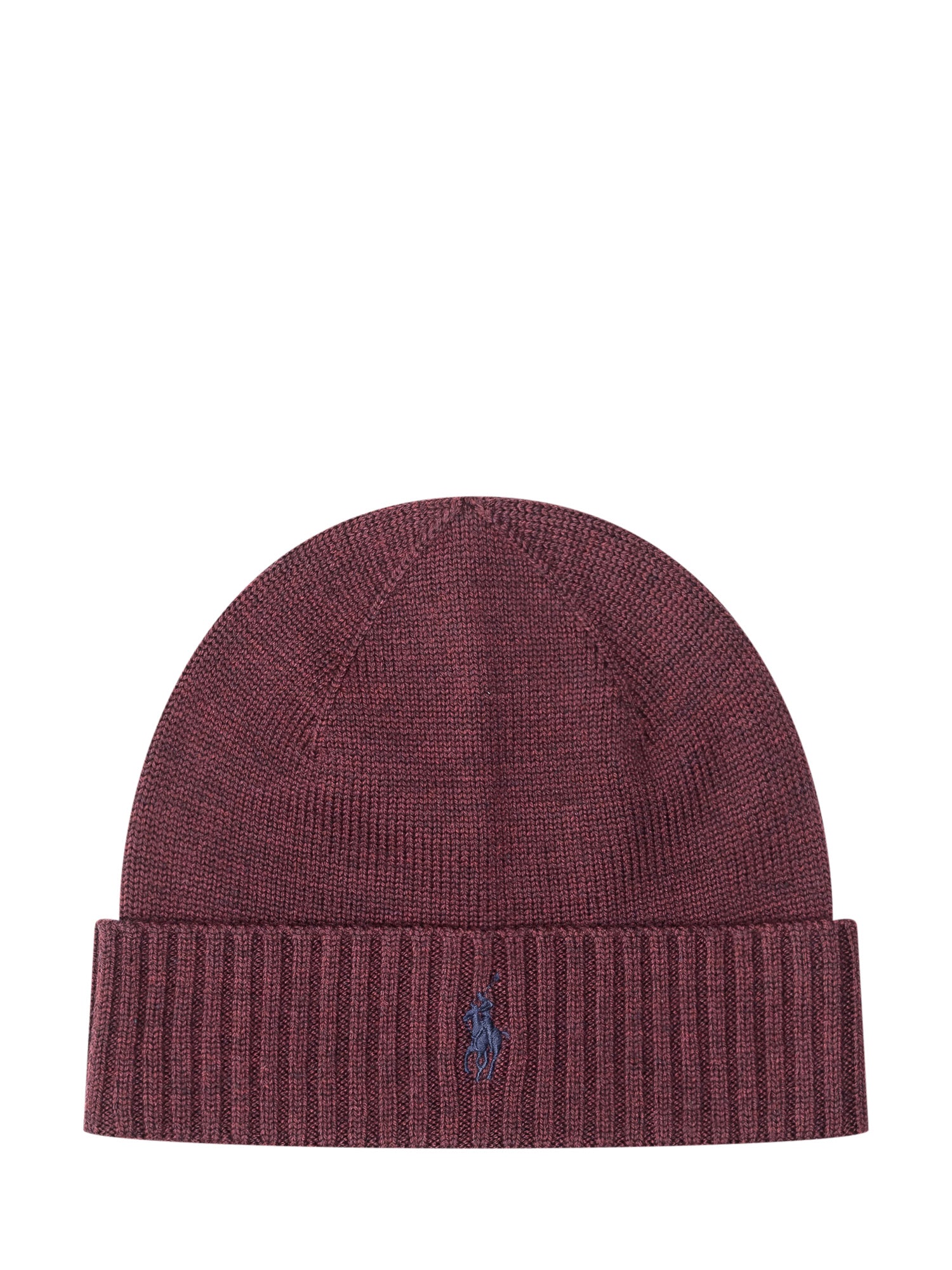Polo Ralph Lauren bordeaux knit beanie featuring embroidered blue logo.