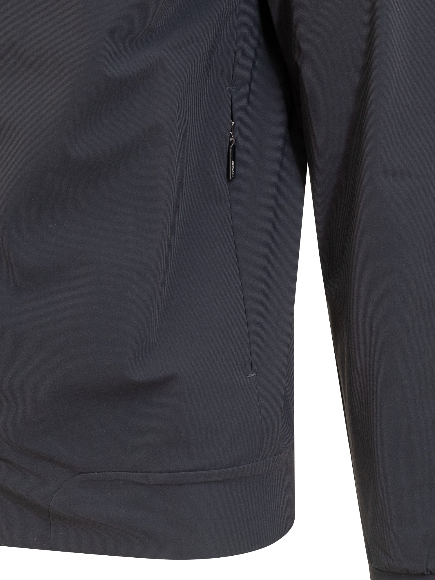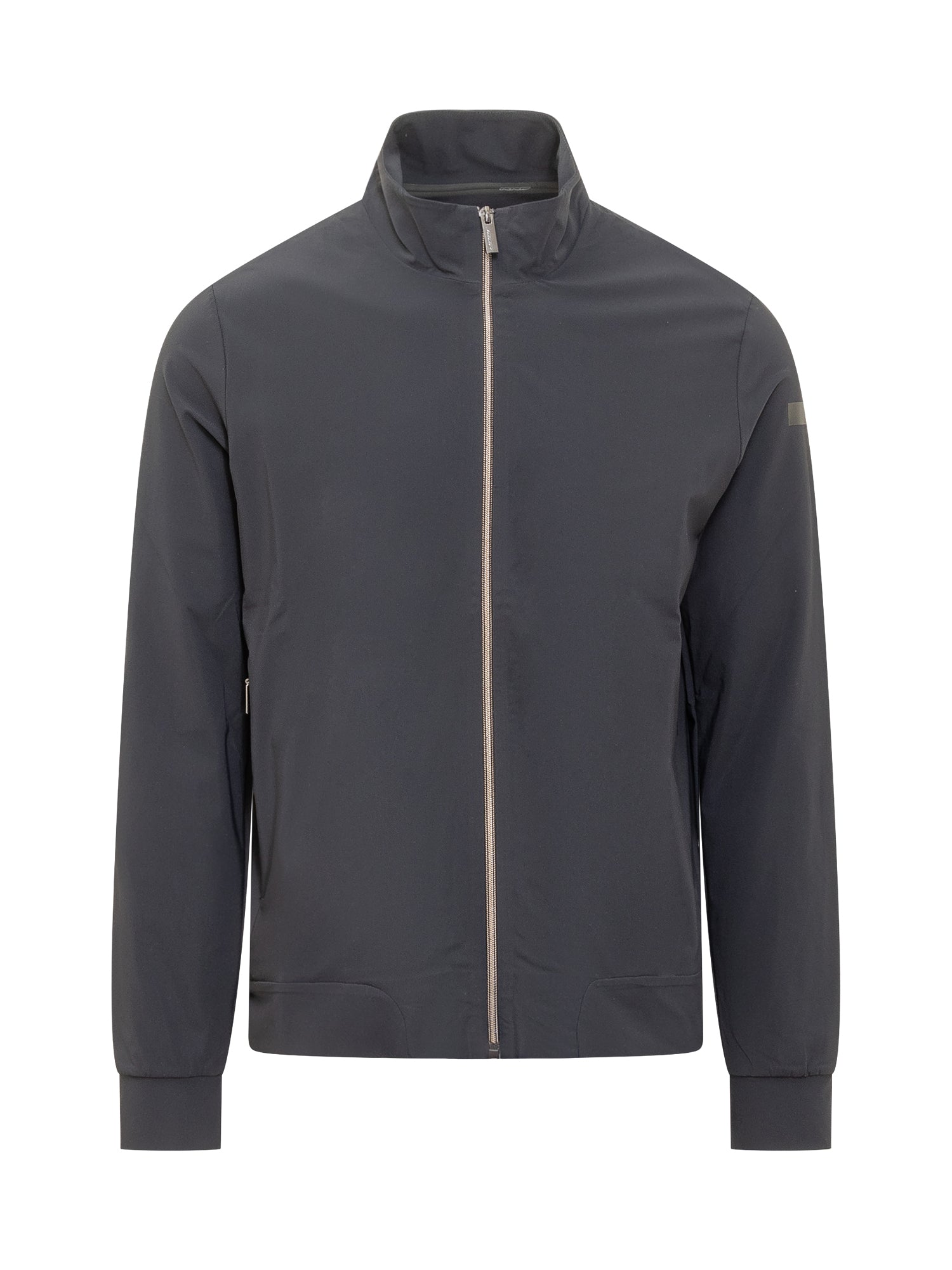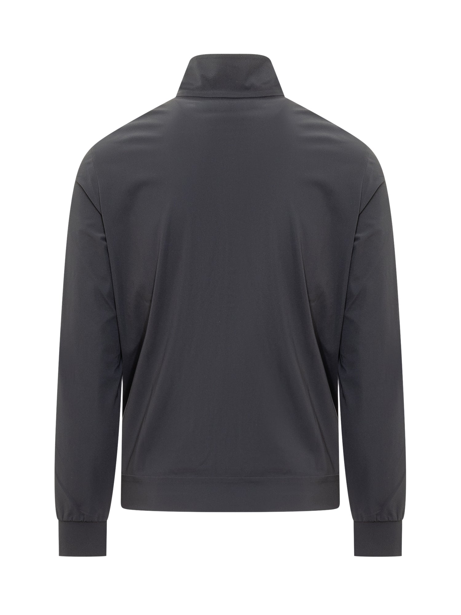 Long sleeved sweatshirt. High neck. Zip closure. Ribbed bottom and cuffs. Two pockets on the front. Logo applied on the sleeve.