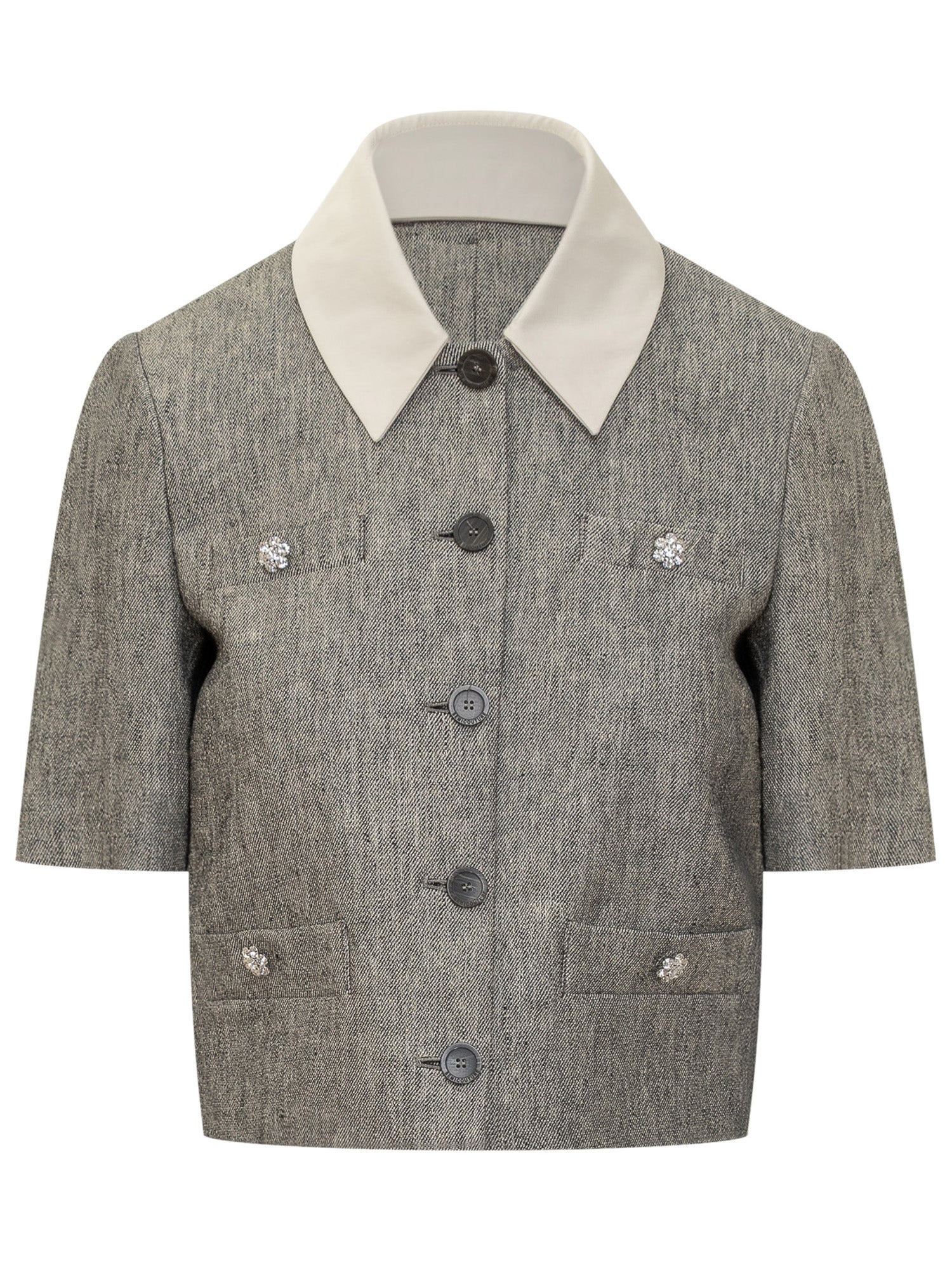 Short sleeves. Point collar. Button closure. Jewel button pockets.