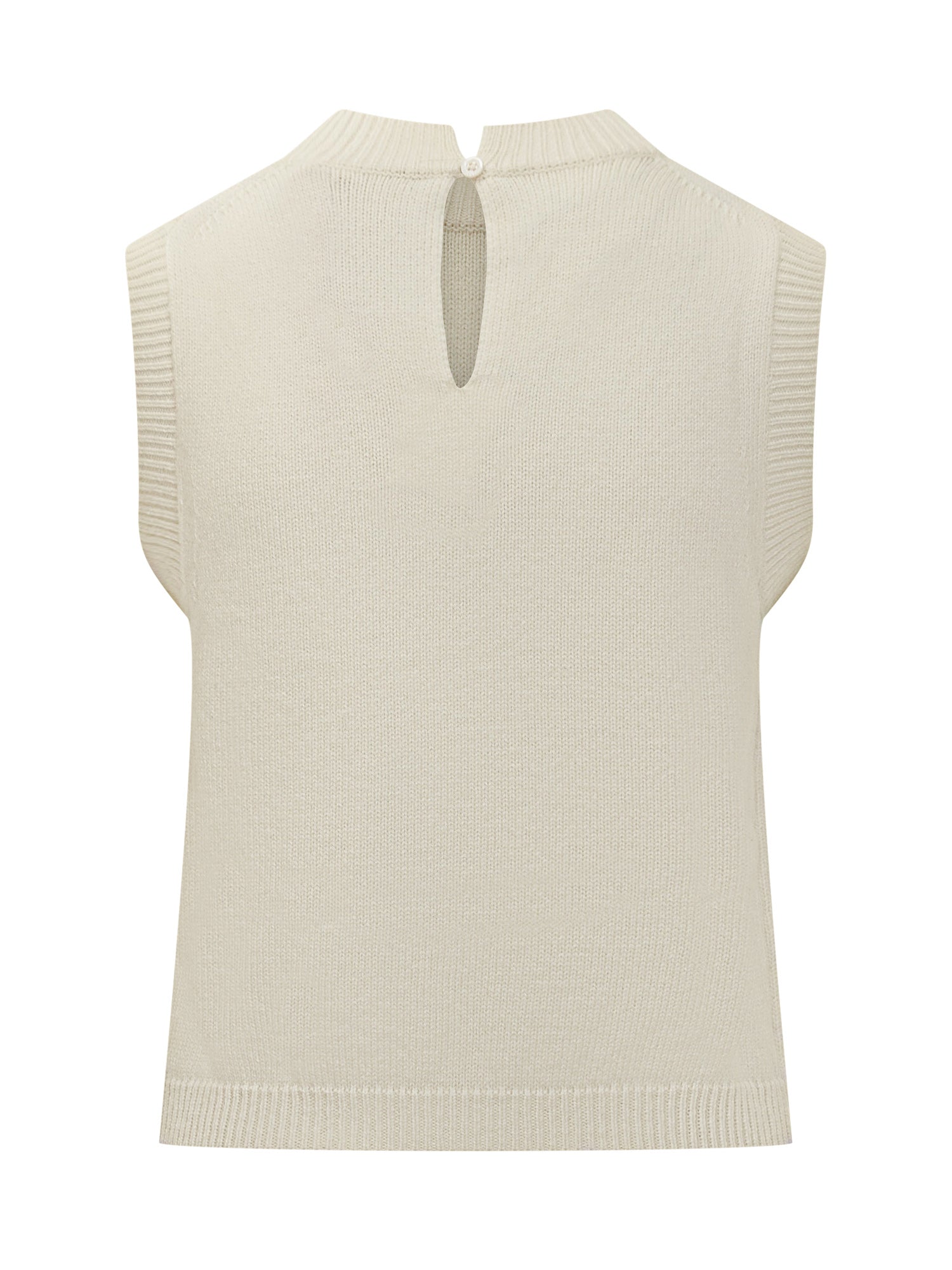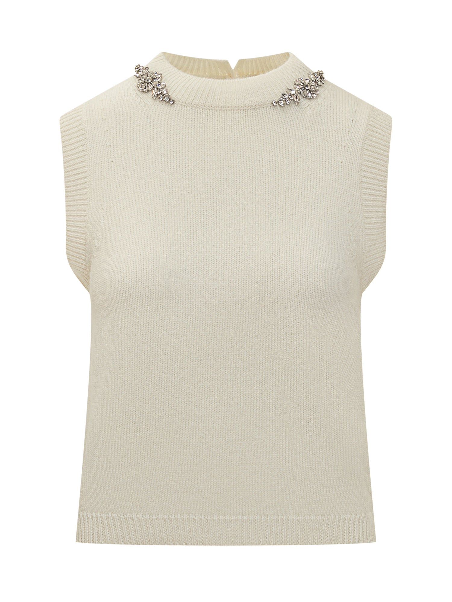 Ivory sleeveless vest with jewel-embellished turtleneck. Elegant and refined, perfect for special occasions or sophisticated looks.