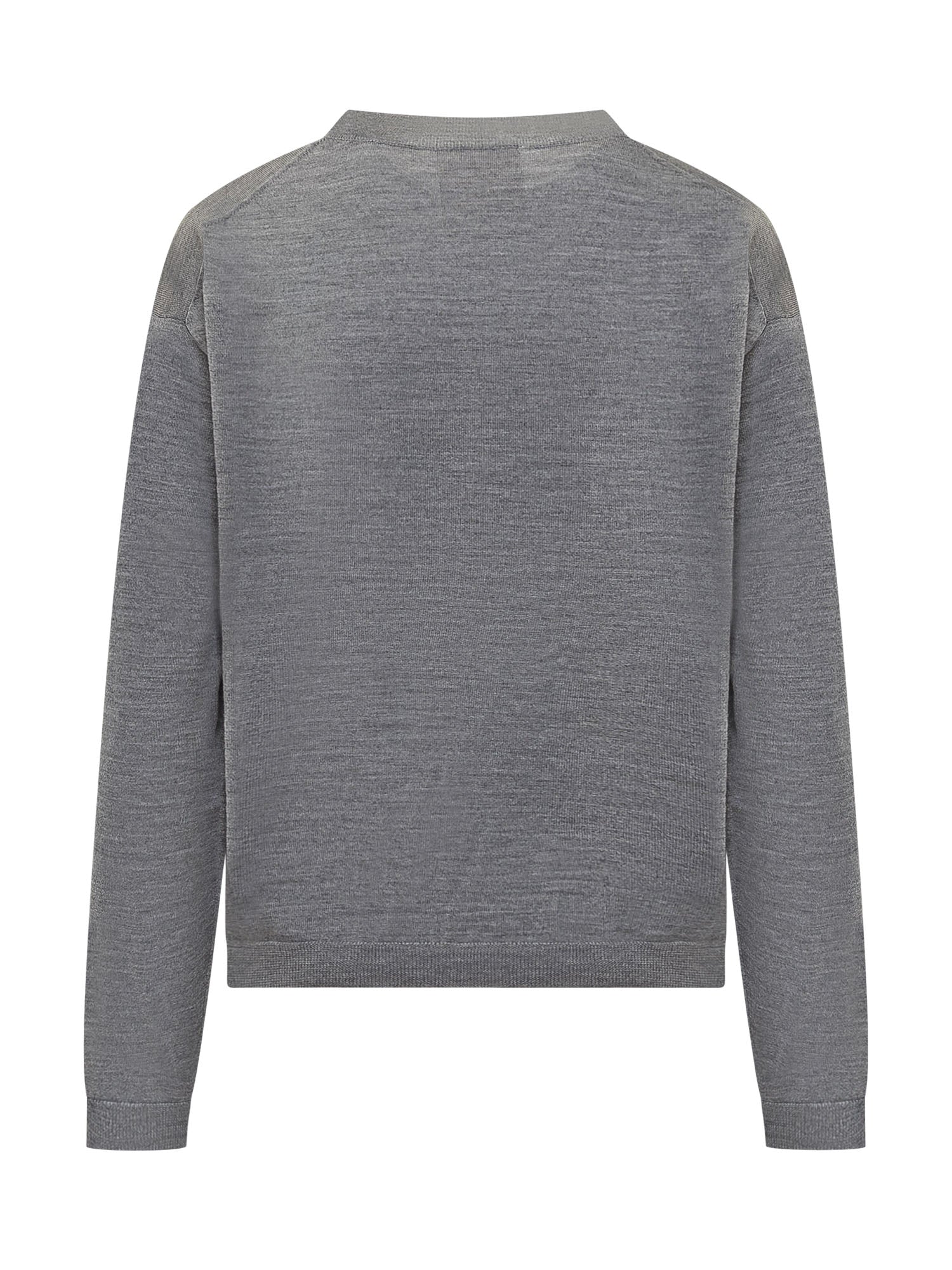 Virgin wool long sleeve sweater. Crew neck. Ribbed hems.