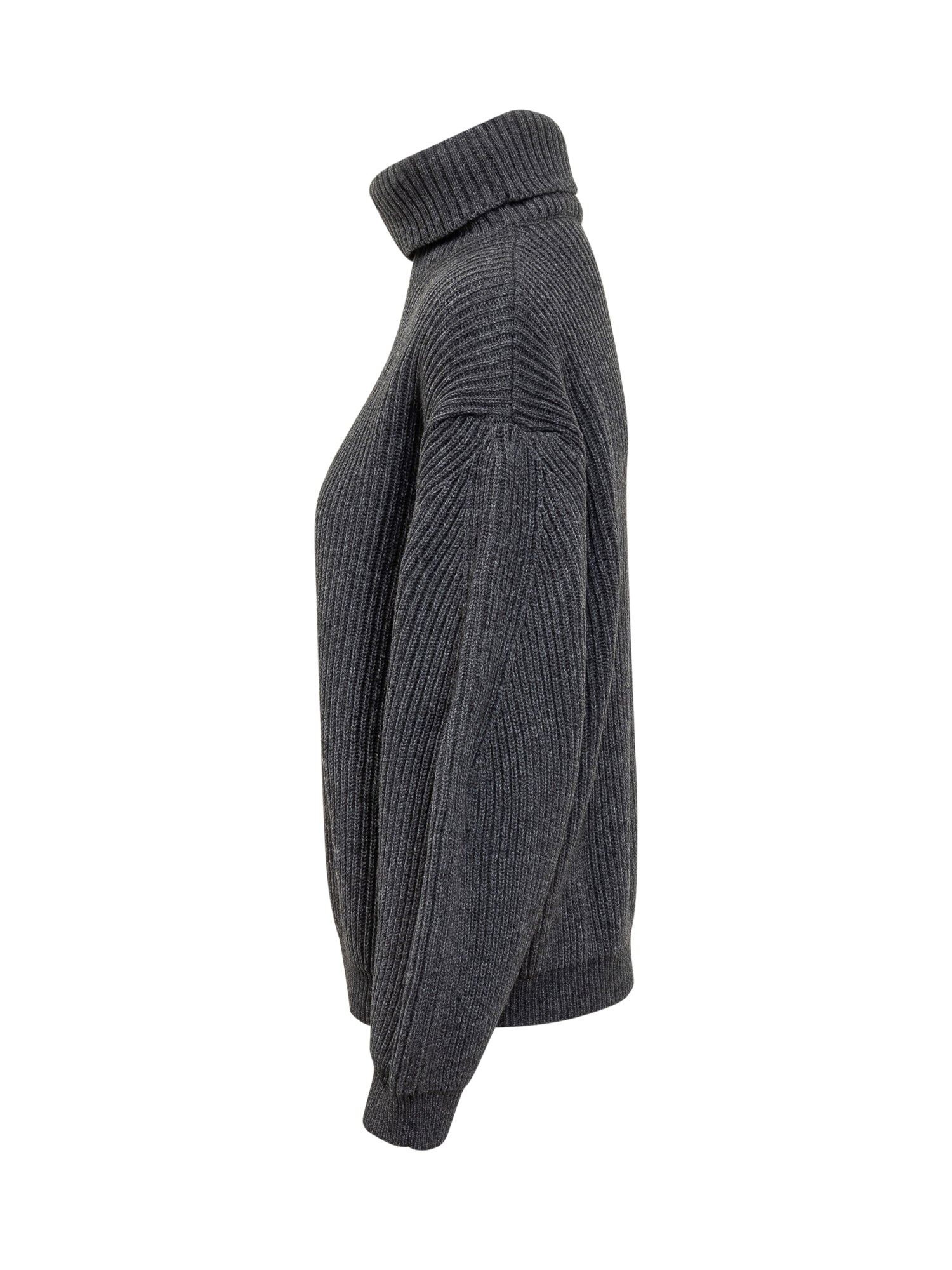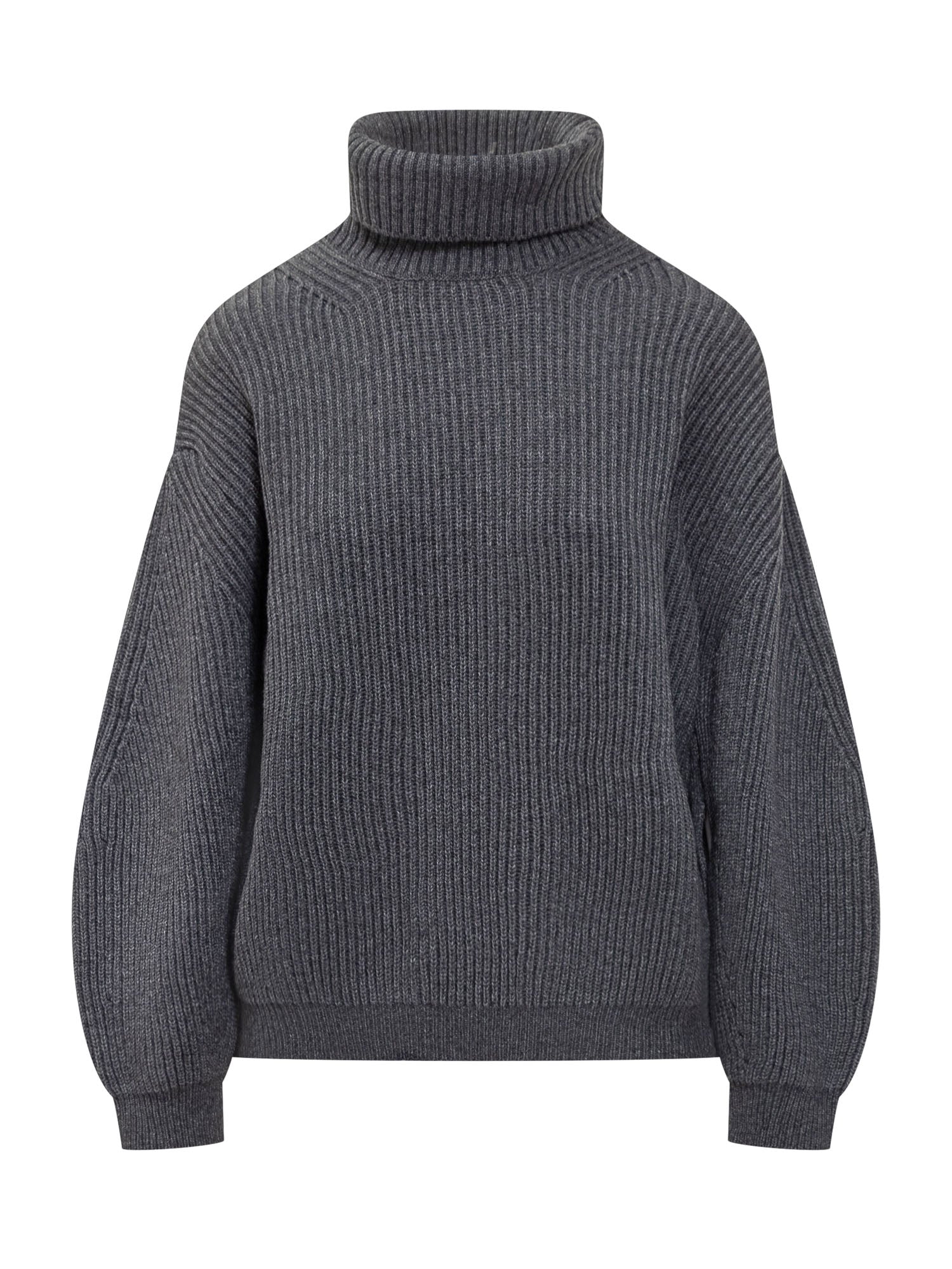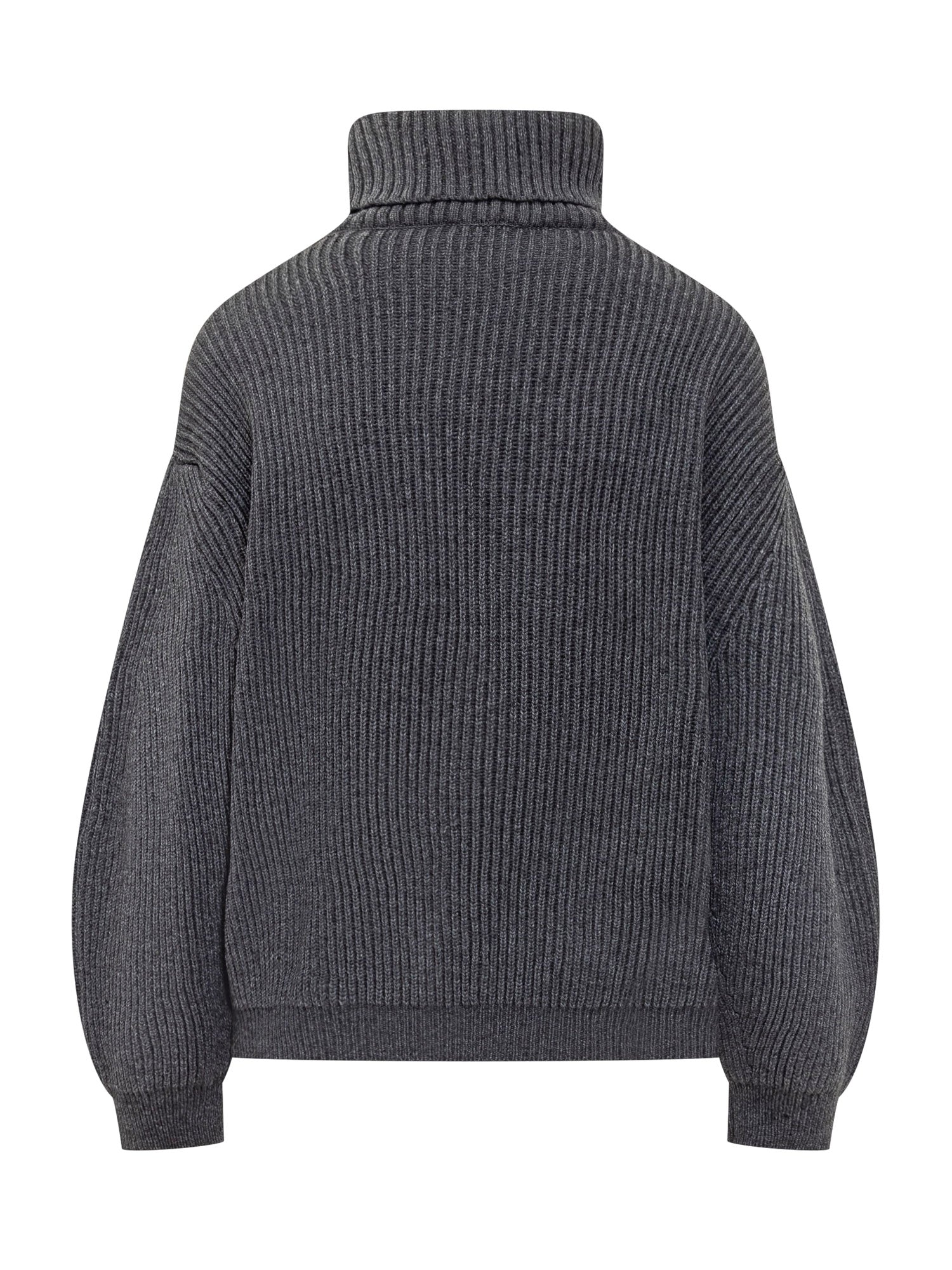 Semicouture ribbed wool sweater with high neck and voluminous sleeves. A warm and versatile piece.