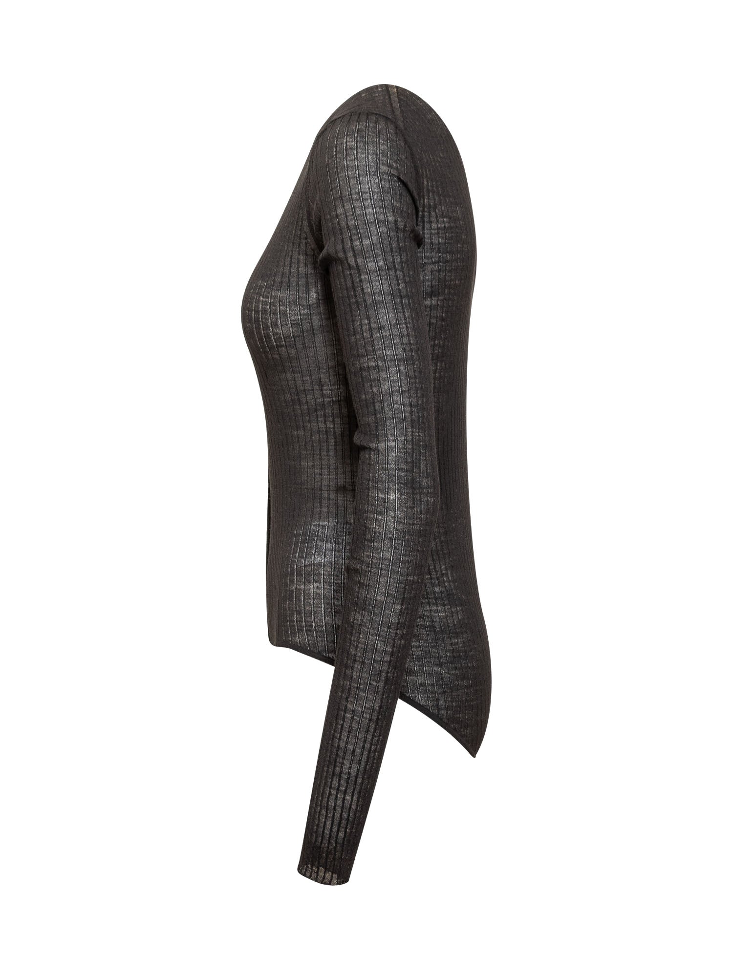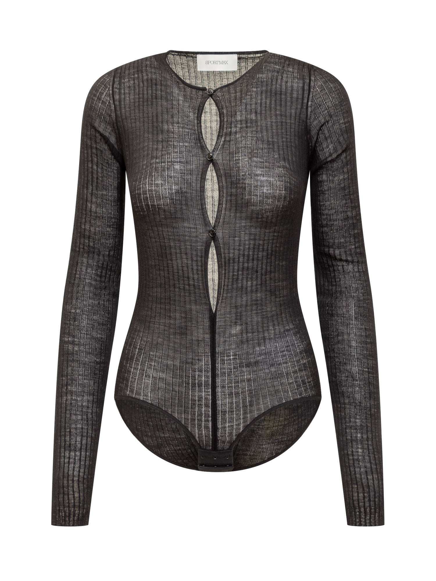 Black sweater. Long sleeves. Round neck. Button closure Adjustable closure with hooks on the bottom.