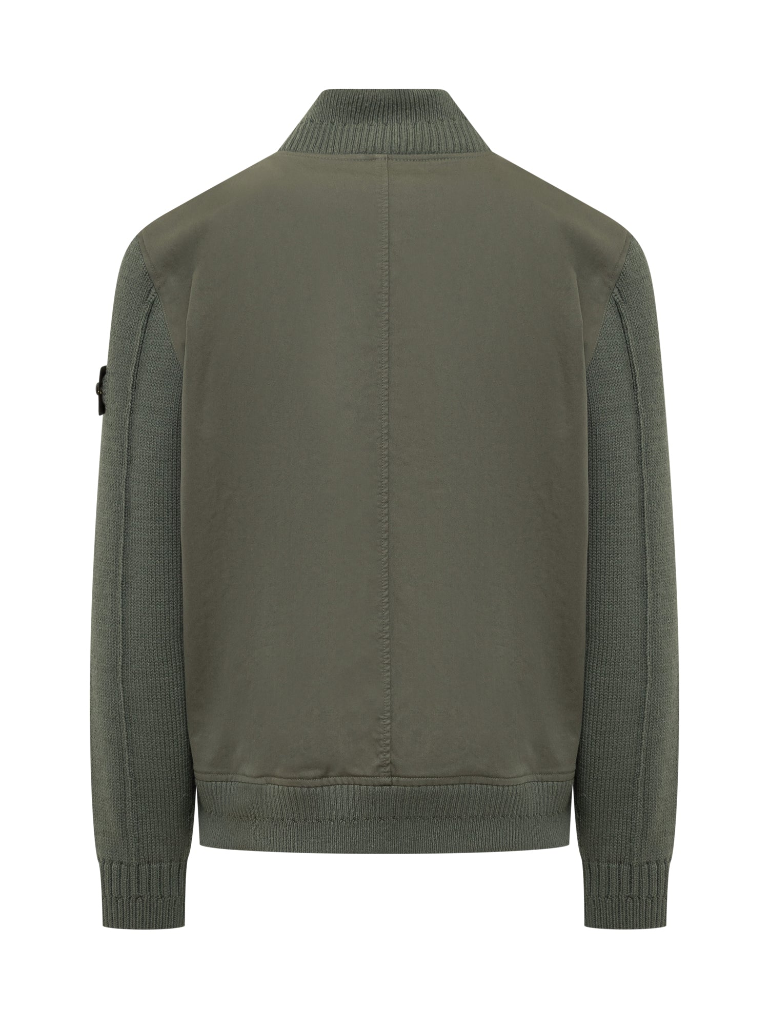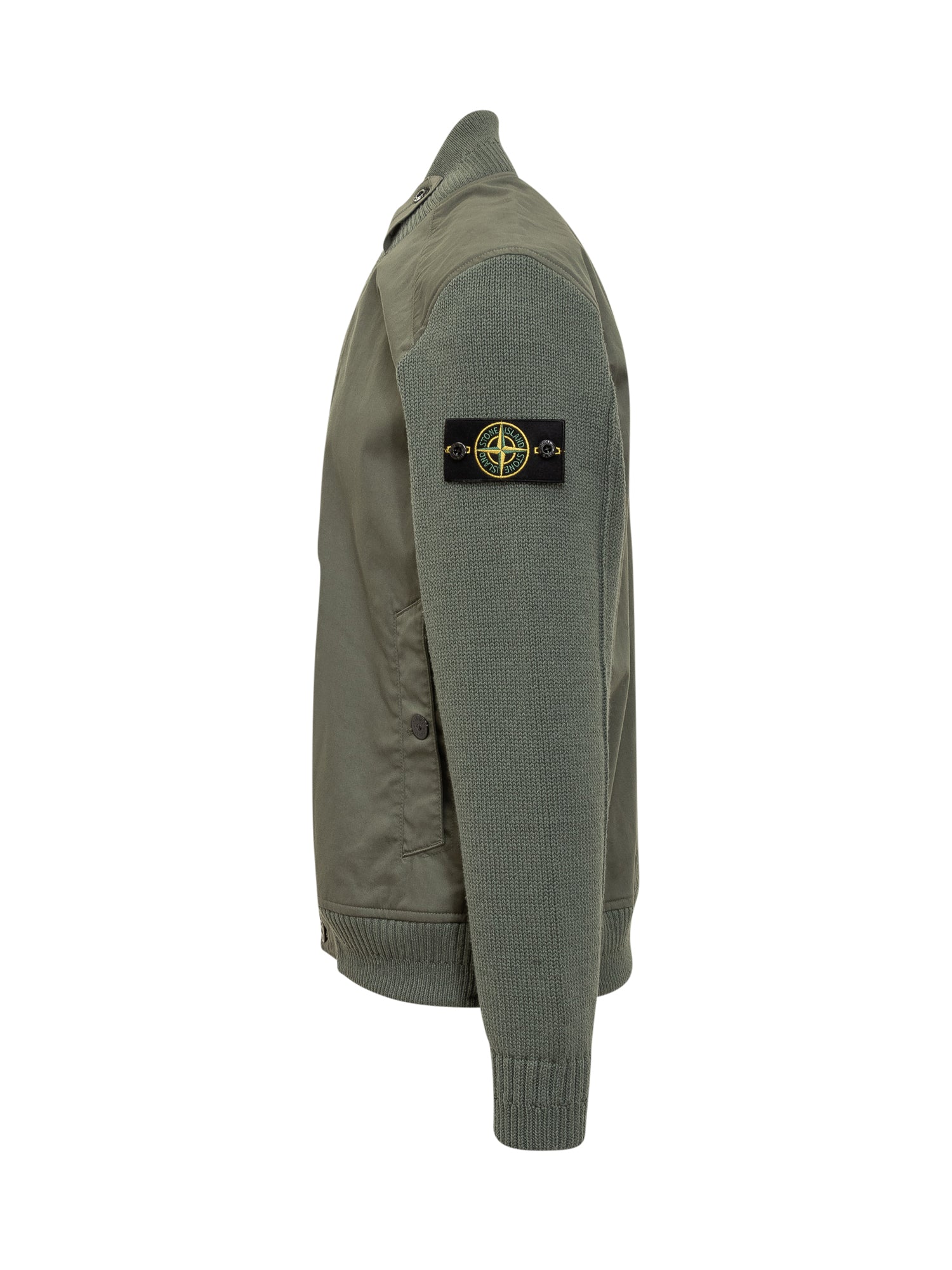 Bio Satin long-sleeved bomber jacket with Bio-Alloy Light Cover-TC and Knit. High collar with button closure detail. Ribbed hems. Button closure. Two buttoned pockets on front. Knitted sleeves. Logo tag on sleeve.