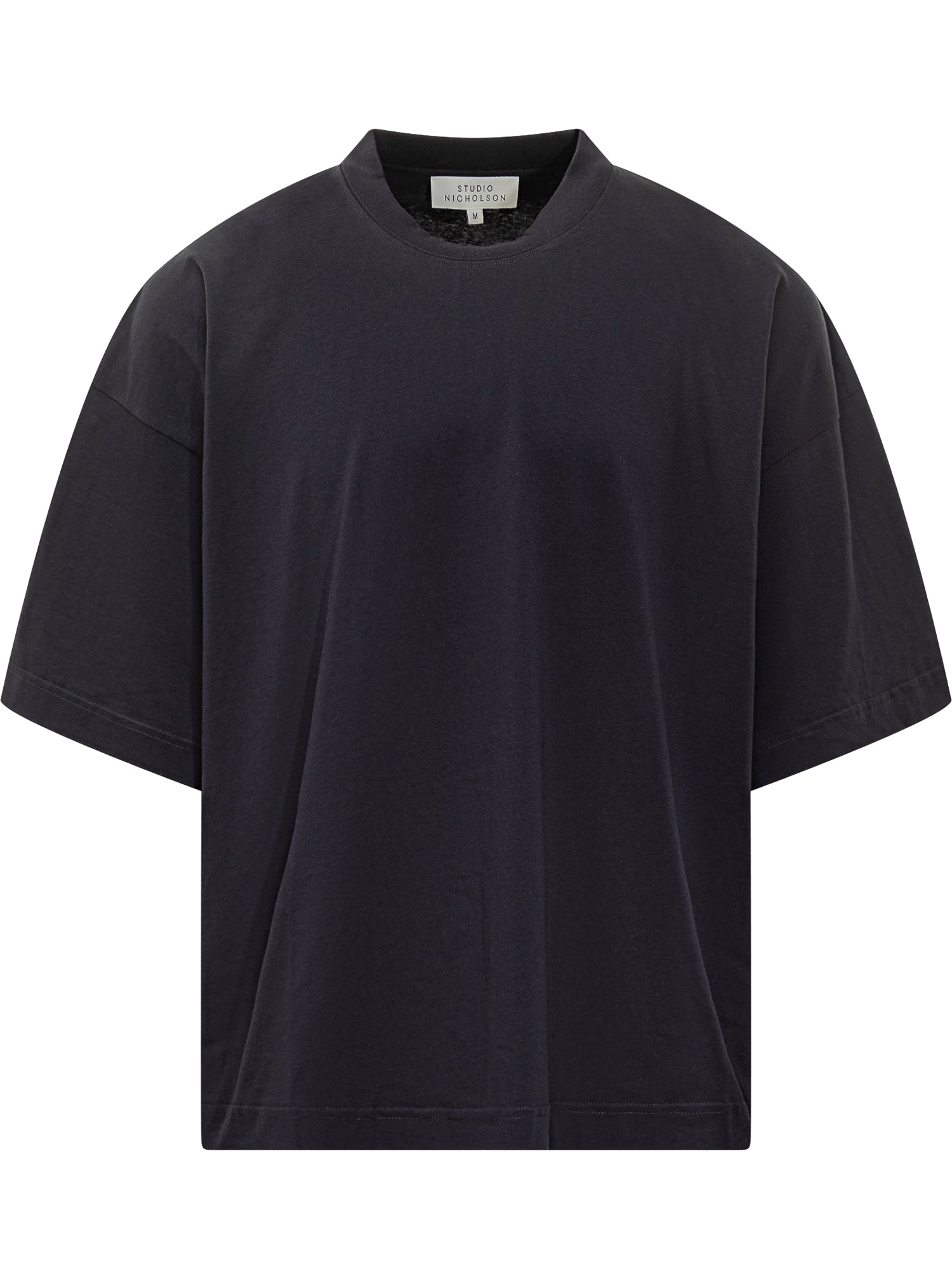 Studio Nicholson black cotton oversized T-shirt. Minimal and versatile design.