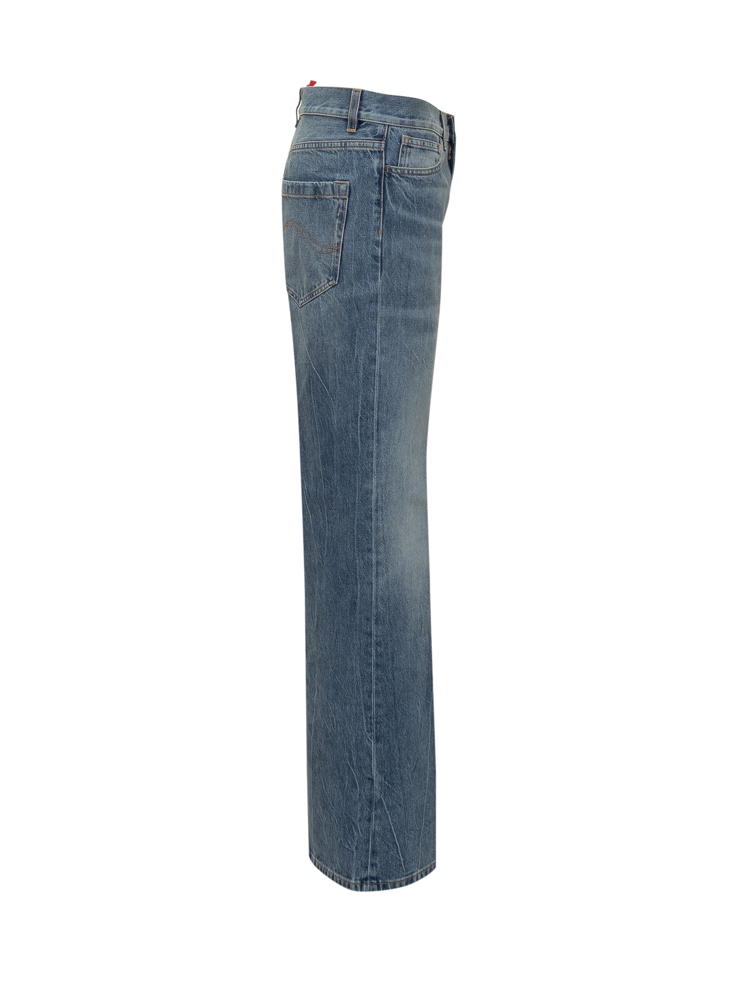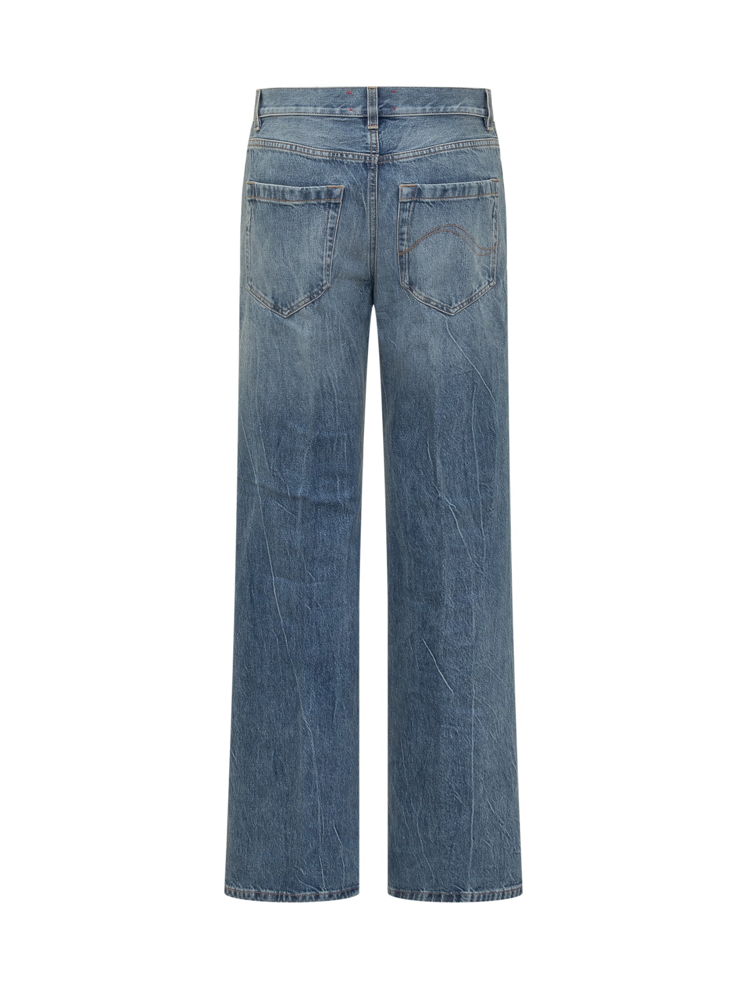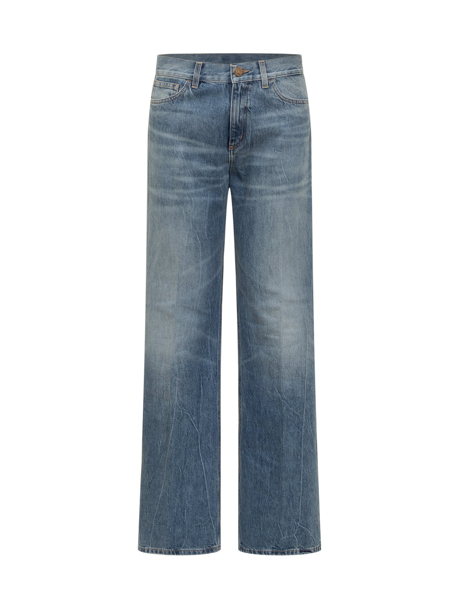 Blue washed denim jeans by The Seafarer featuring straight-leg cut and mid-rise waist.