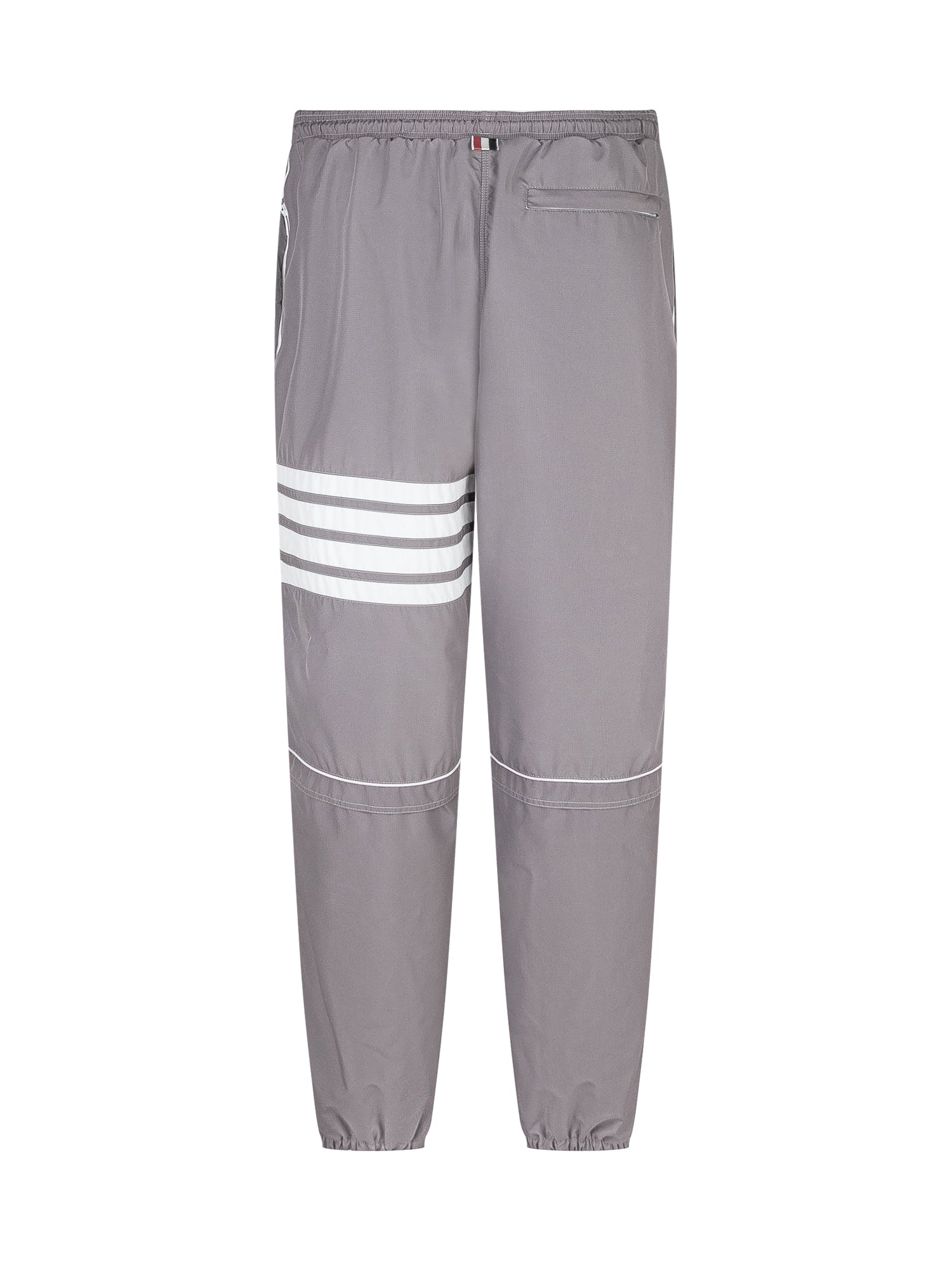 Sporty trousers. Elasticated waist with drawstring. Side pockets. Back pocket. 4-bar logo on the leg. Tongue with striped grosgrain loop on the back.