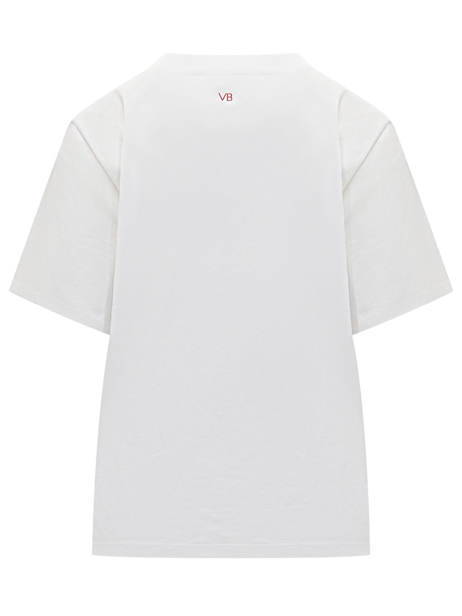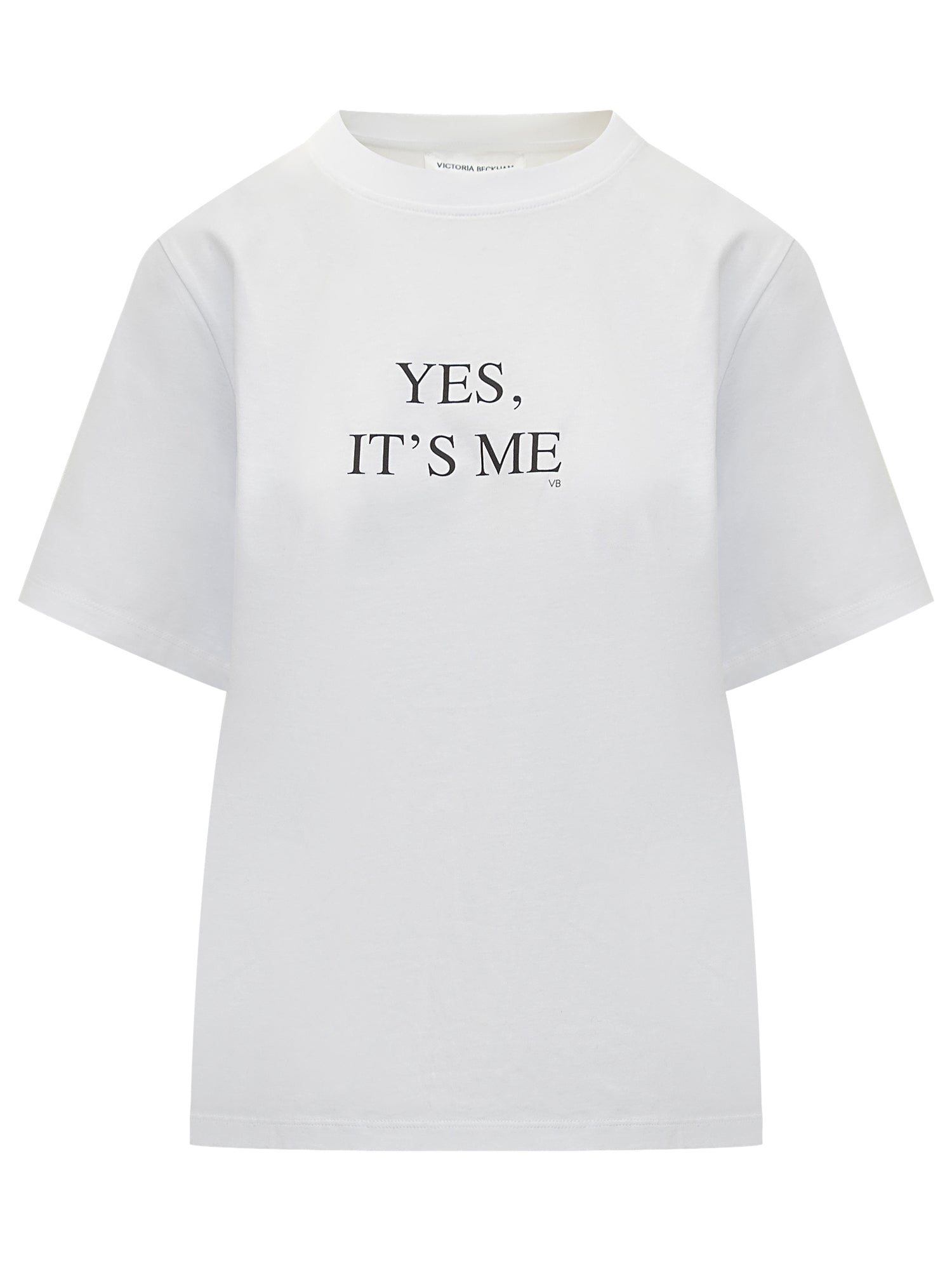 Victoria Beckham white cotton T-shirt with Yes, It s Me print on the front. Regular fit, minimalist.