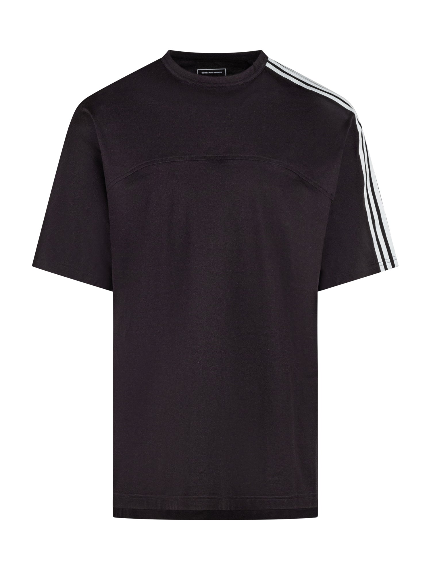White T-Shirt. Crew-neck. Short sleeves. Striped band on the hip.