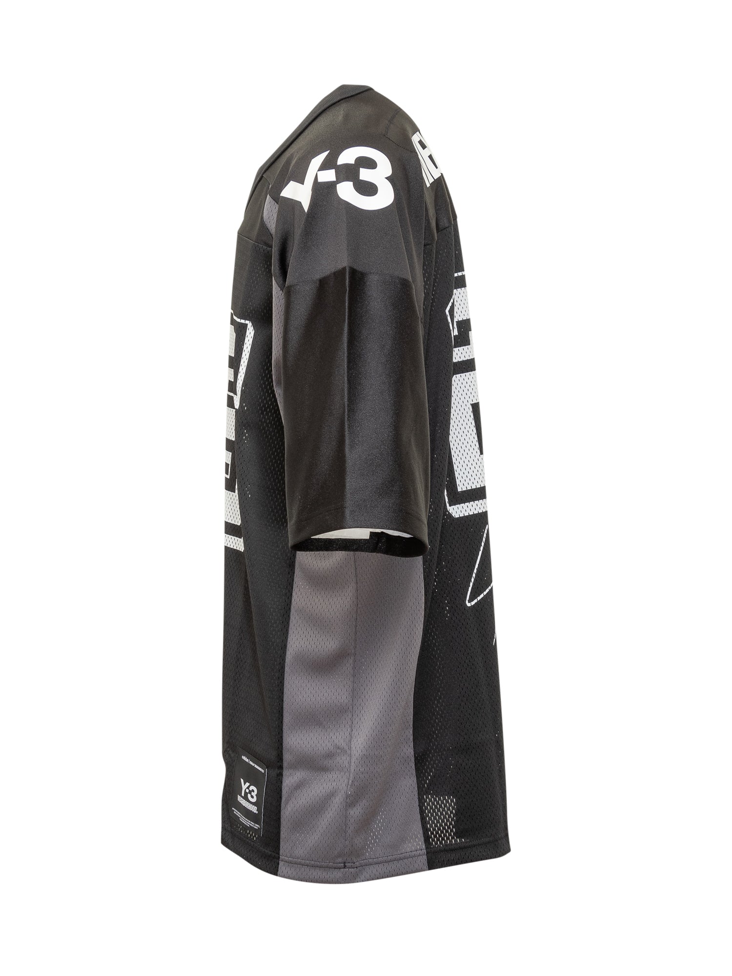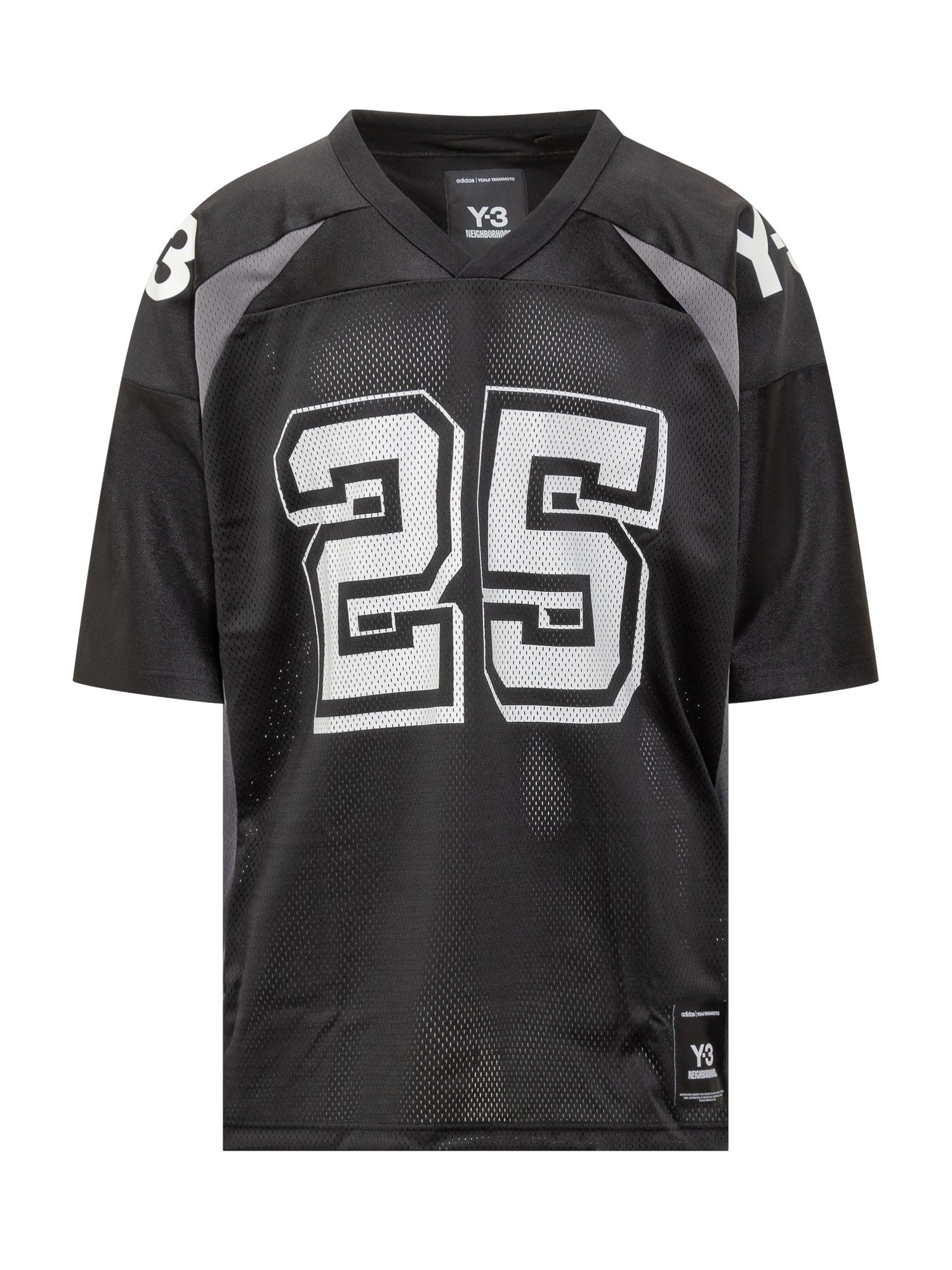 Y-3 Neighborhood breathable technical jersey featuring number 25 on the front and logo details on the sleeves. Football-inspired oversized design with a bold streetwear edge.