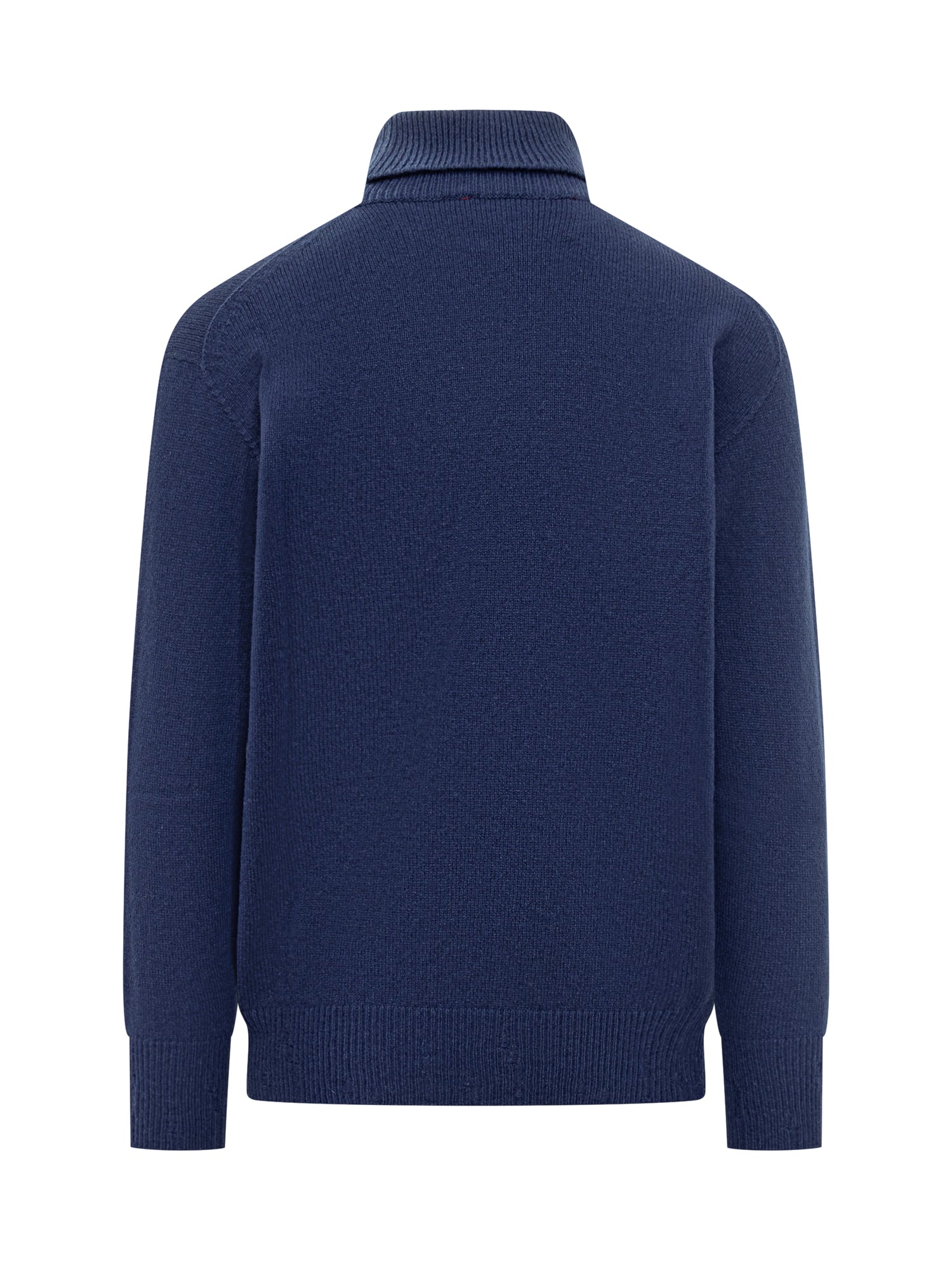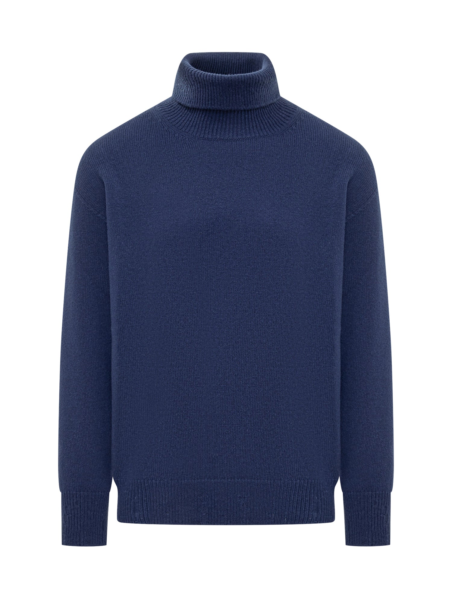 Amaranto blue wool turtleneck with fine knit and regular fit.