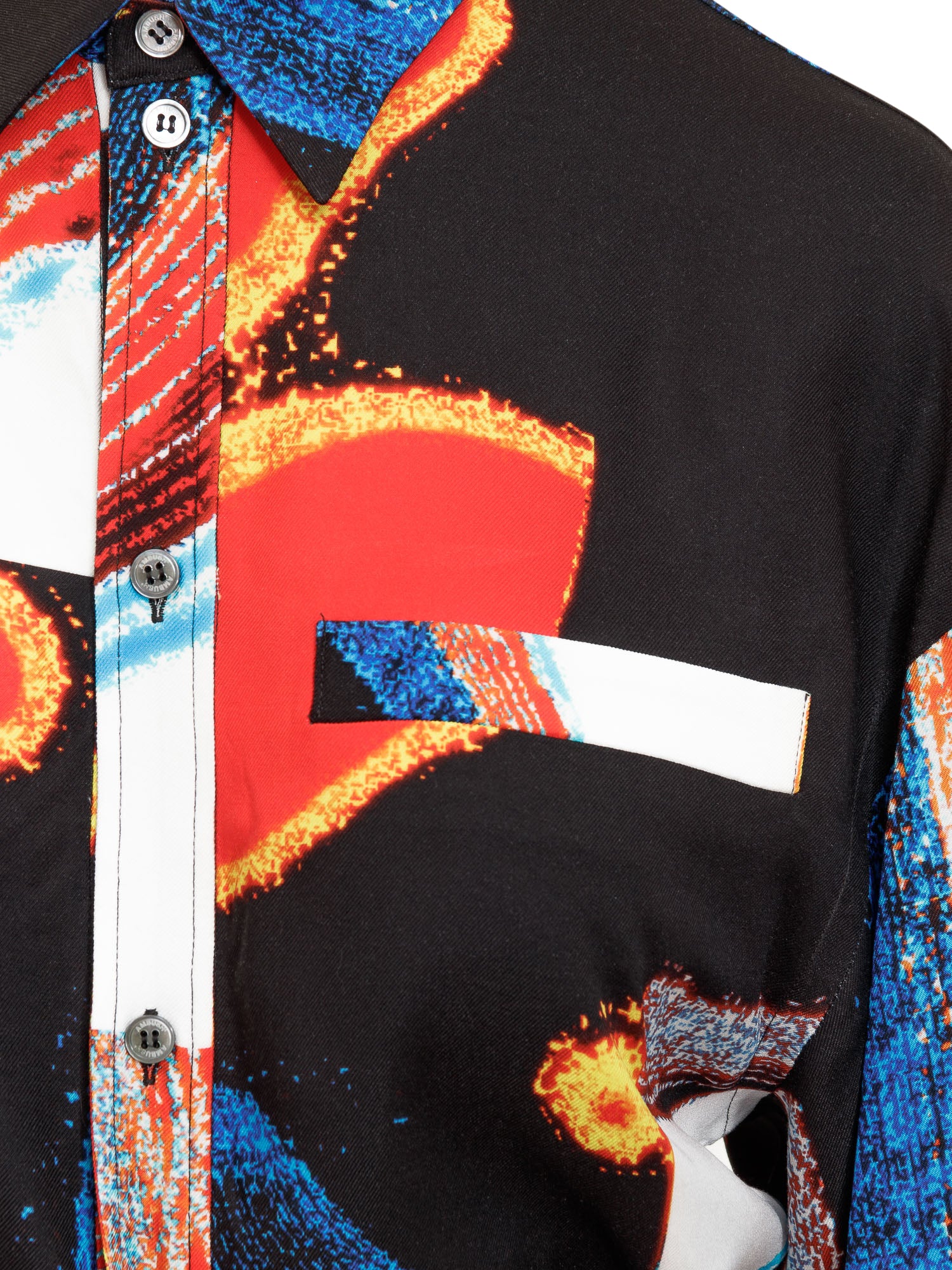 Short-sleevs shirt. Print all-over. Front buttons closure. Pocket on the chest.
