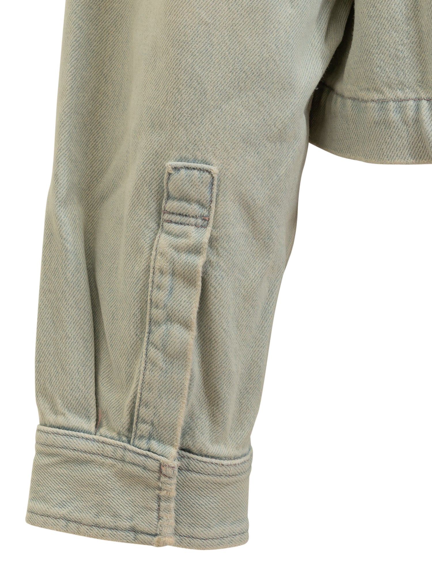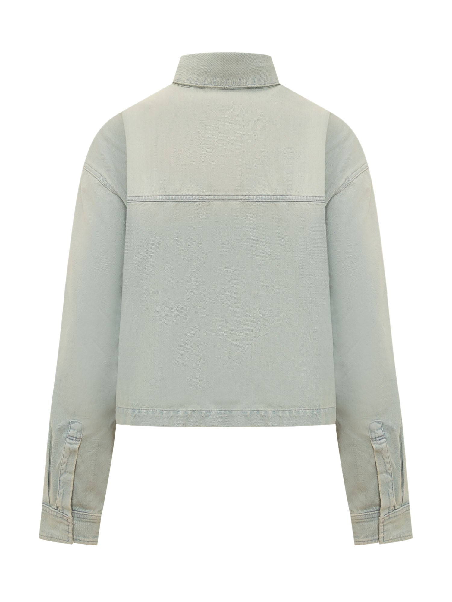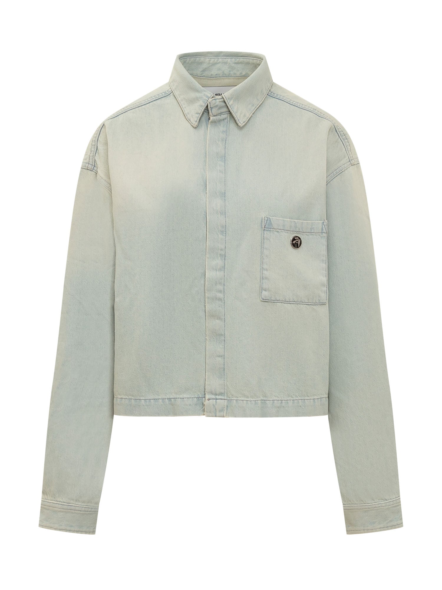 Denim shirt with long sleeves. Classic collar. Button closure. Cuffs with button. Chest pocket with 'AMBLEM' logo.