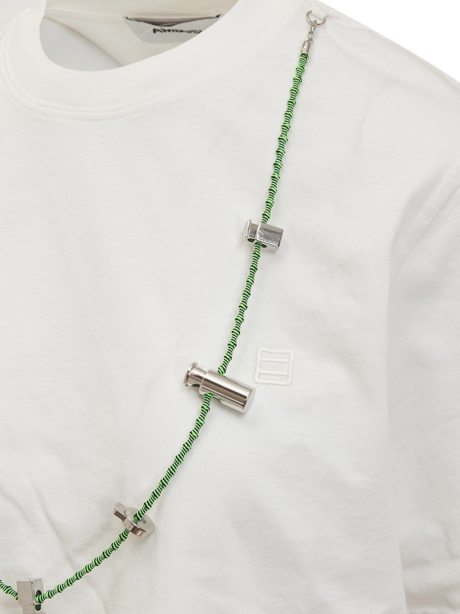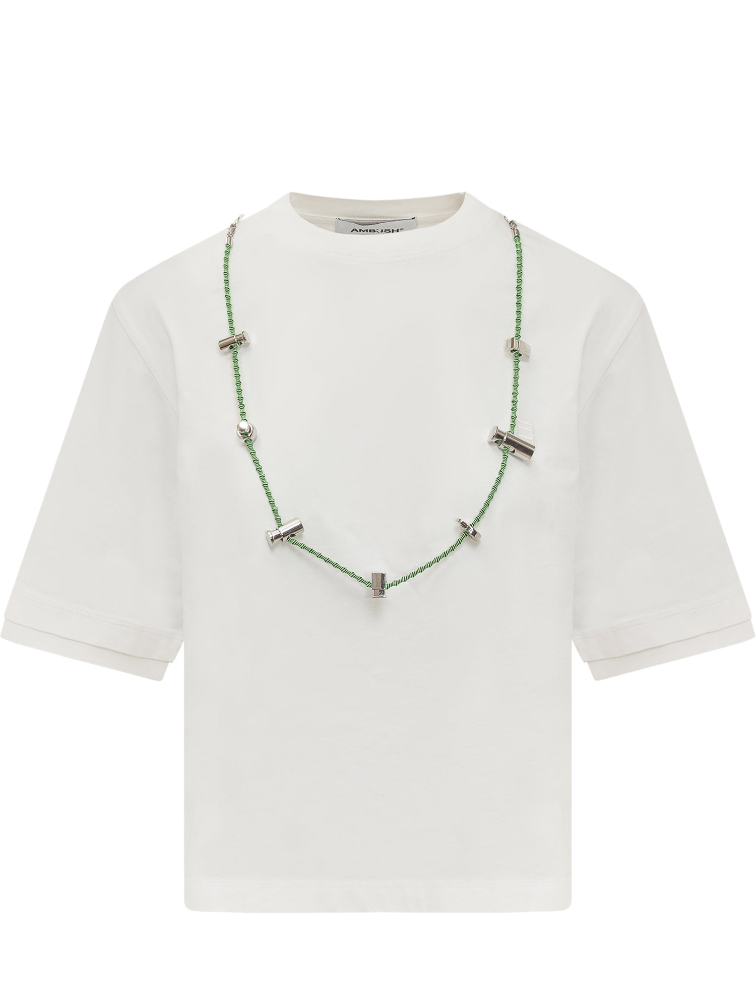 Crop white t-shirt. Necklace detail on the front. Ribbed crewenck.