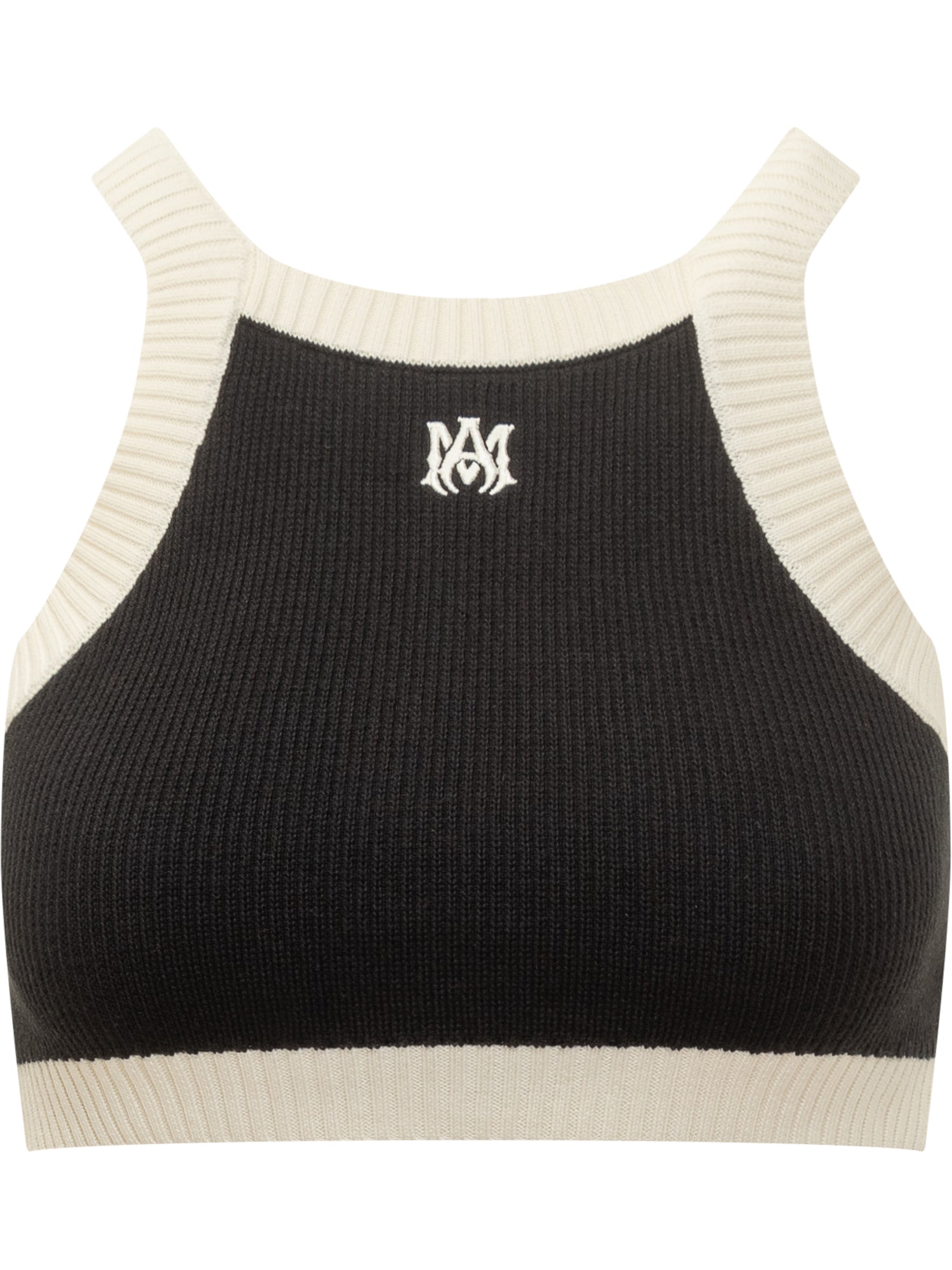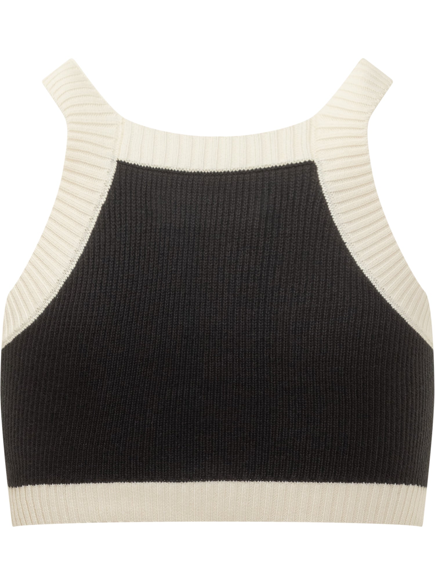 Knitted tank top. Ribbed hems. Logo on the front. Crop cut.