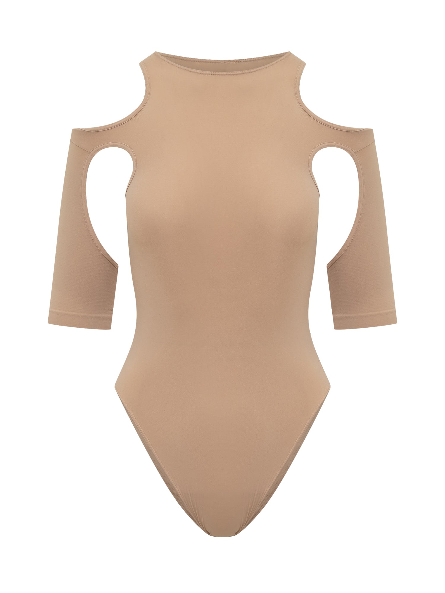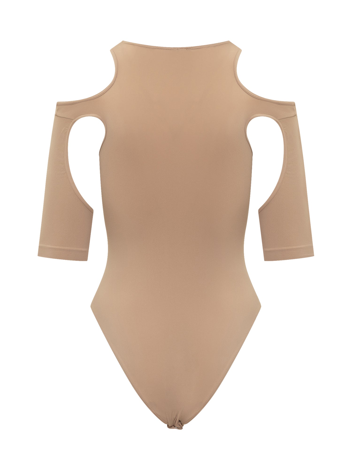Bodysuit with sleeves. Crew neck. Sleeves with cut-out. Stretch workmanship.