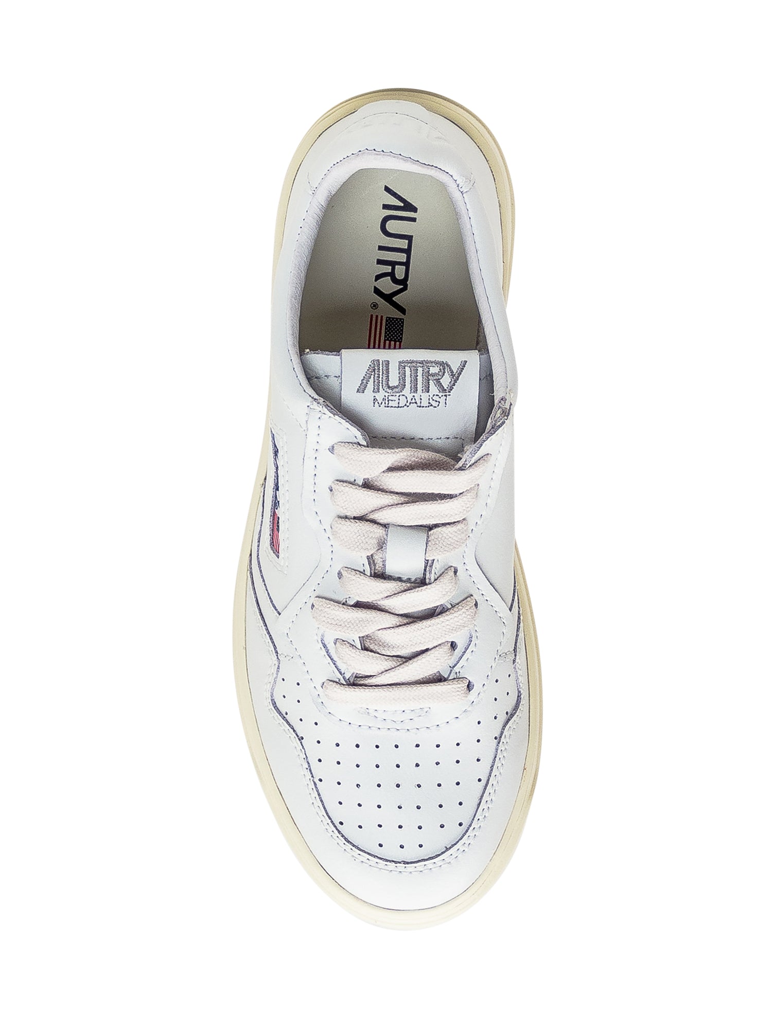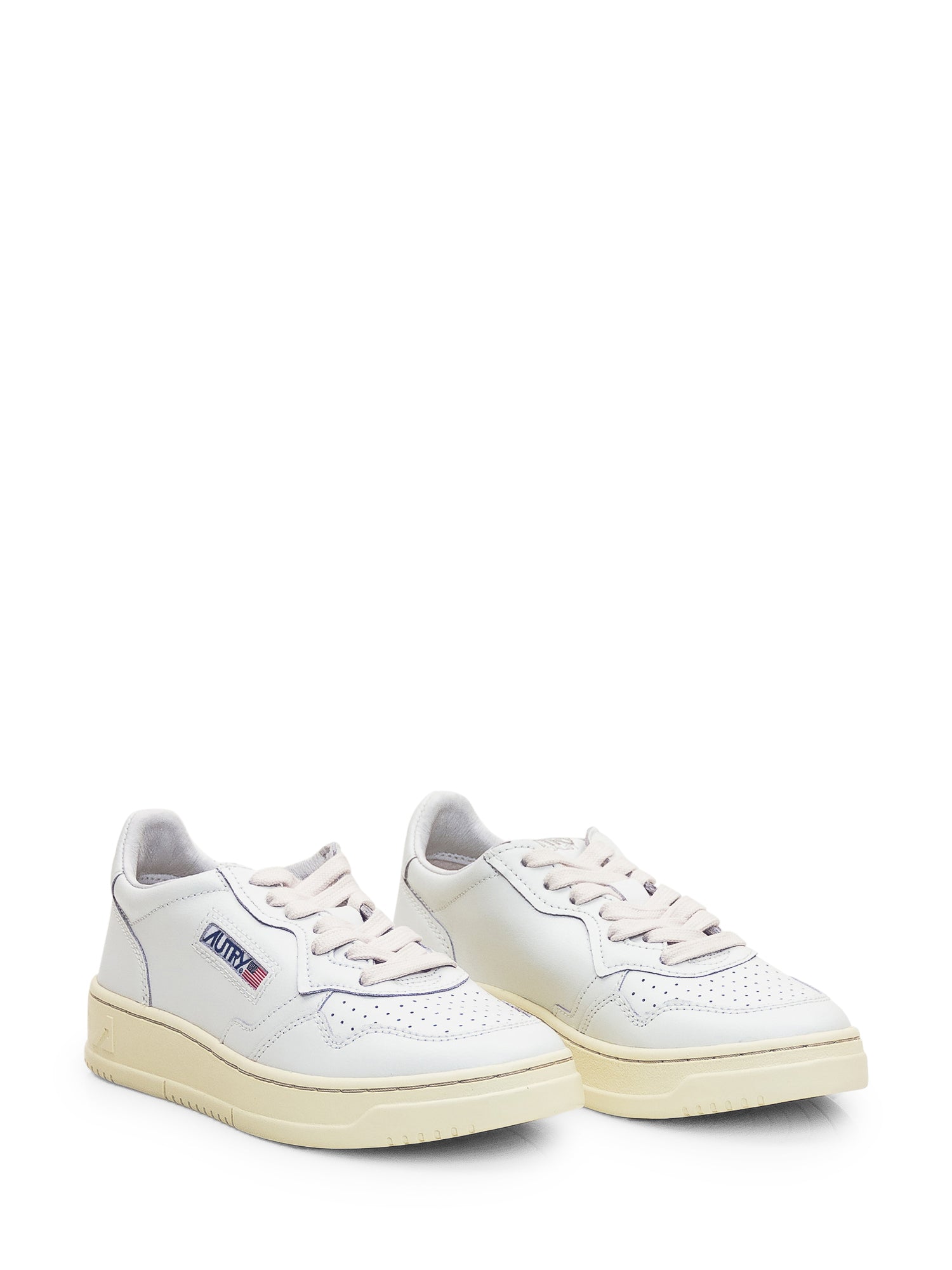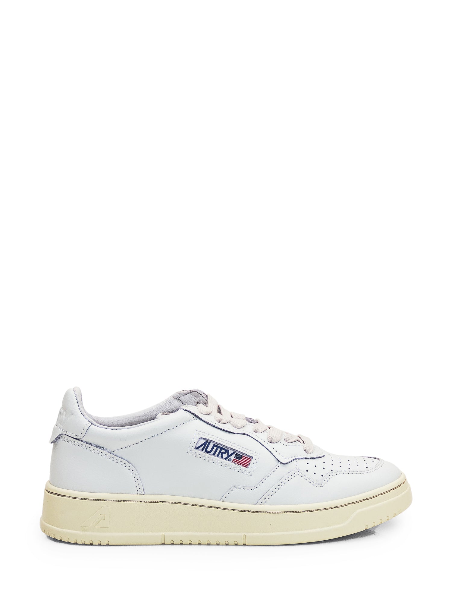White low sneaker. Closure with laces. Perforated toe. Logo on the side, tongue and heel.