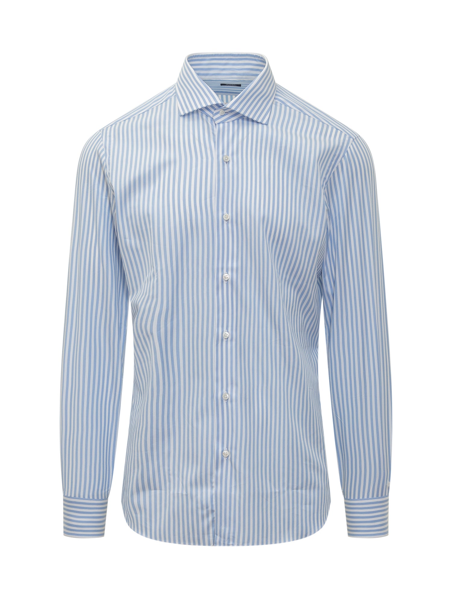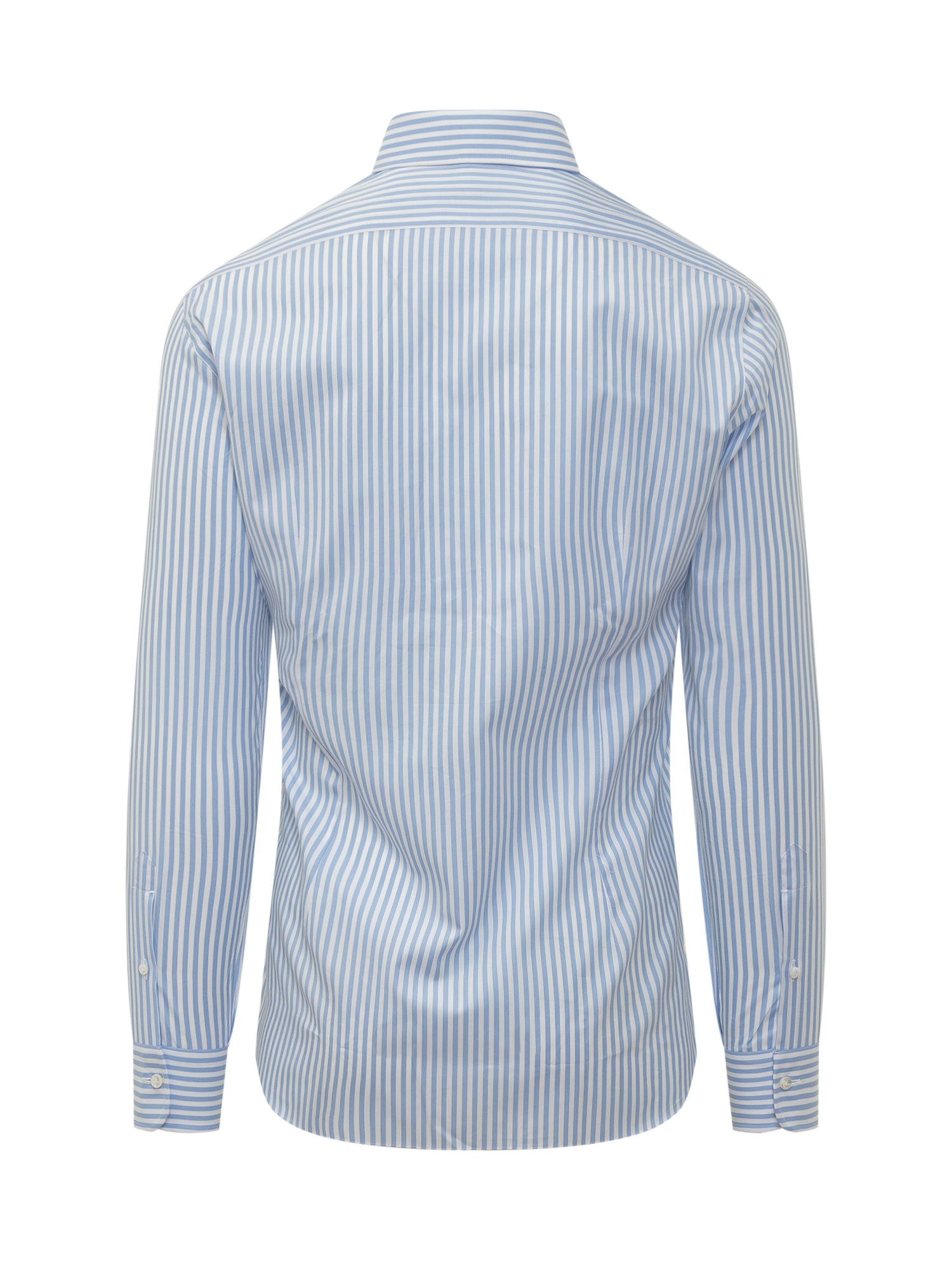 Barba cotton shirt featuring blue and white stripes, classic collar and button closure.