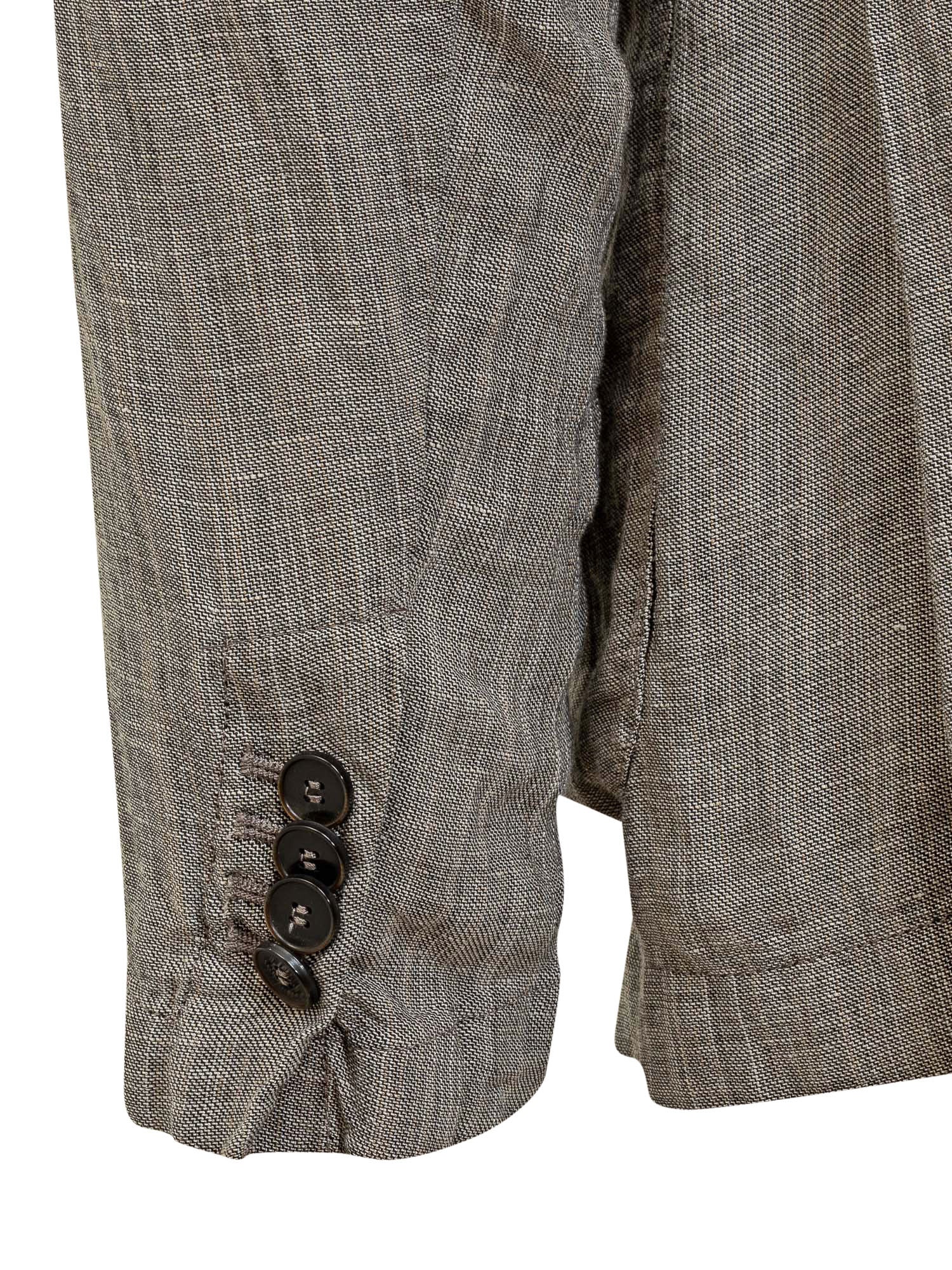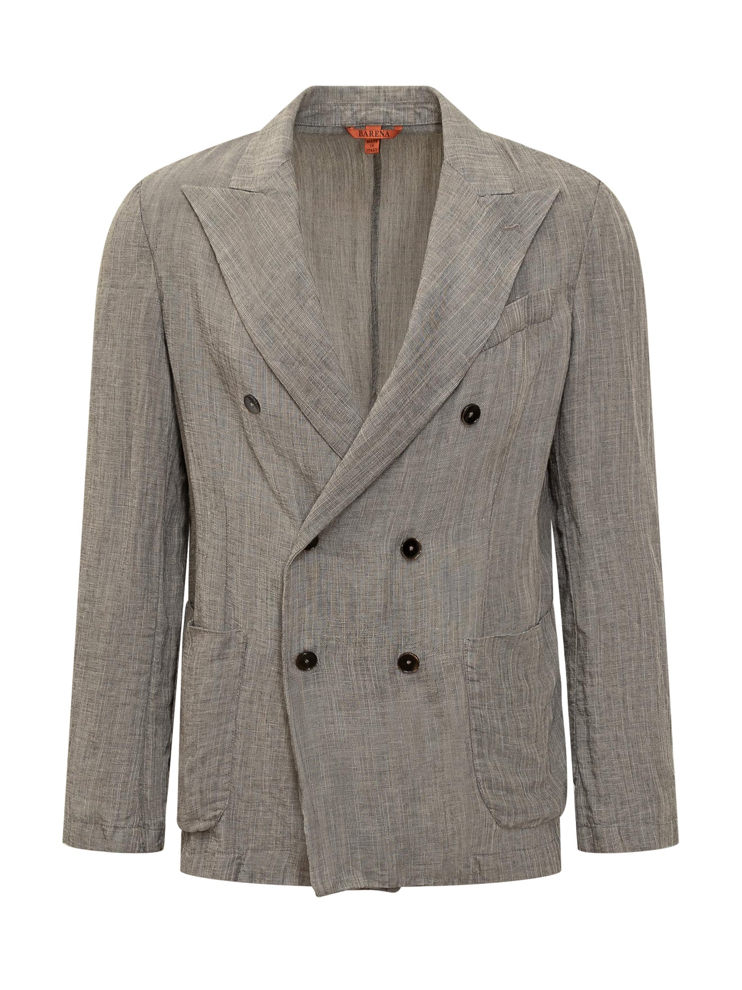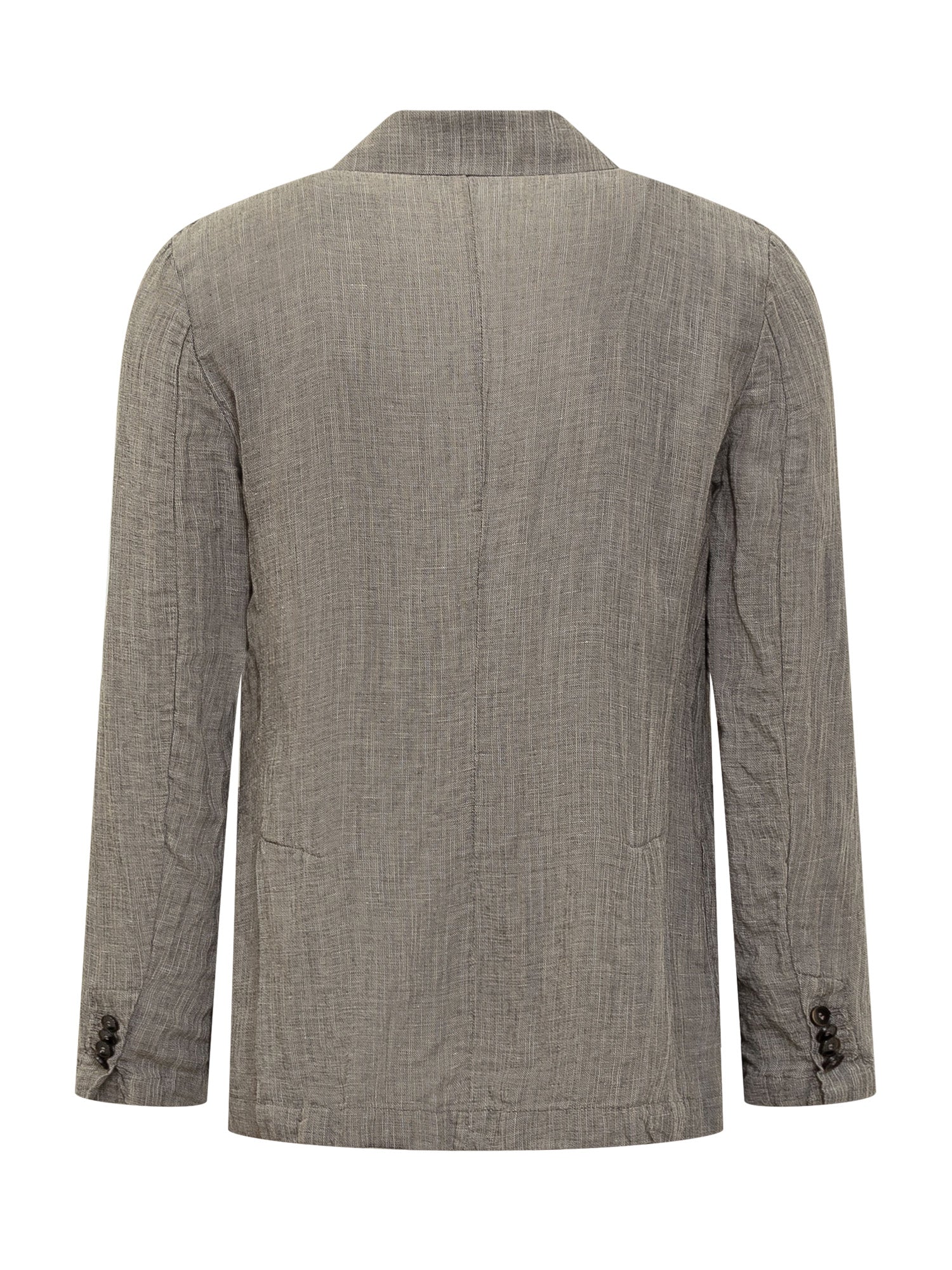 Linen-blend long-sleeved double-breasted blazer. V-neck. Button closure. Button cuffs. 3 pockets.
