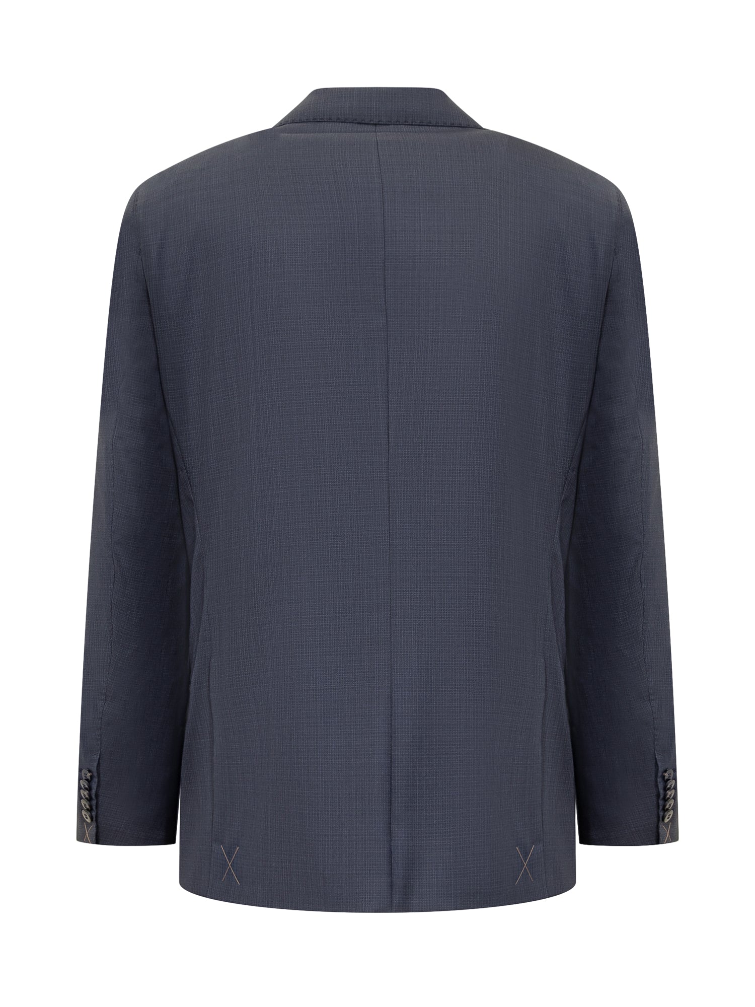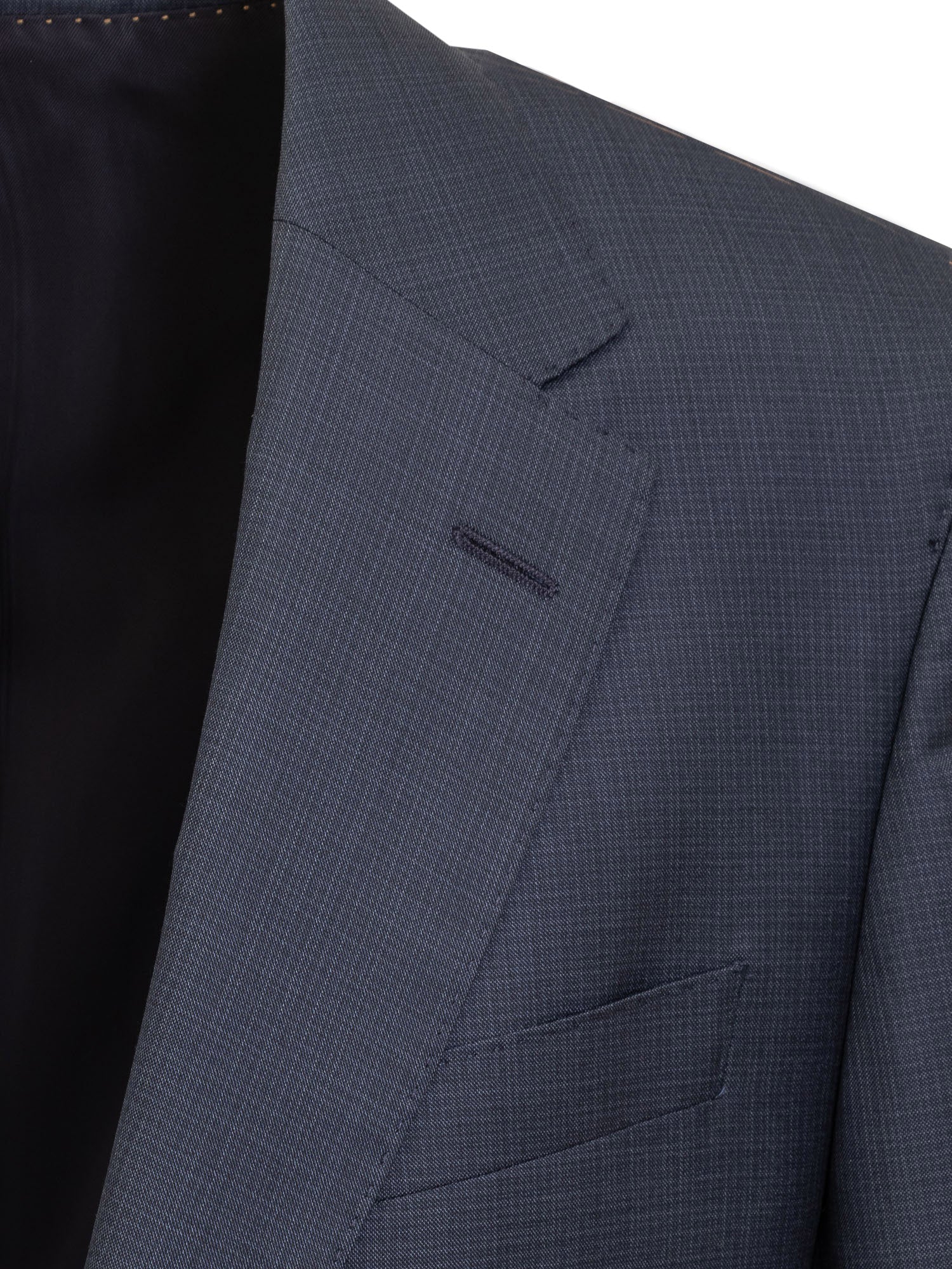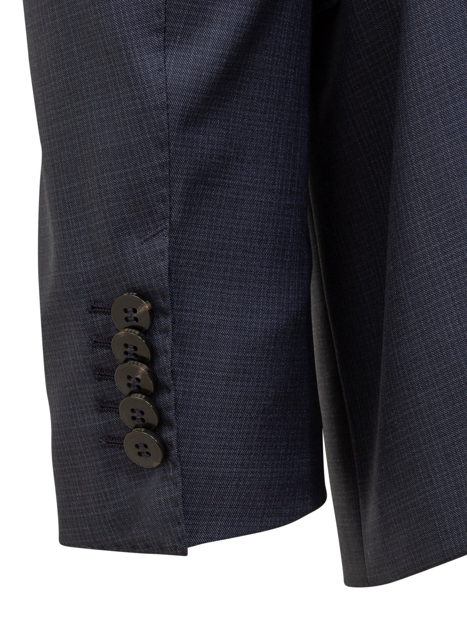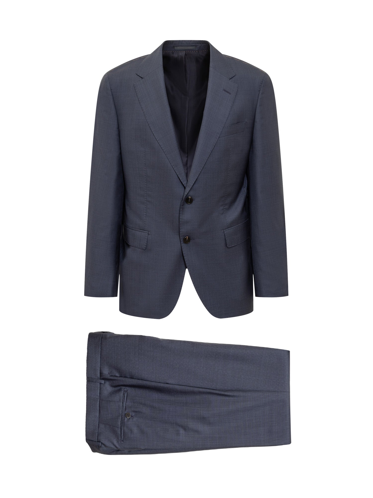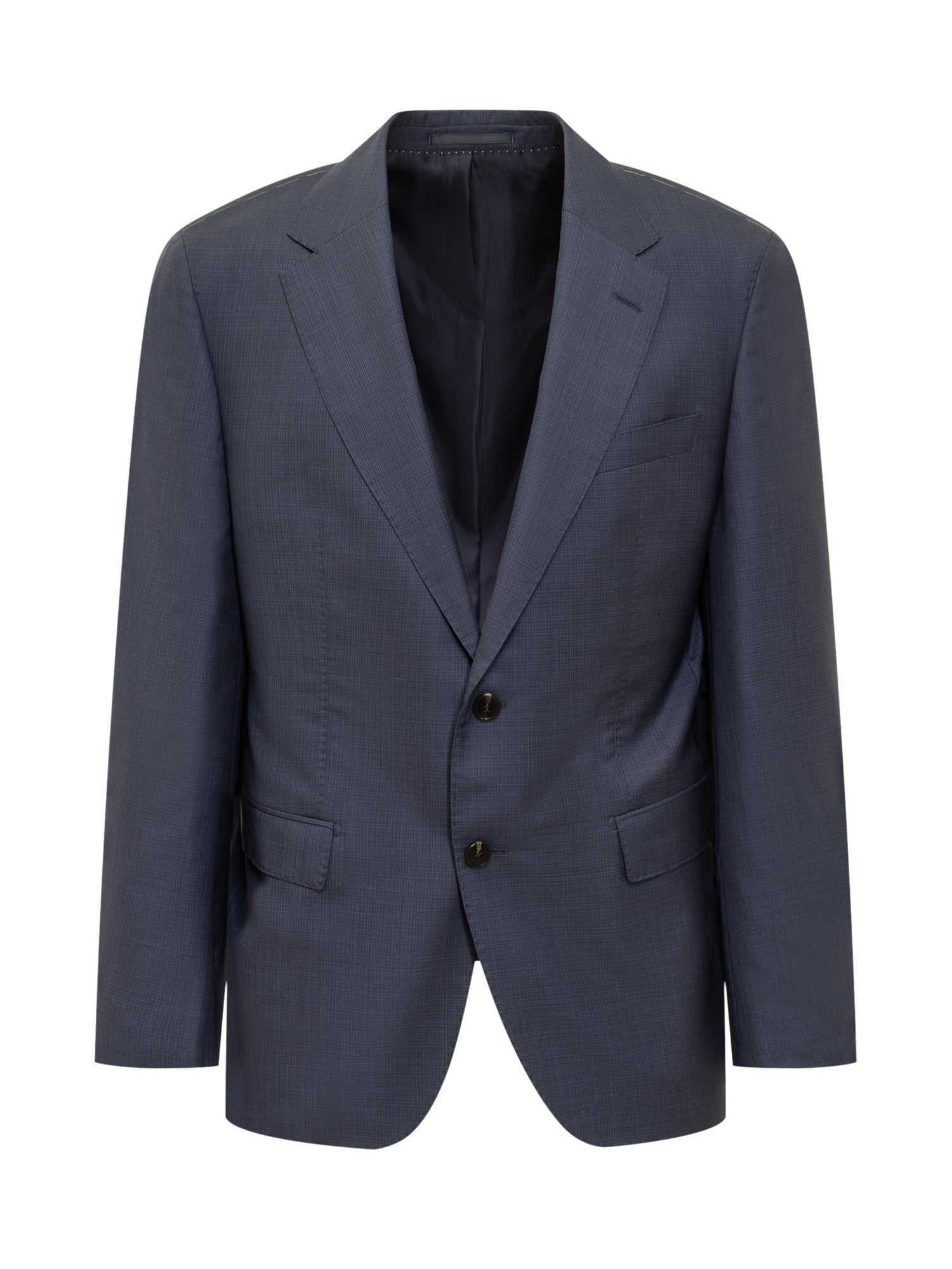 Long-sleeved jacket in wool and silk blend. Lapel collar. Single-breasted button closure. Button cuffs. Two flap pockets and breast pocket on front. Slim-fit pants. Belt loops. Two welt pockets with button on back.