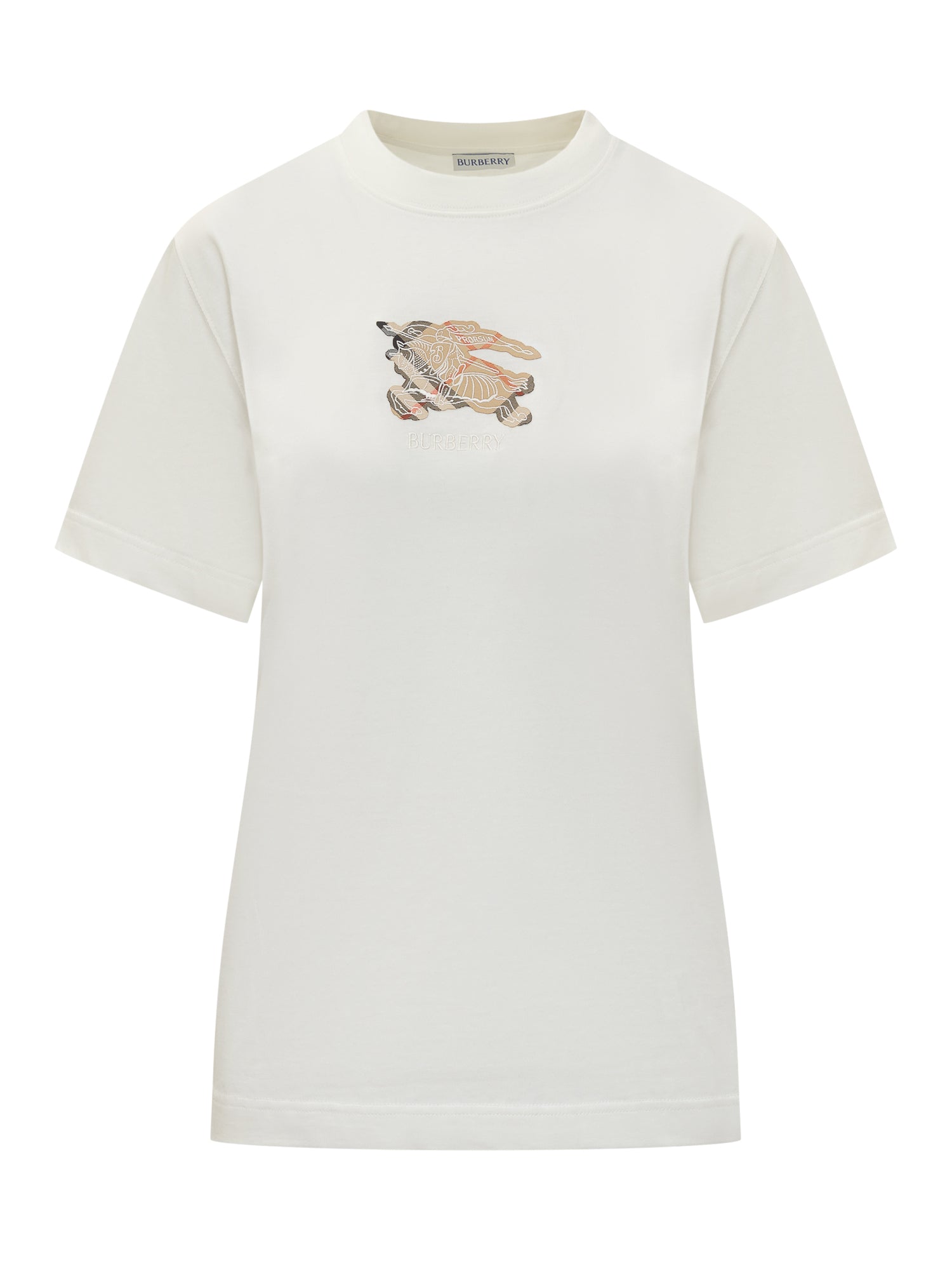 Burberry white cotton T-shirt featuring the iconic multicolor embroidered knight logo on the chest.