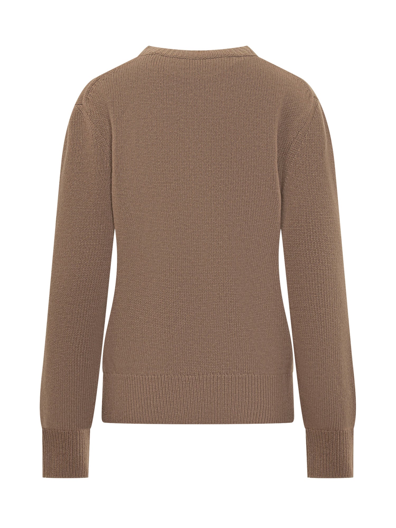 Burberry wool sweater in brown with contrasting knight logo. Soft and warm, this timeless piece embodies classic British elegance.