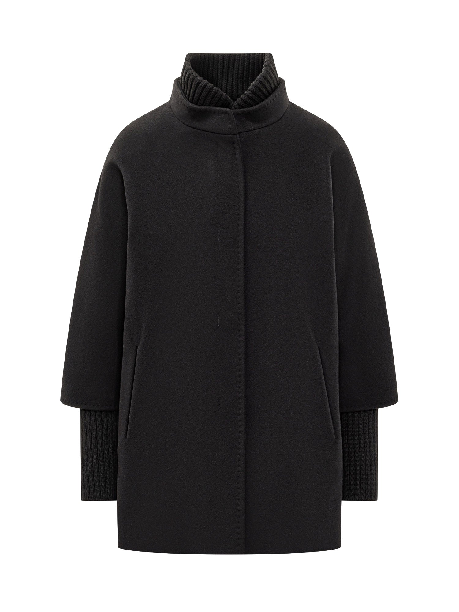 Short Cinzia Rocca coat with a clean design, featuring ribbed knit collar and cuffs.