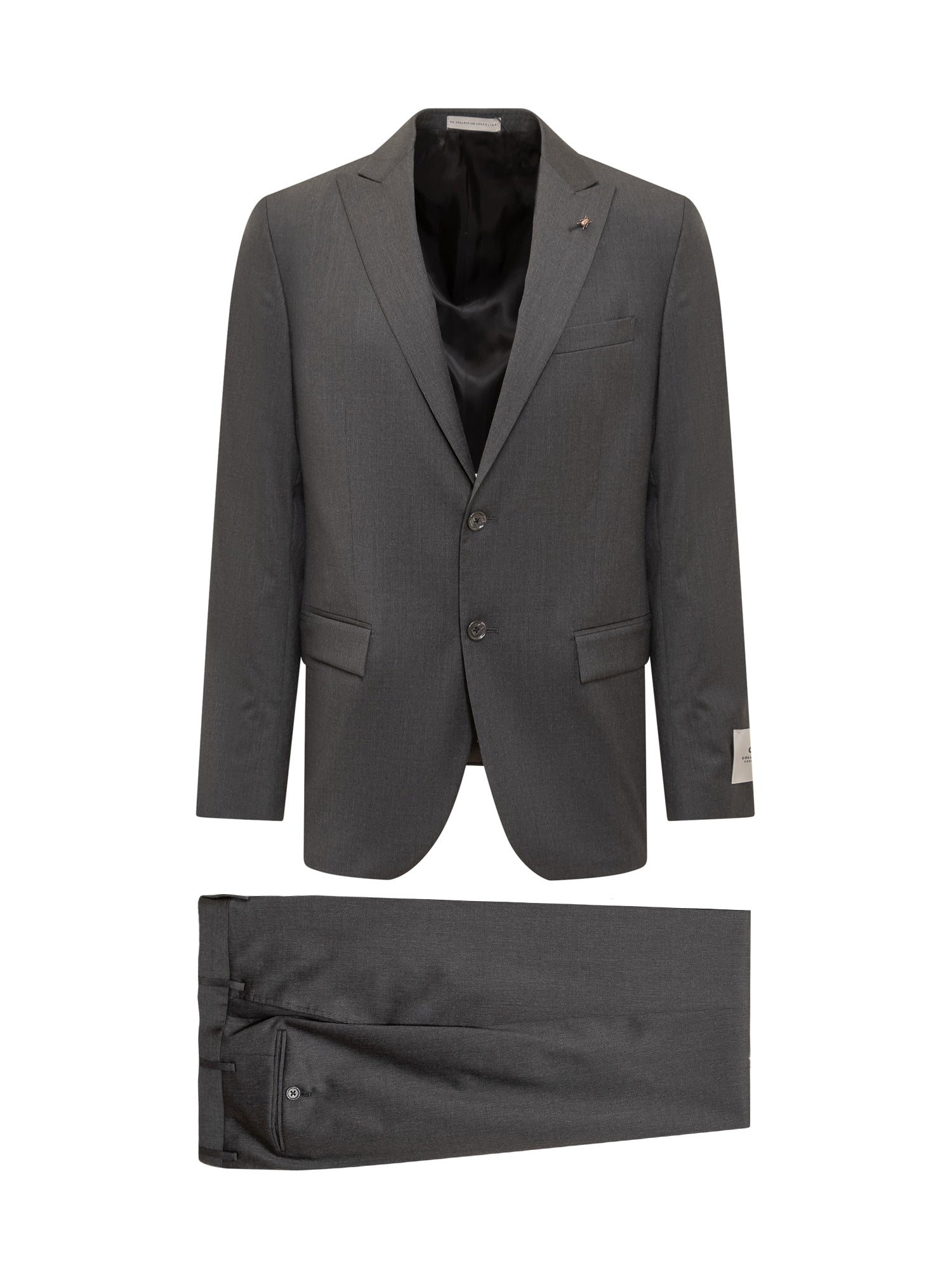 Suit with single-breasted jacket. Closure with buttons. Two side pockets and one on the chest. Inside pocket. Buttons on the cuffs. Trousers with four pockets. Belt loops. Closure with hooks and zip.