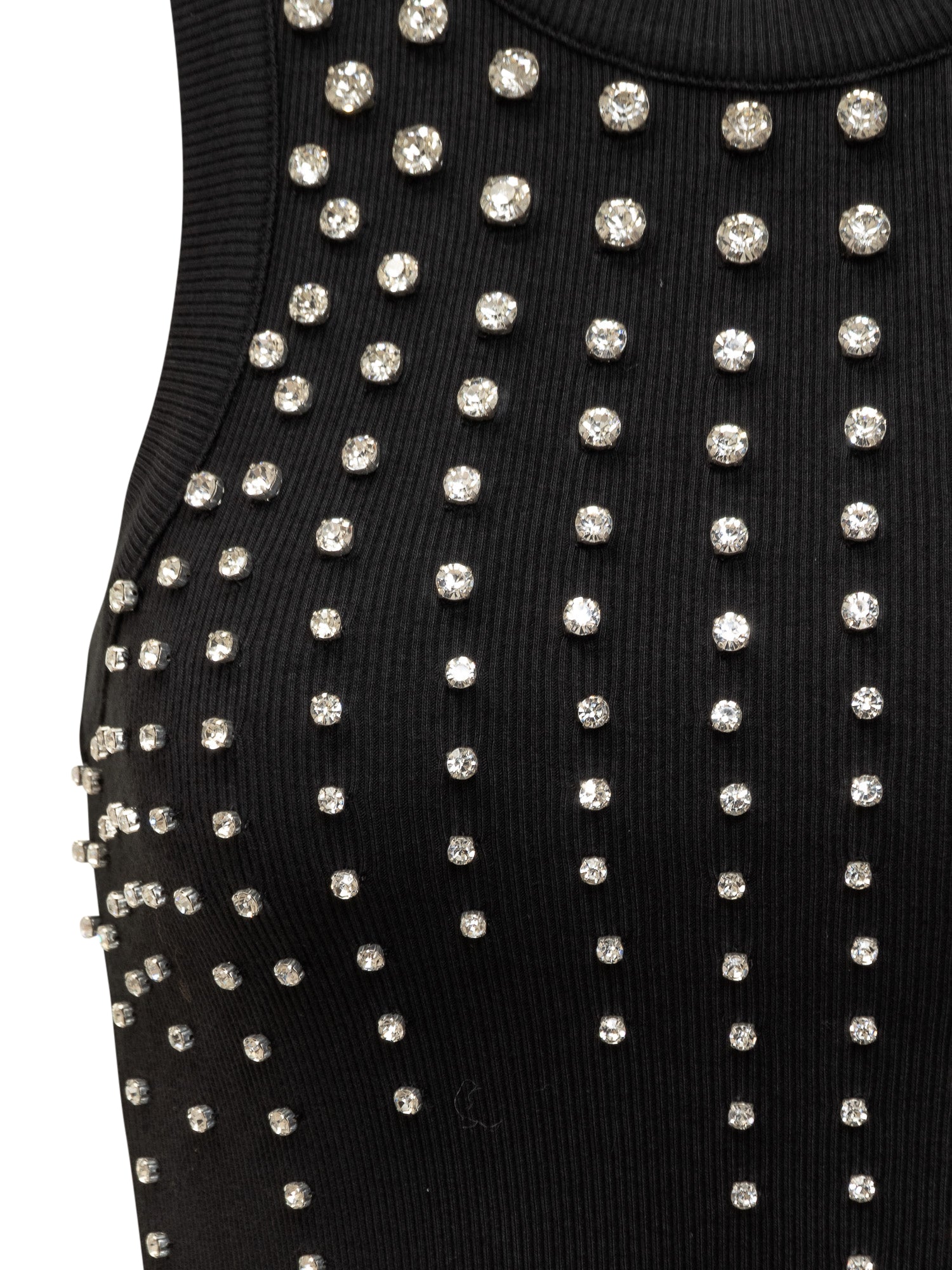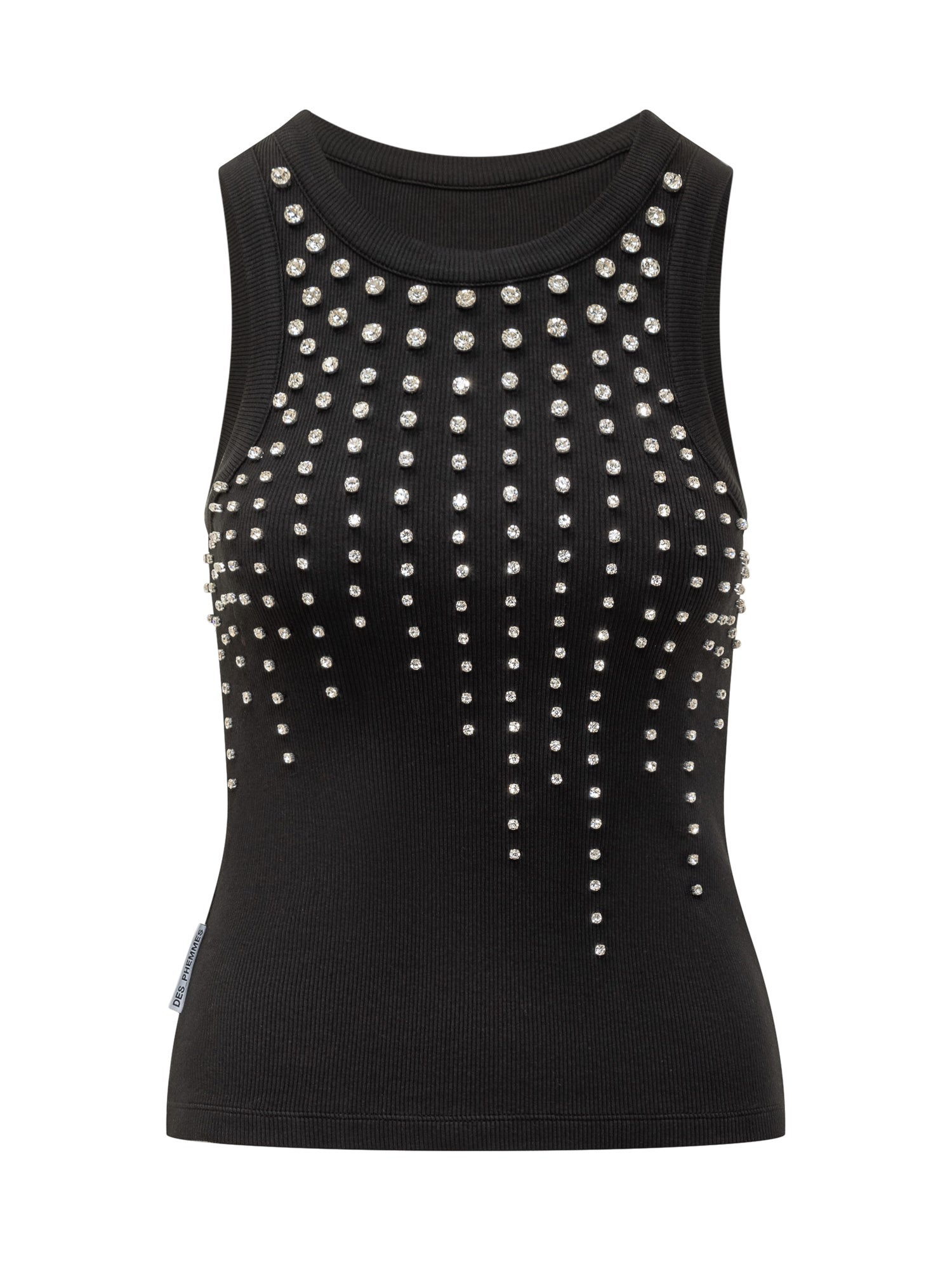 Cotton tank top. U-neck. Ribbed hem. Rhinestones on the front. Logo label on the side.