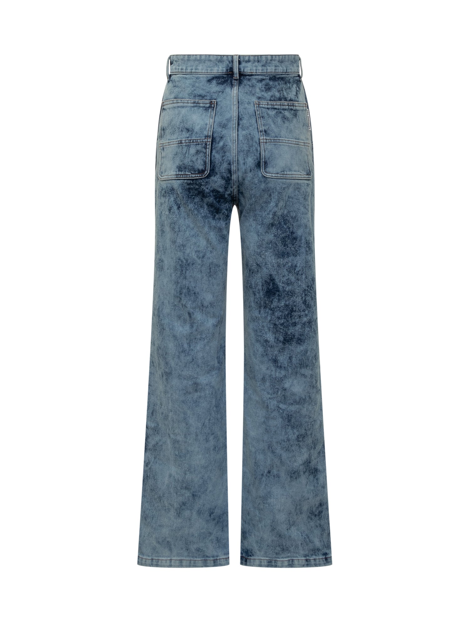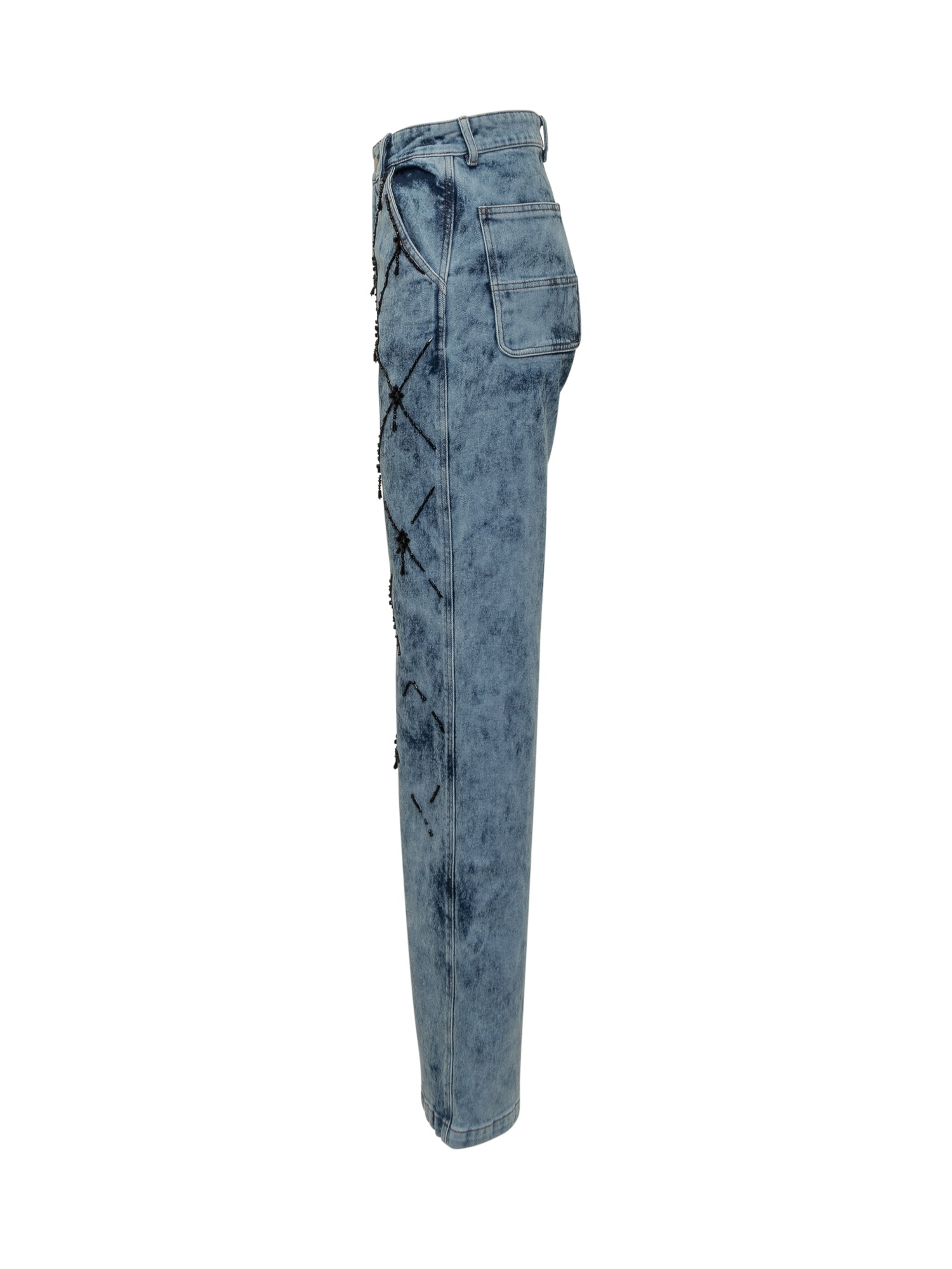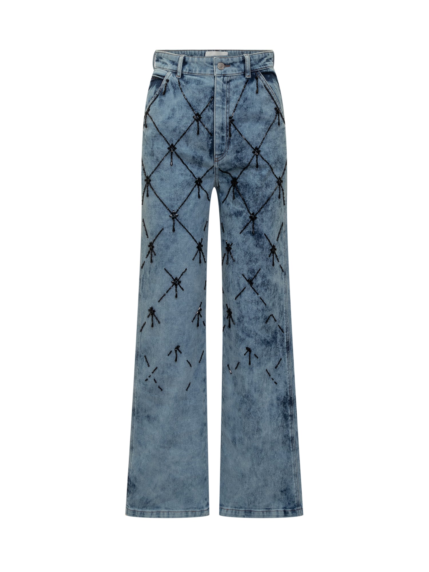 Des Phemmes wide-leg jeans in washed denim with black net embroidery.