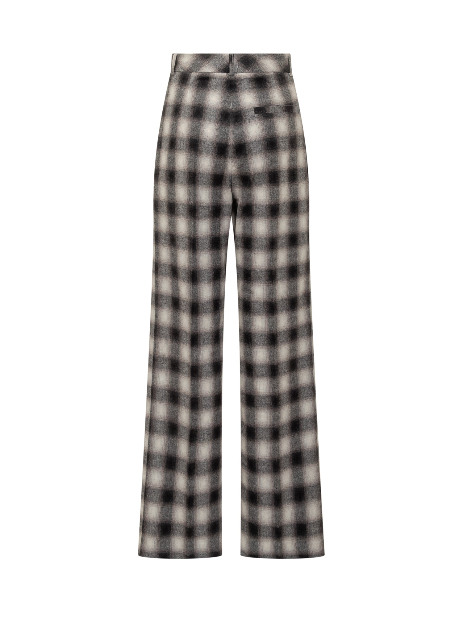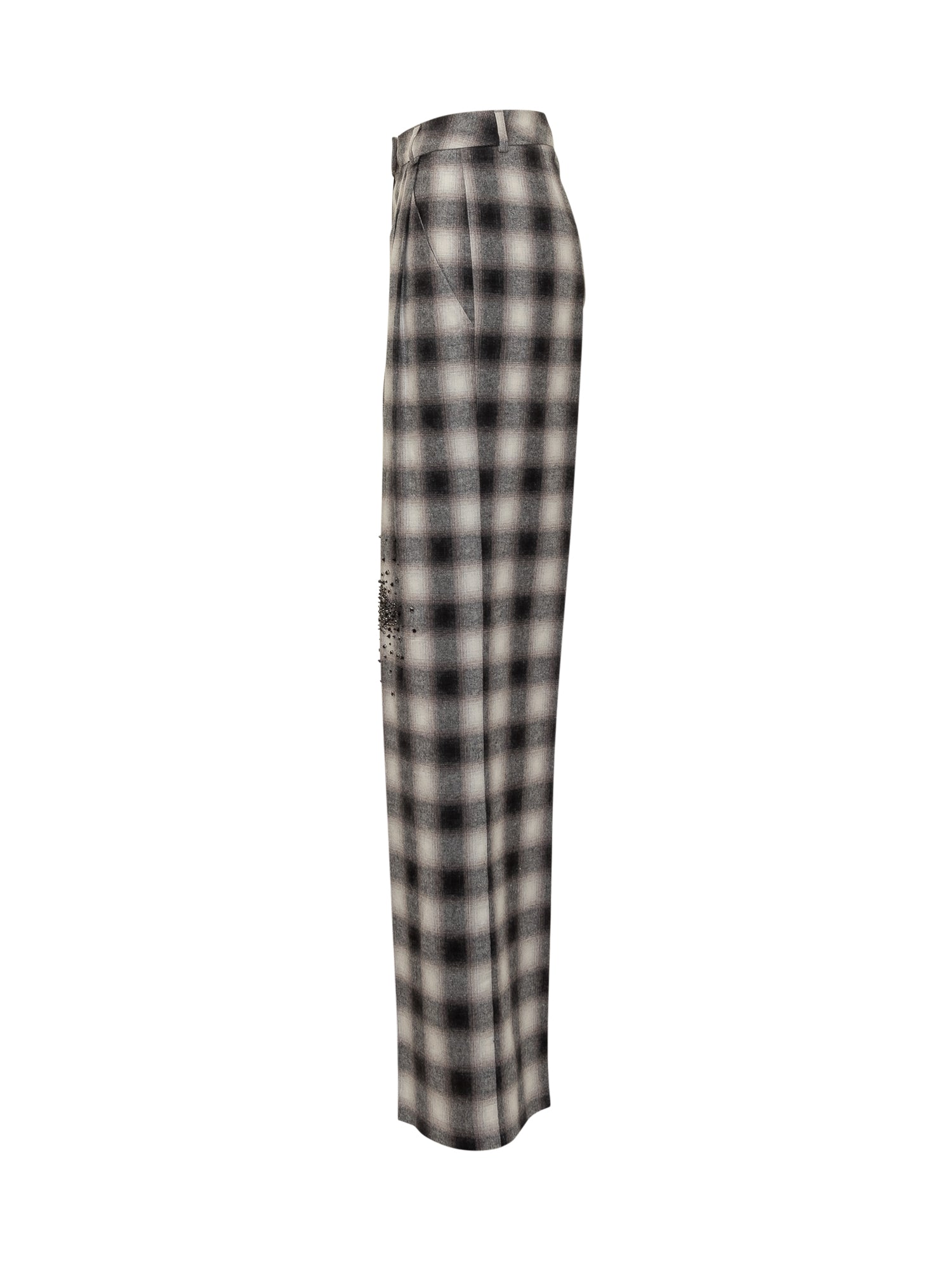 Wide-leg Des Phemmes pants in black and white check fabric with crystal embellishments.