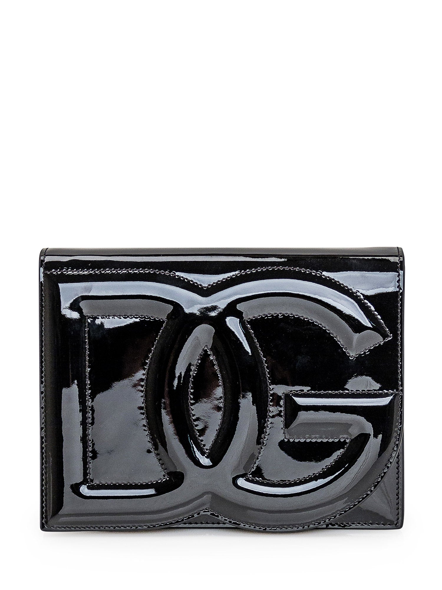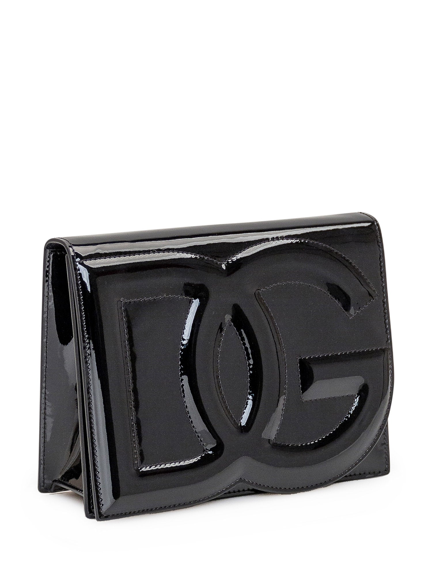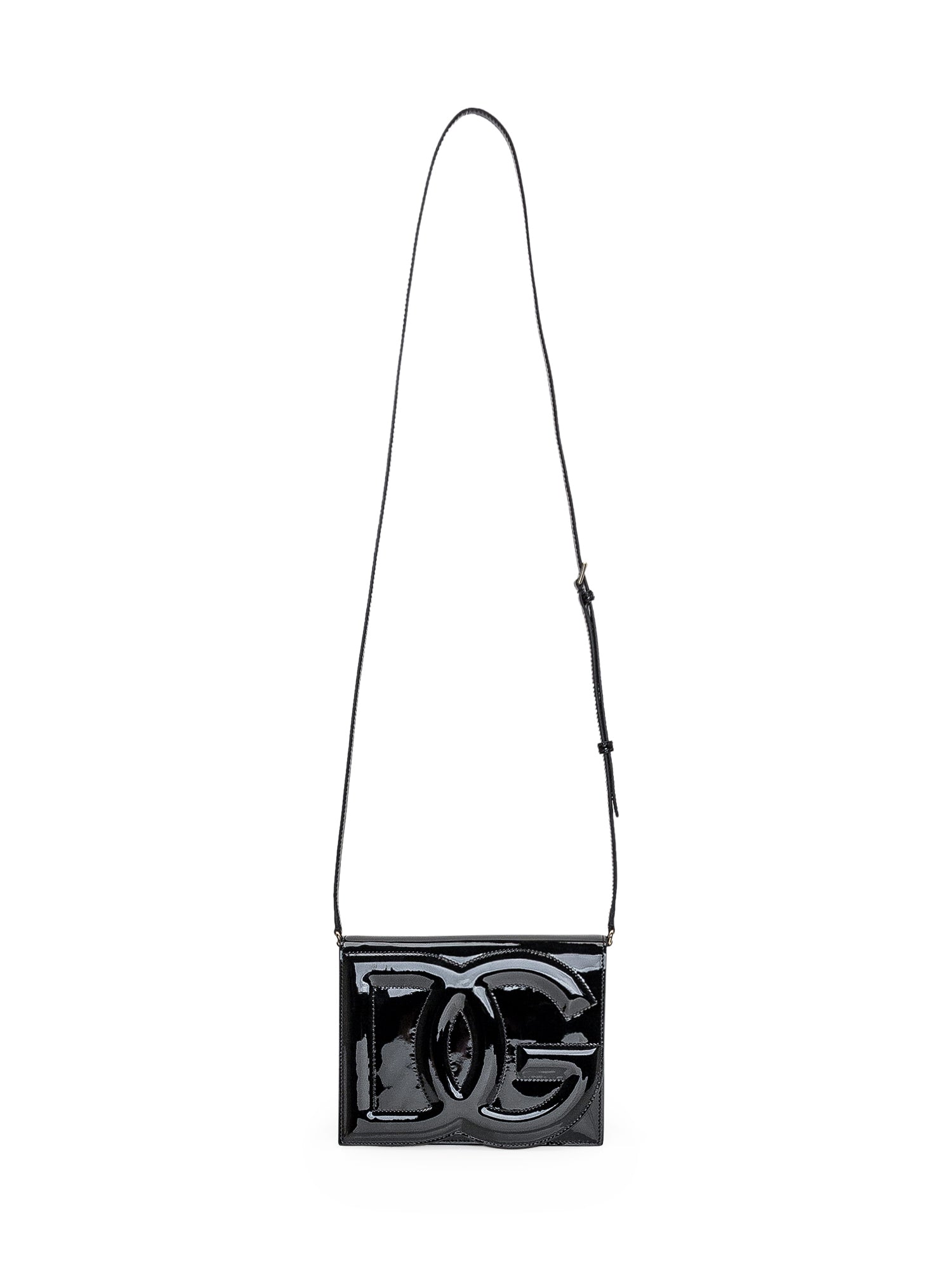 Black shoulder bag in calfskin. Removable leather shoulder strap with adjustable holes. Inside pocket with zip and compartment pocket with strap with snap button. Closure with magnetic buttons. DG logo patch on the front.