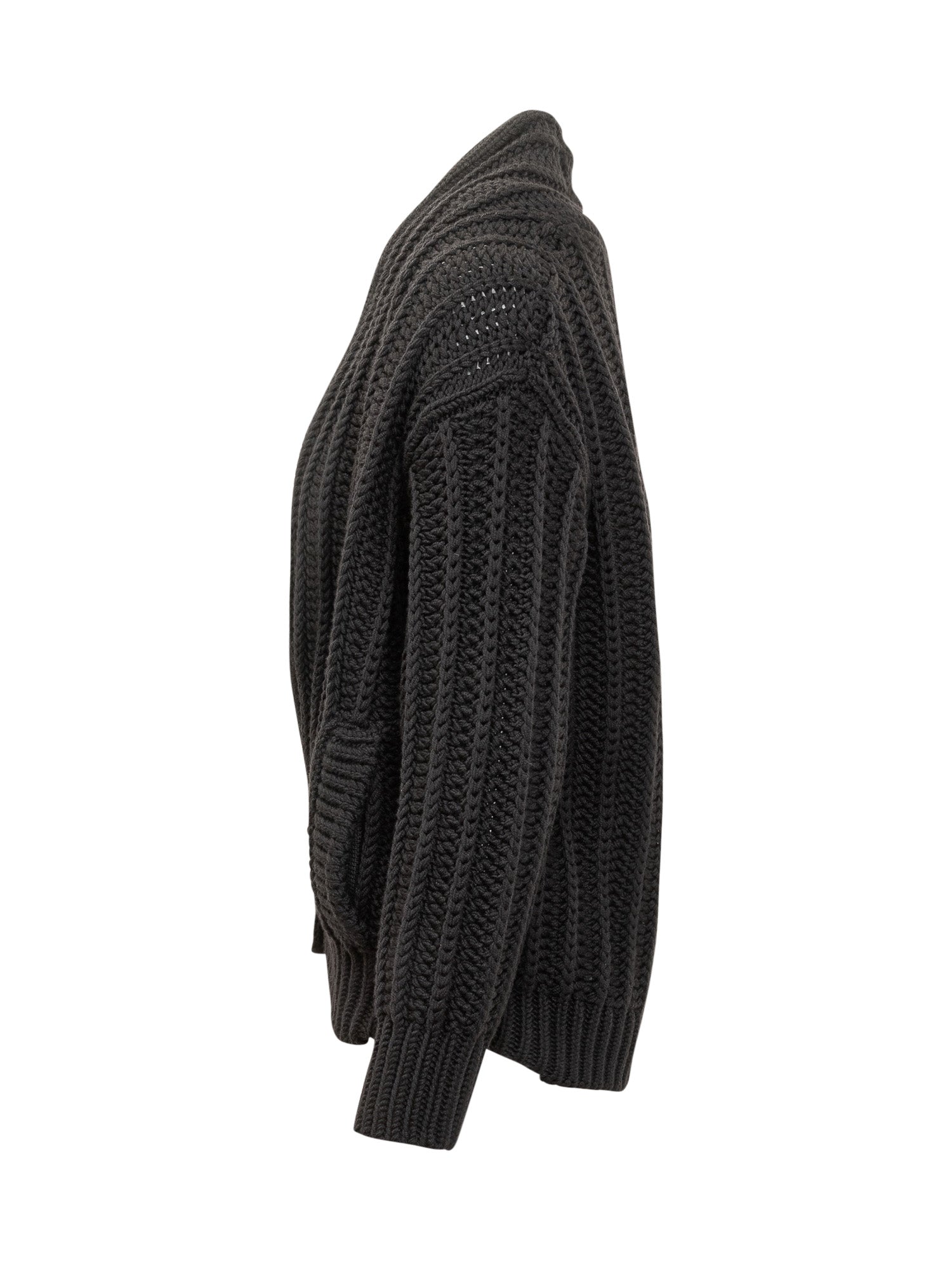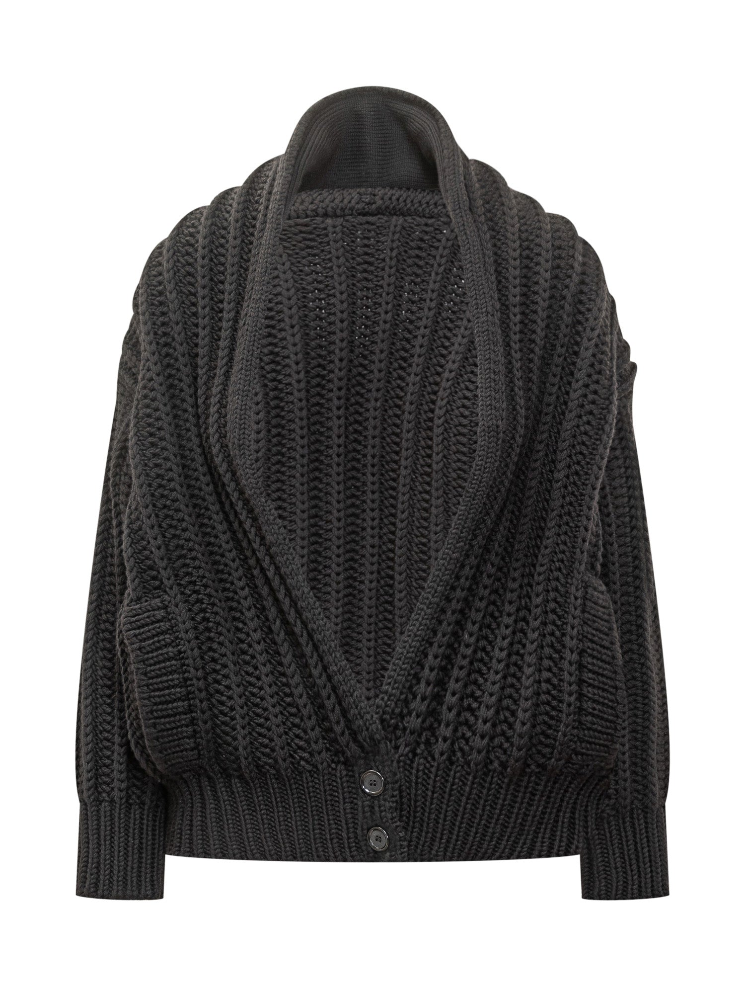 Dolce & Gabbana black oversize cardigan with cable knit and deep neckline.