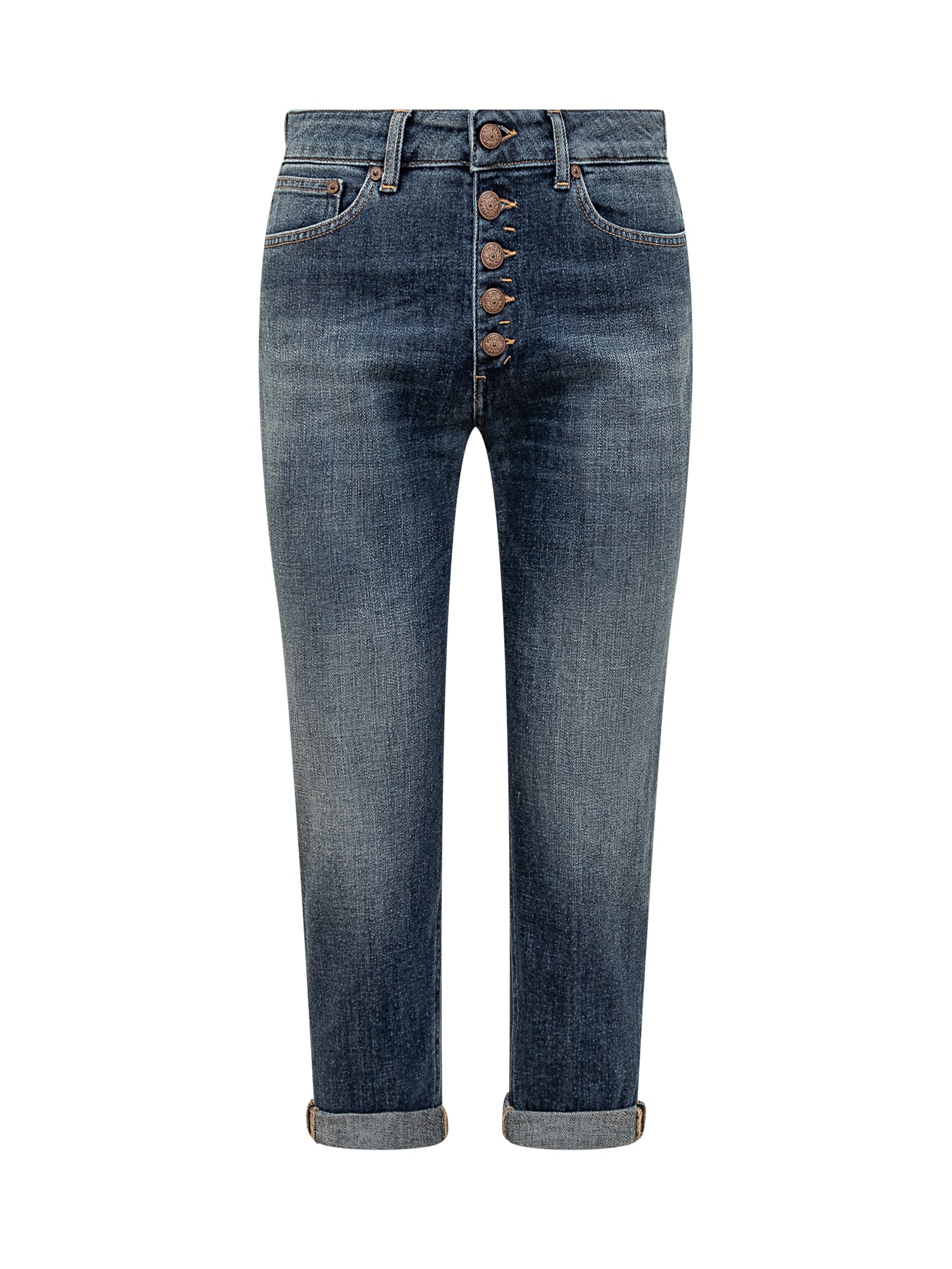 Dondup jeans in blue denim with a faded wash. Boyfriend fit featuring multiple button closure and rolled-up.