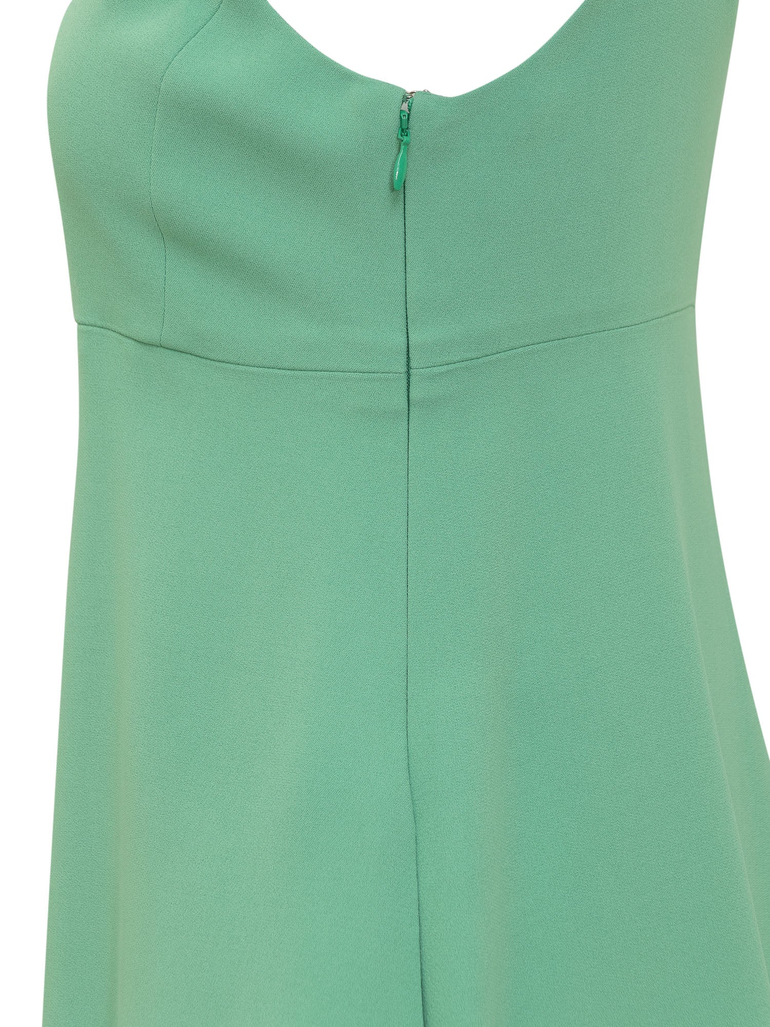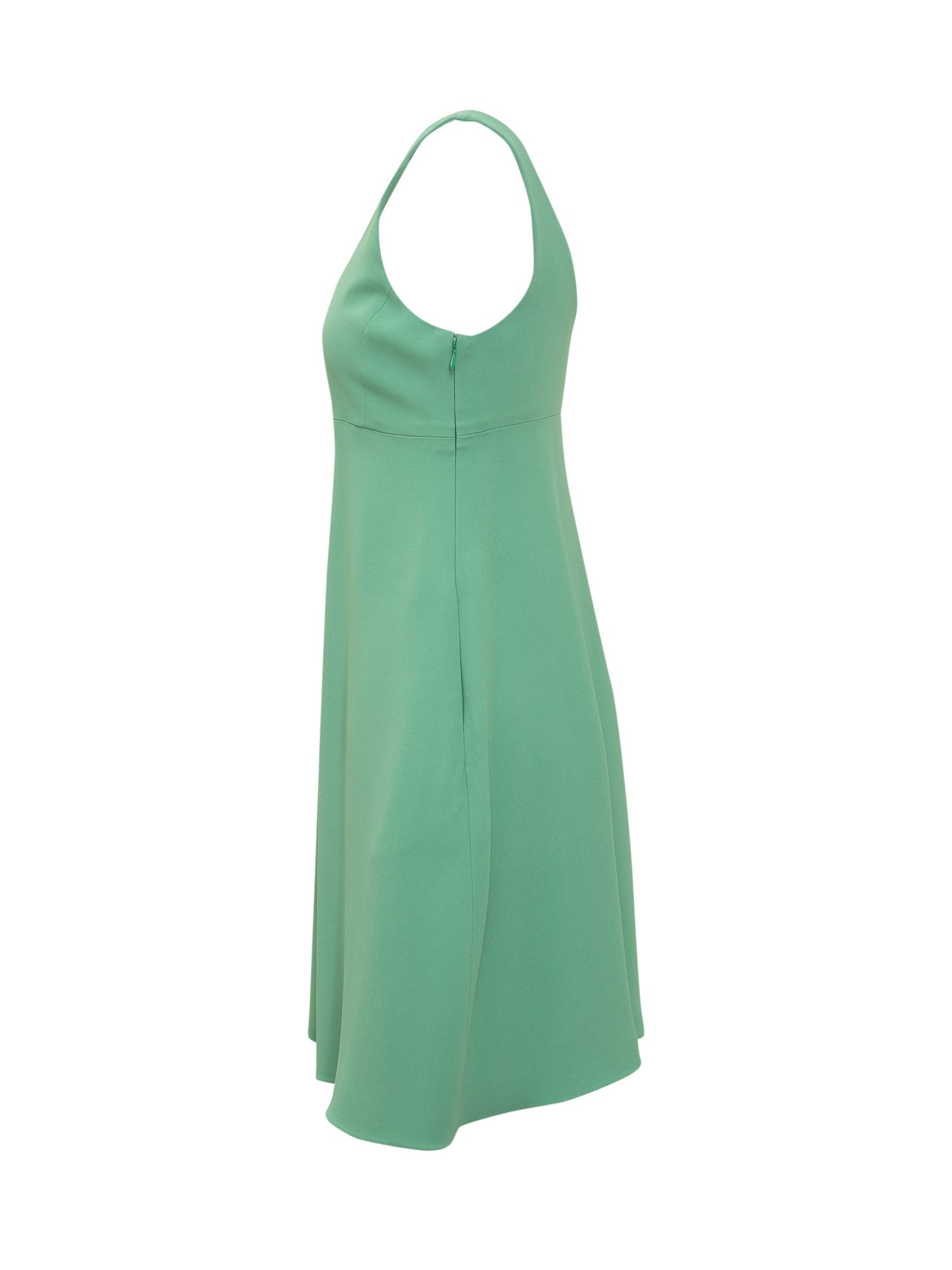 Midi sleeveless dress. U-neck on the front. Side zip closure. Side welt pockets.