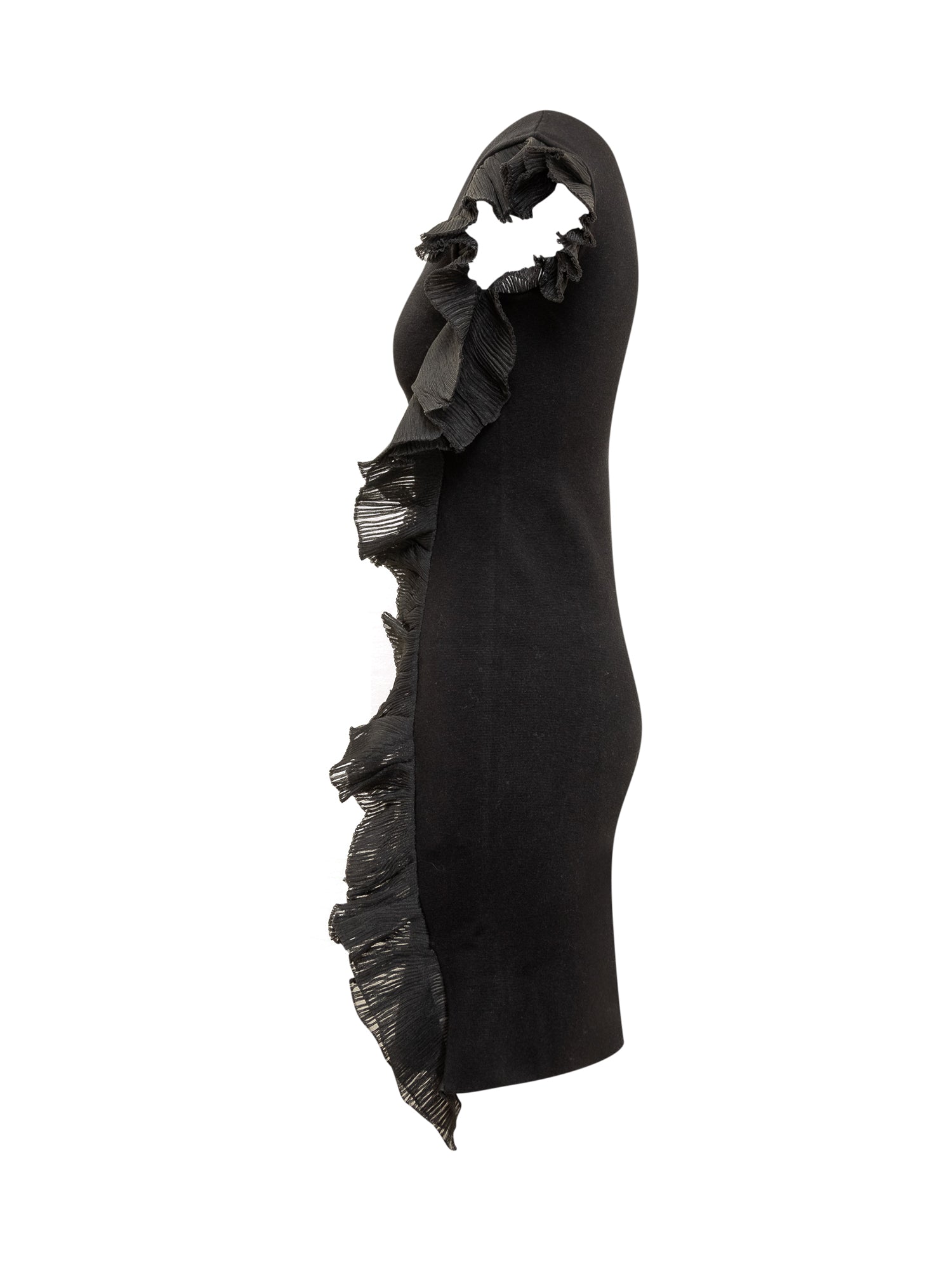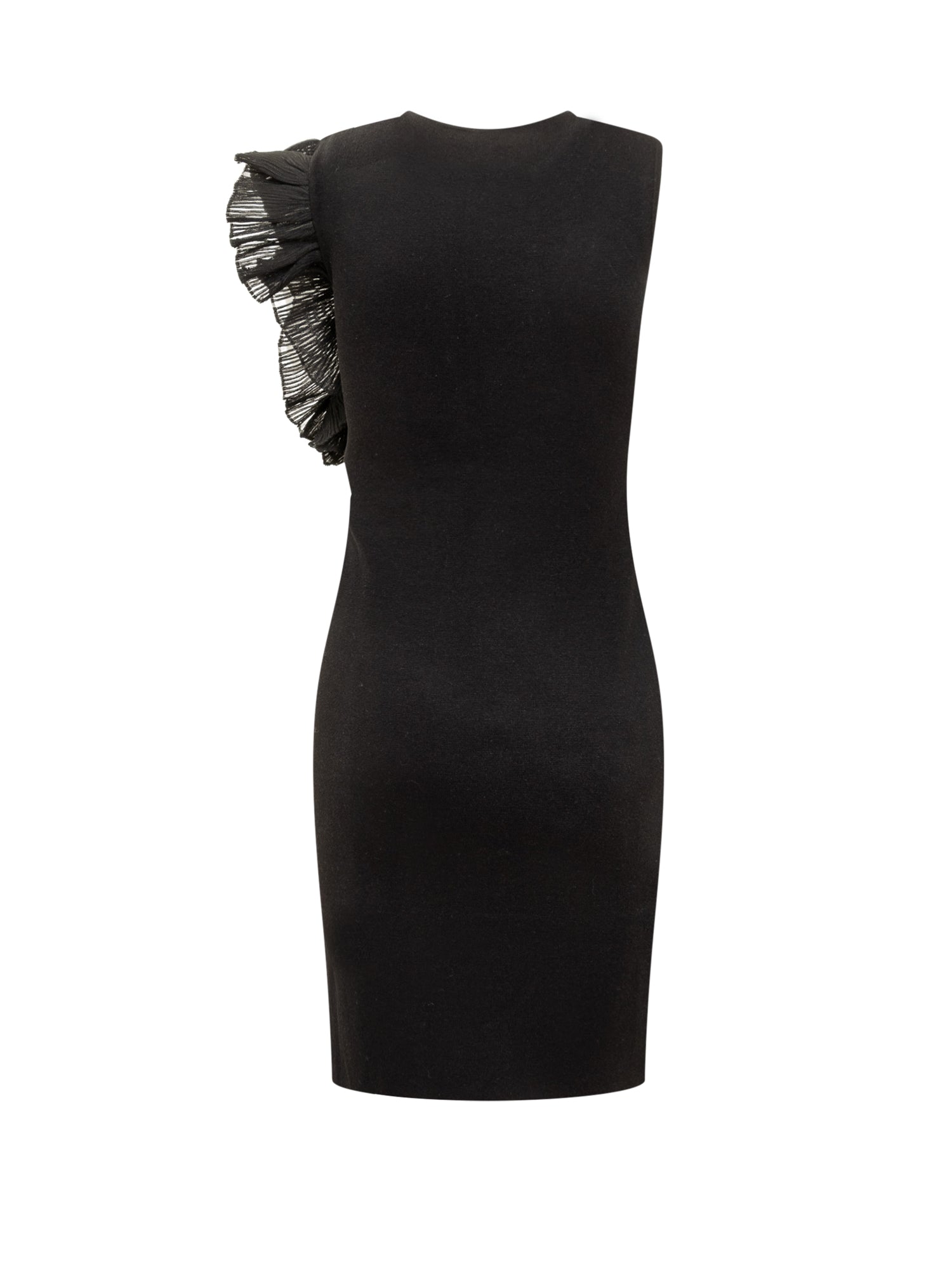 Sleeveless midi dress. Crew neck. Stretch fit. Draped detail with side-applied sheer.