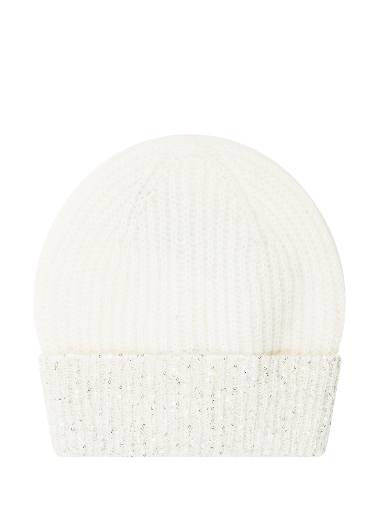 Exterior beanie in white wool featuring a cuff embellished with sparkling sequins.
