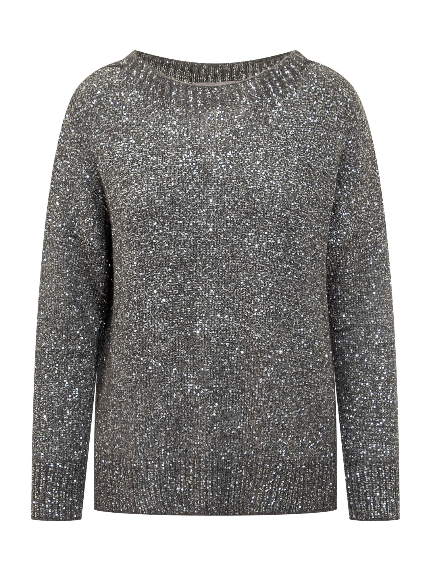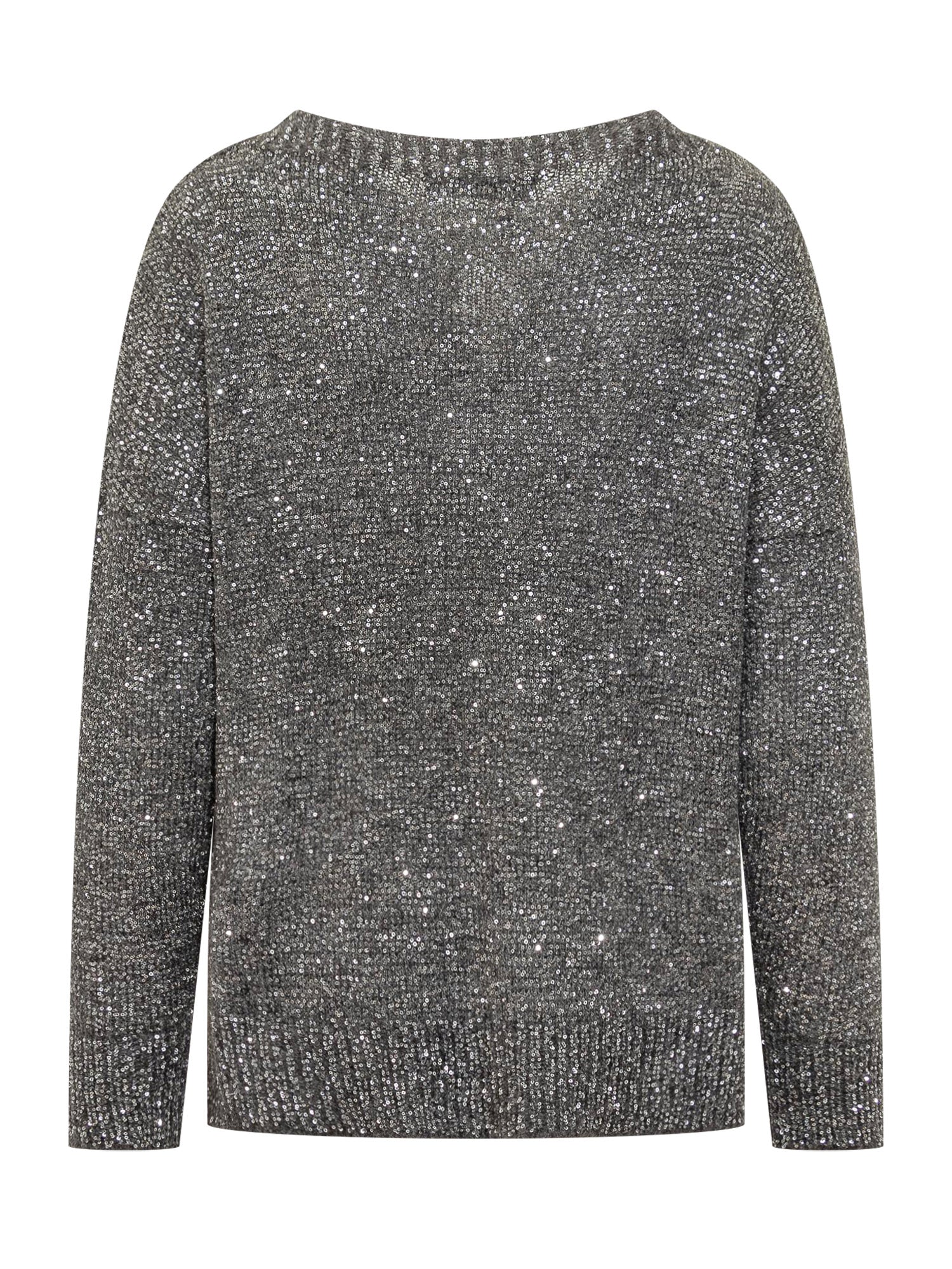 Exterior sweater made of sparkling lurex yarn with a classic cut and round neckline. Soft and bright.