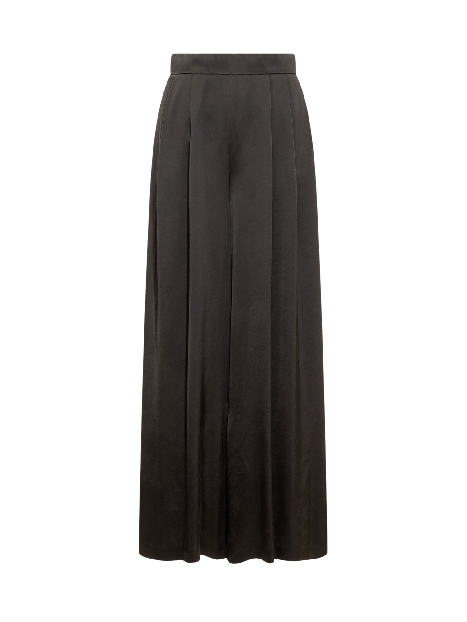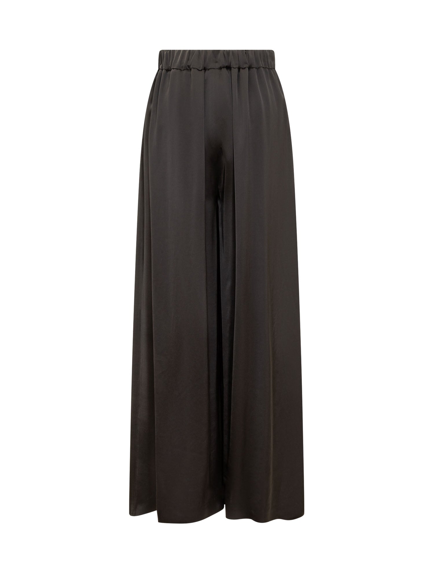 Long black trousers. Zip closure. Elastic back waist. Wide leg.