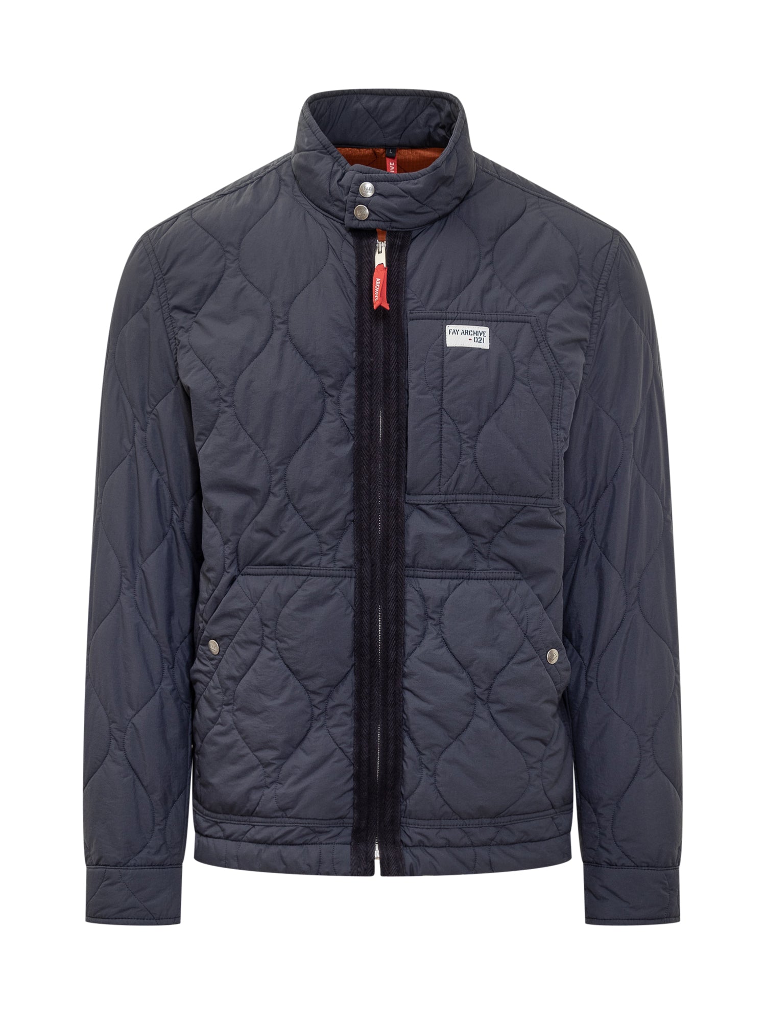 Fay quilted blue jacket with high collar, zip closure and front pockets.