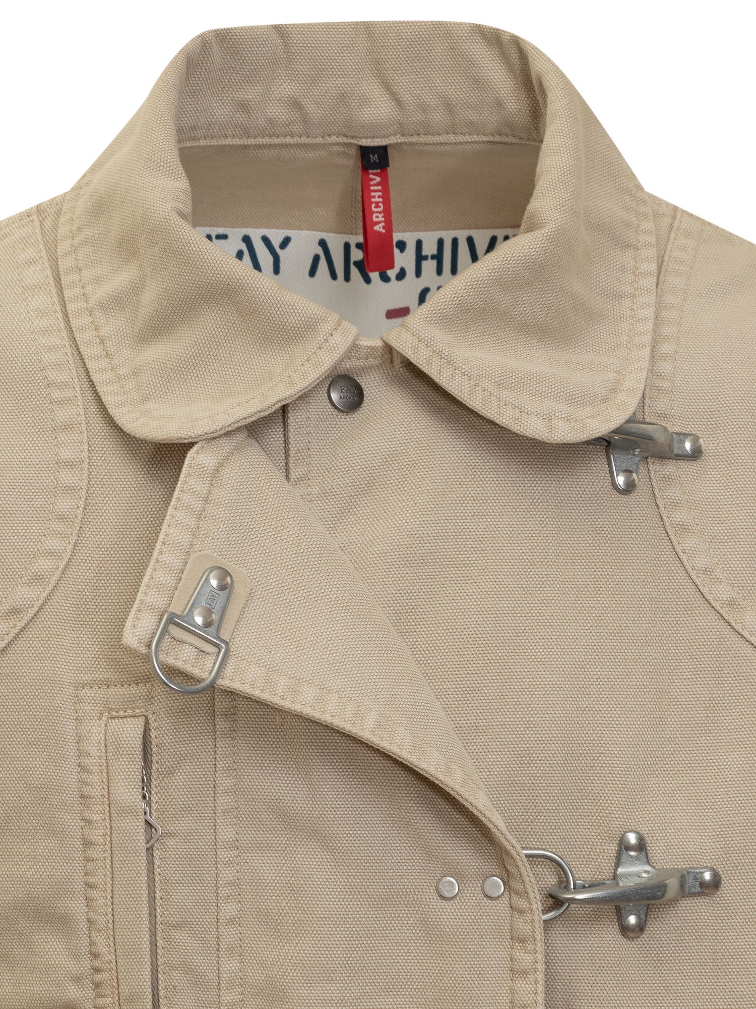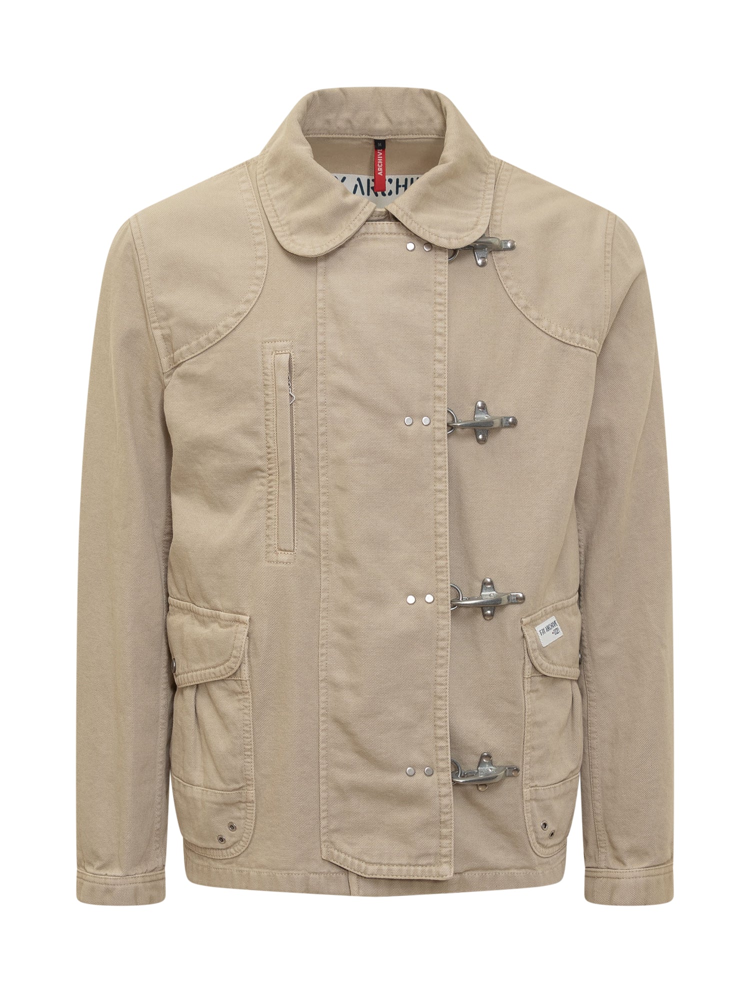 Jacket with long sleeves. Front closure with buttons and frogs. Shirt collar. Front and side pockets.