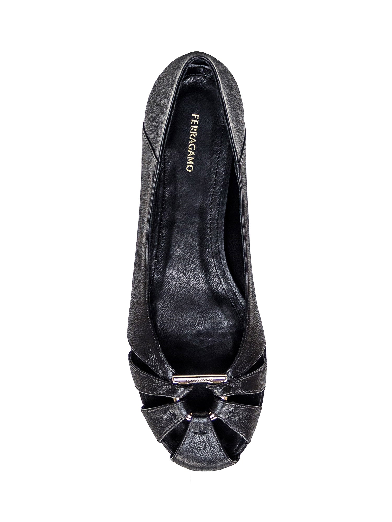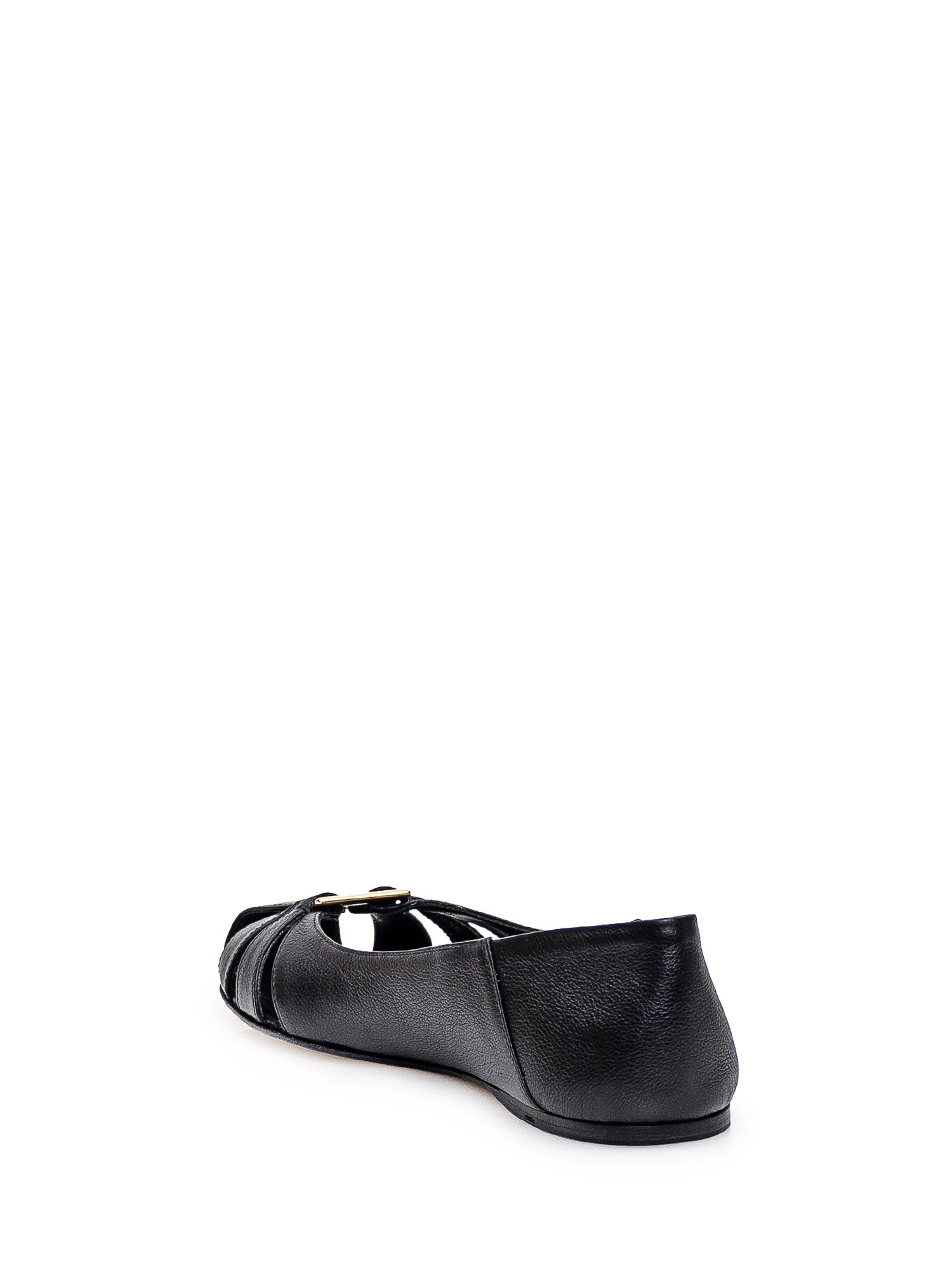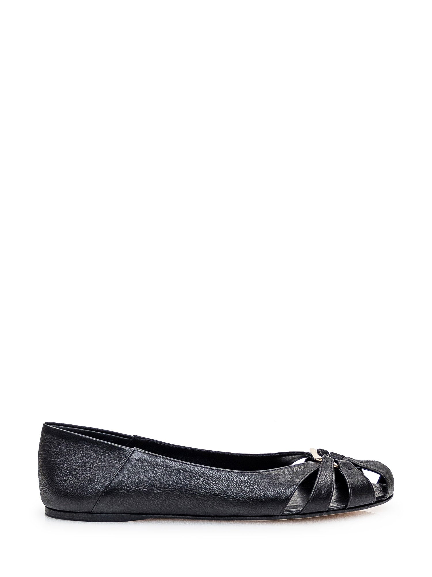 Black leather ballerinanera. Slip-on. Golden Cut Out logo on the front.