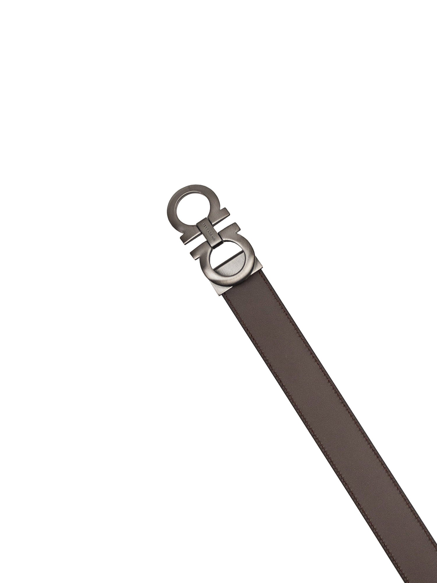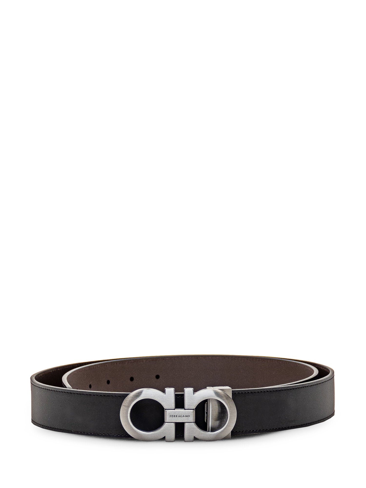 Black reversible leather belt. Gancini buckle on the front.