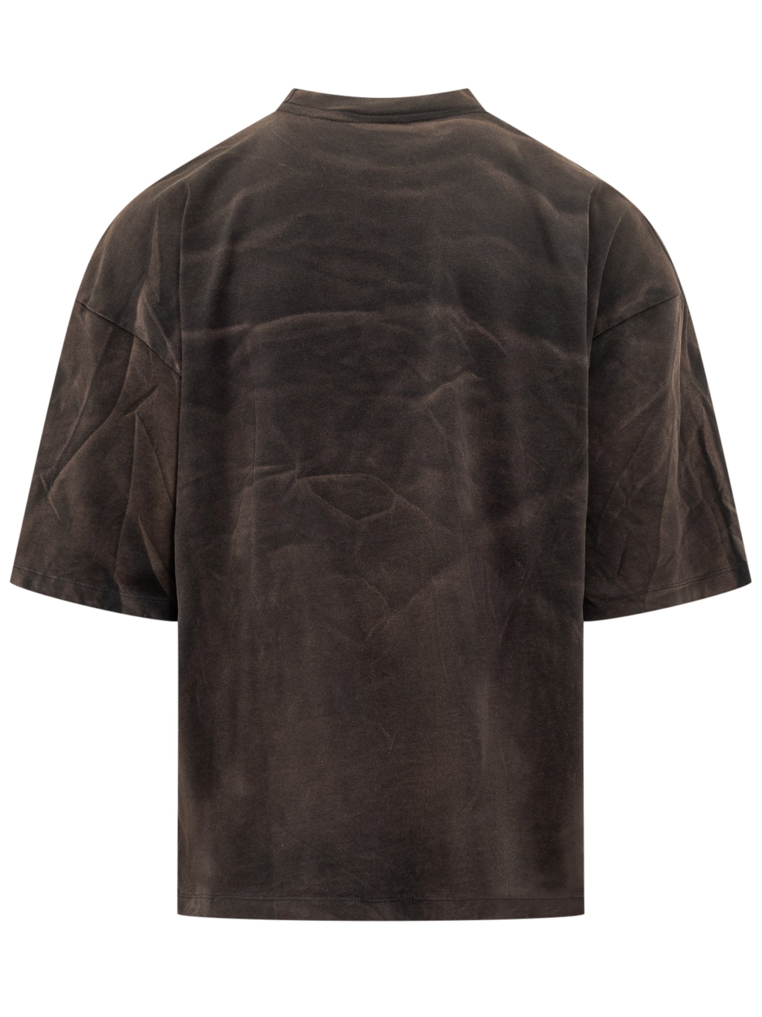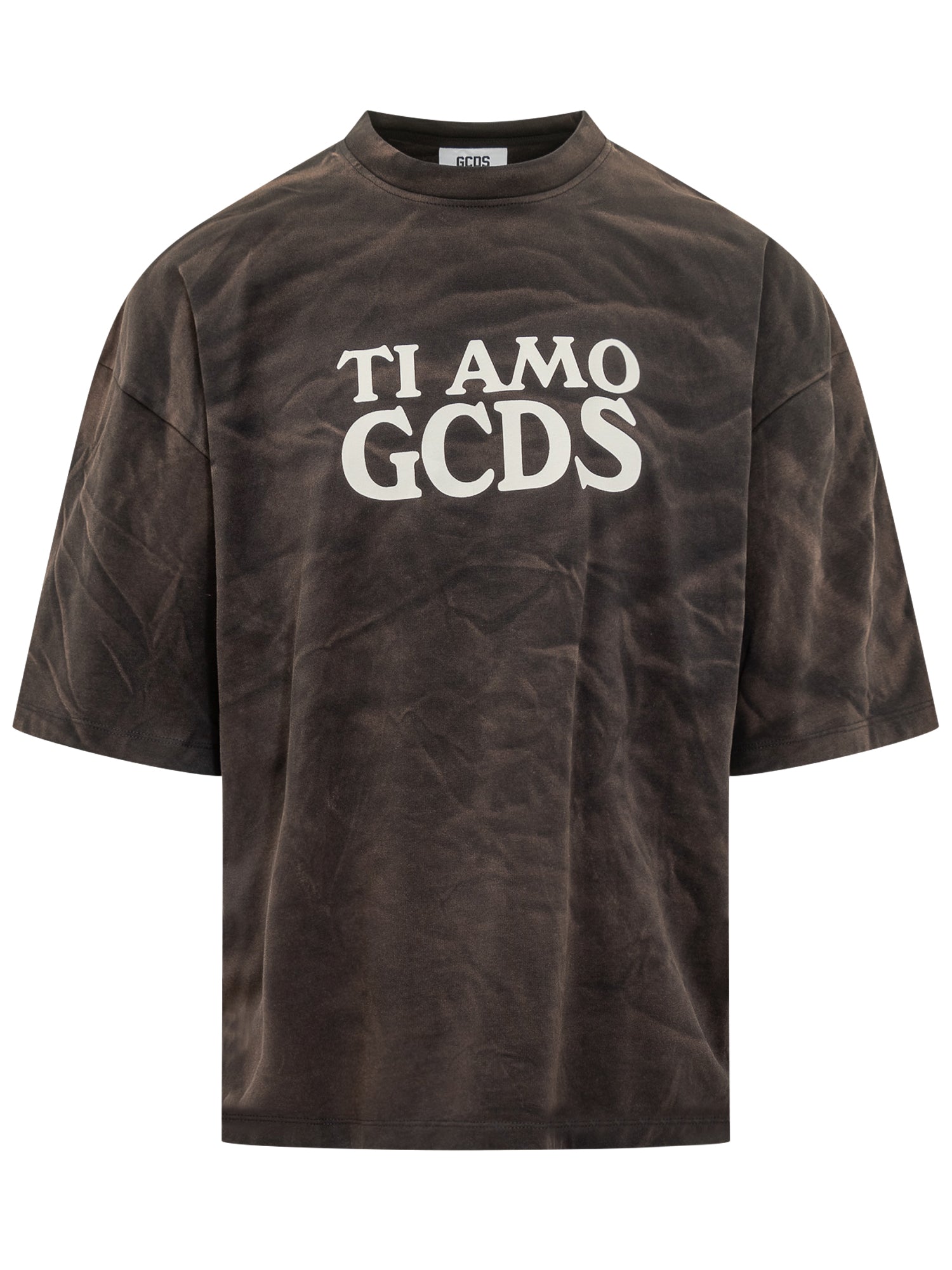 GCDS brown washed-effect cotton T-shirt with Ti Amo GCDS front print.
