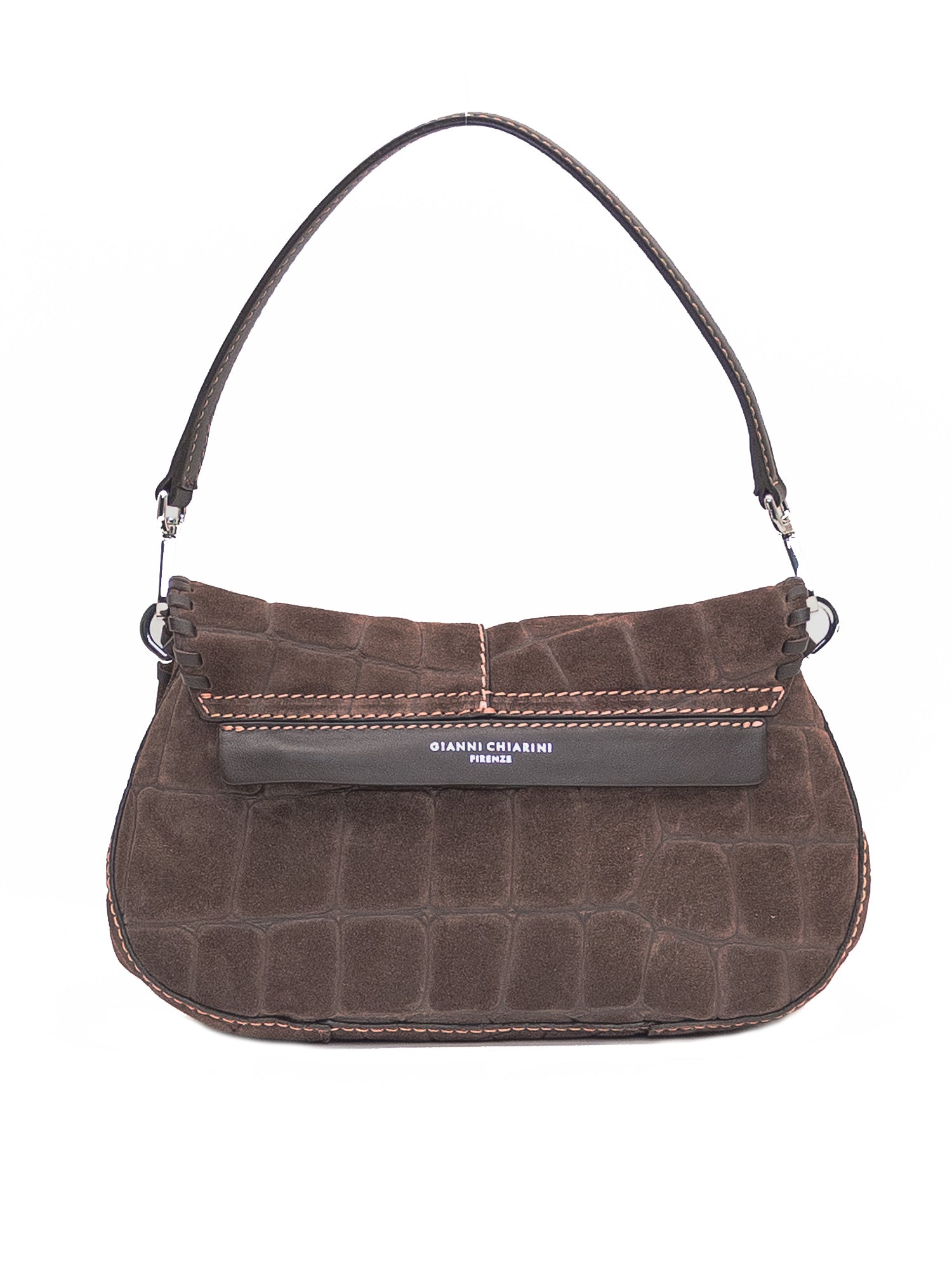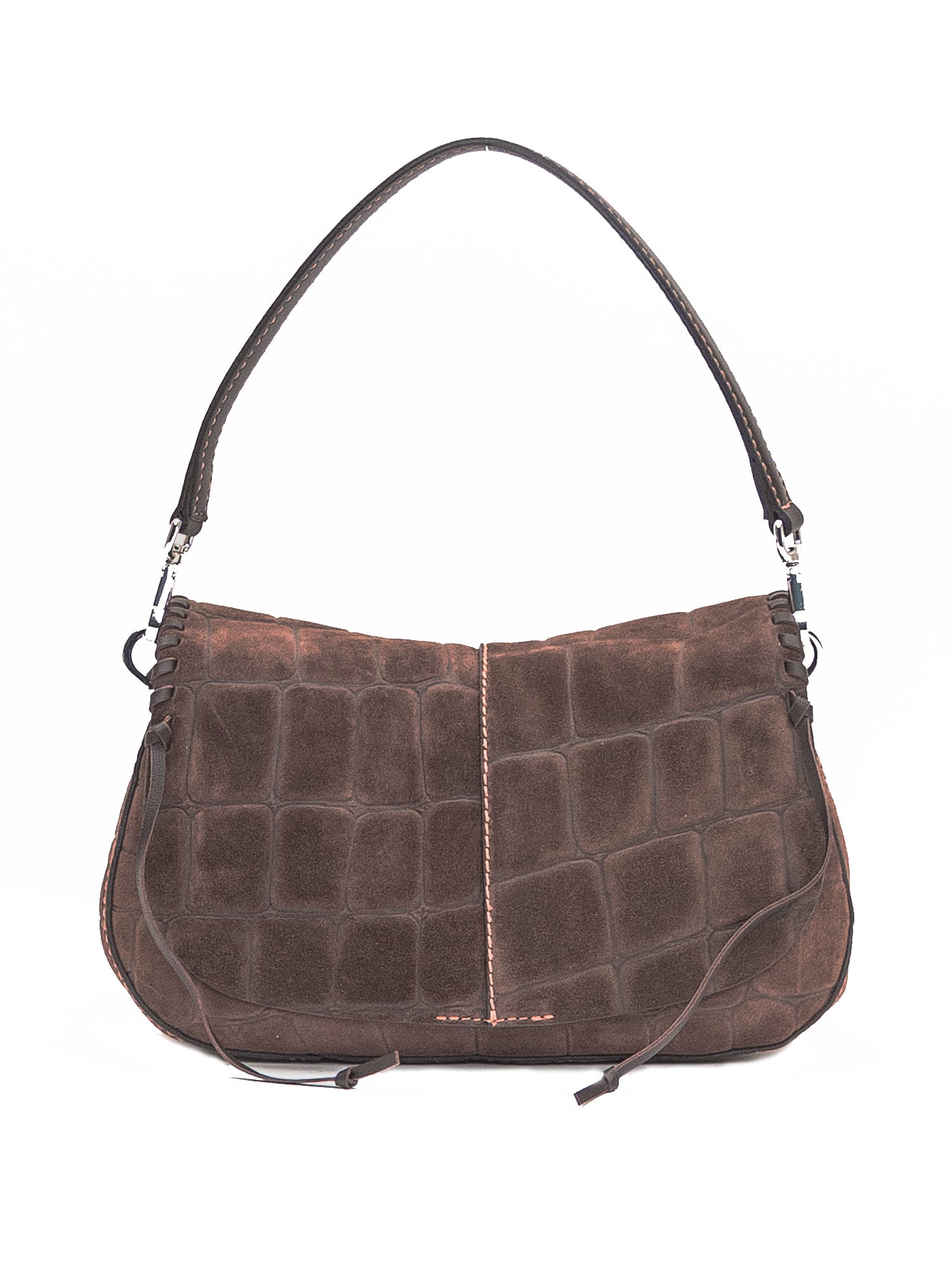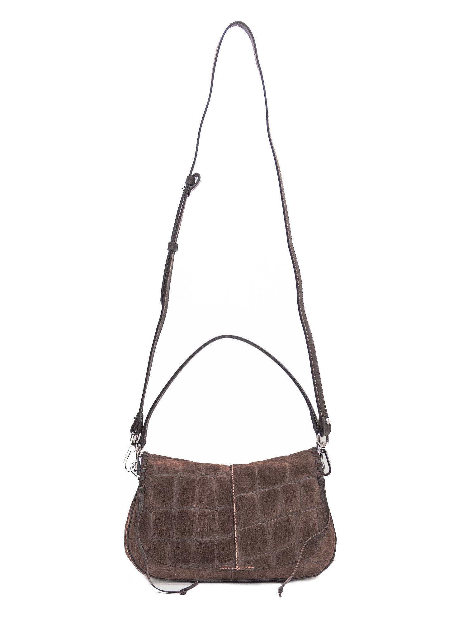 Gianni Chiarini shoulder bag in suede with crocodile embossing and braided side details.