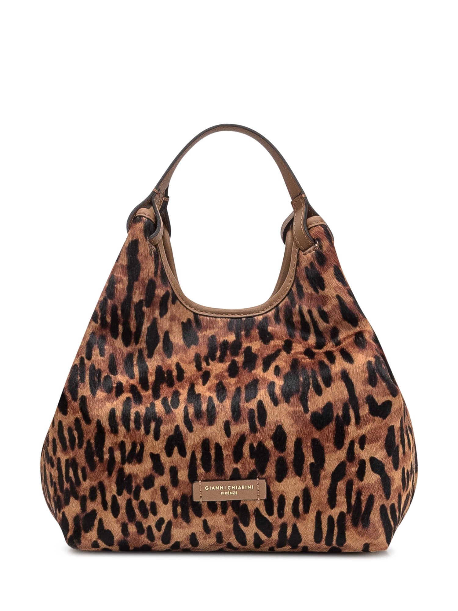Gianni Chiarini hobo bag in leopard-print pony hair with leather details.
